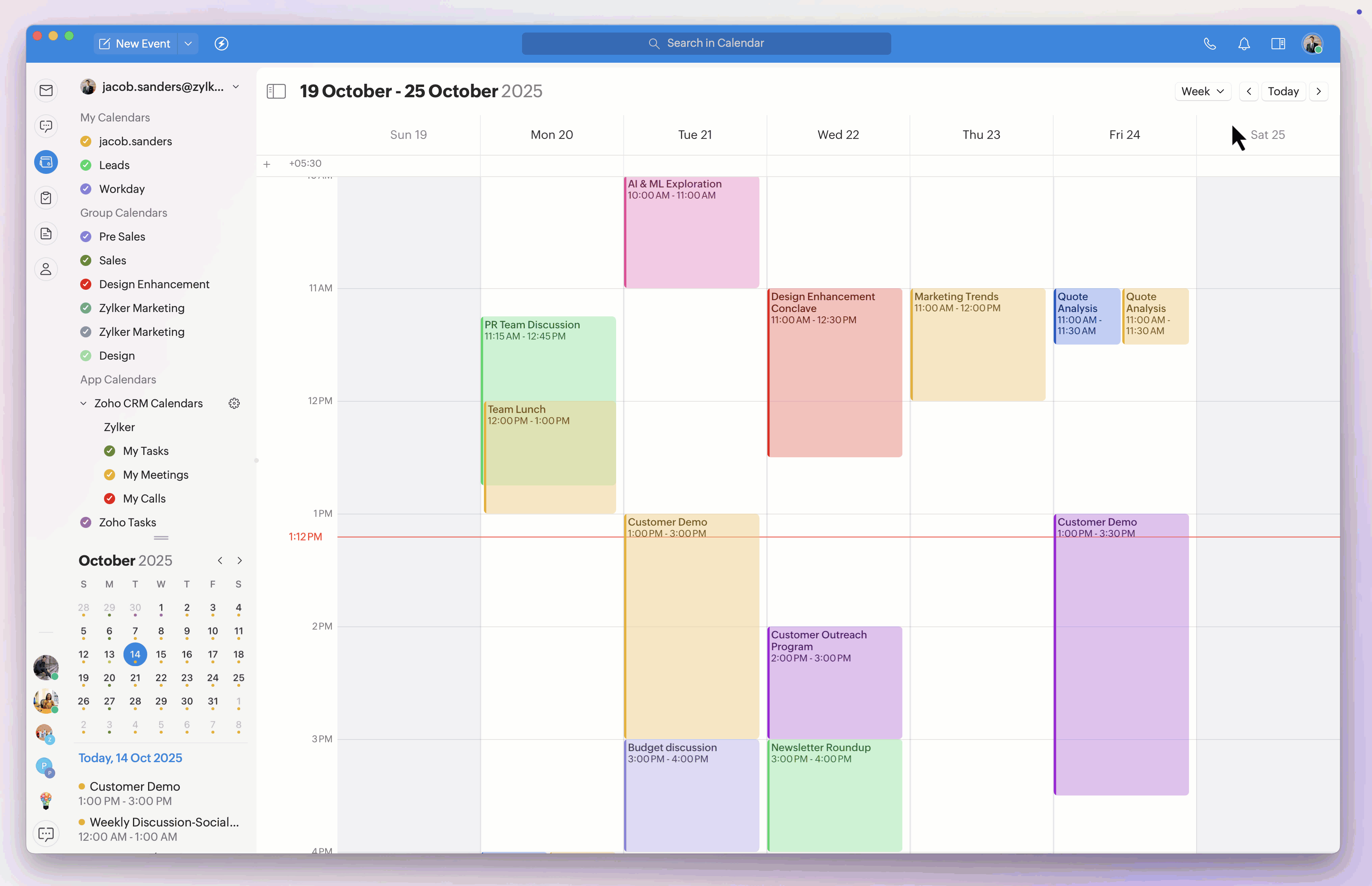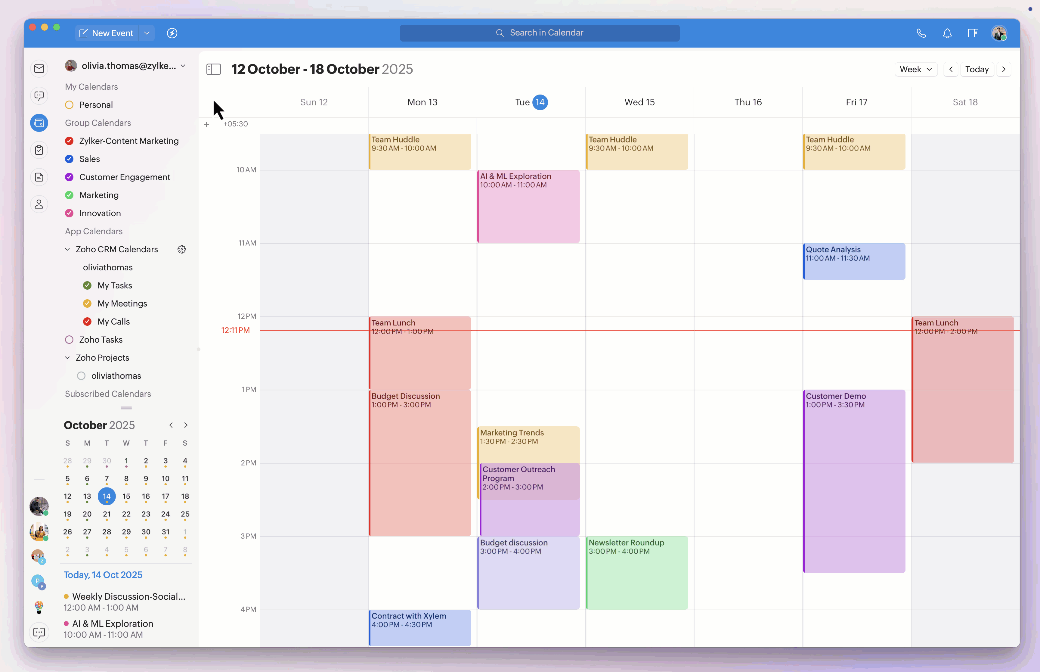 With Trident's unified Calendar module, you can view all of your events from the supported Zoho apps. To view all of your calls, meetings, and tasks from Zoho CRM in Trident's Calendar module: