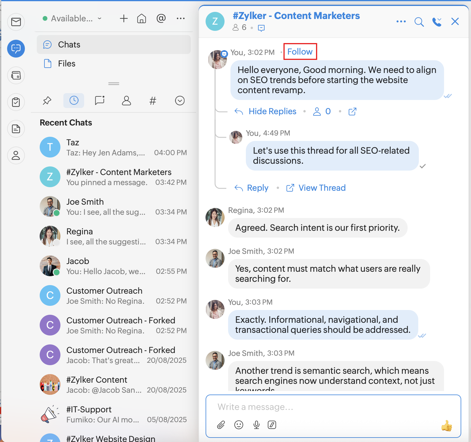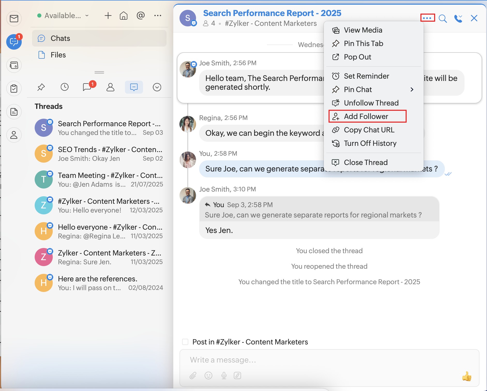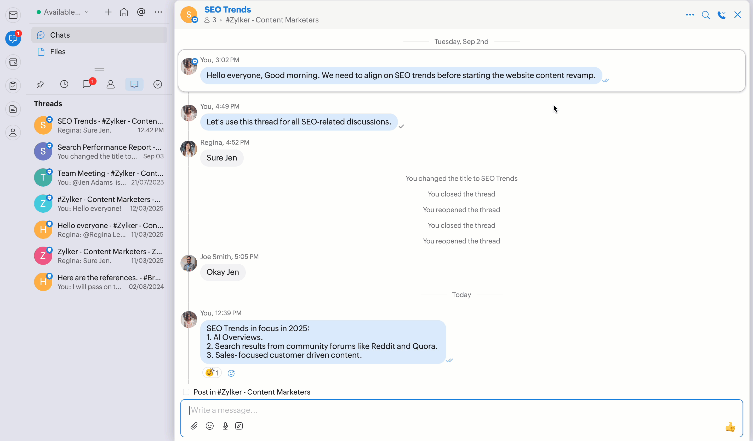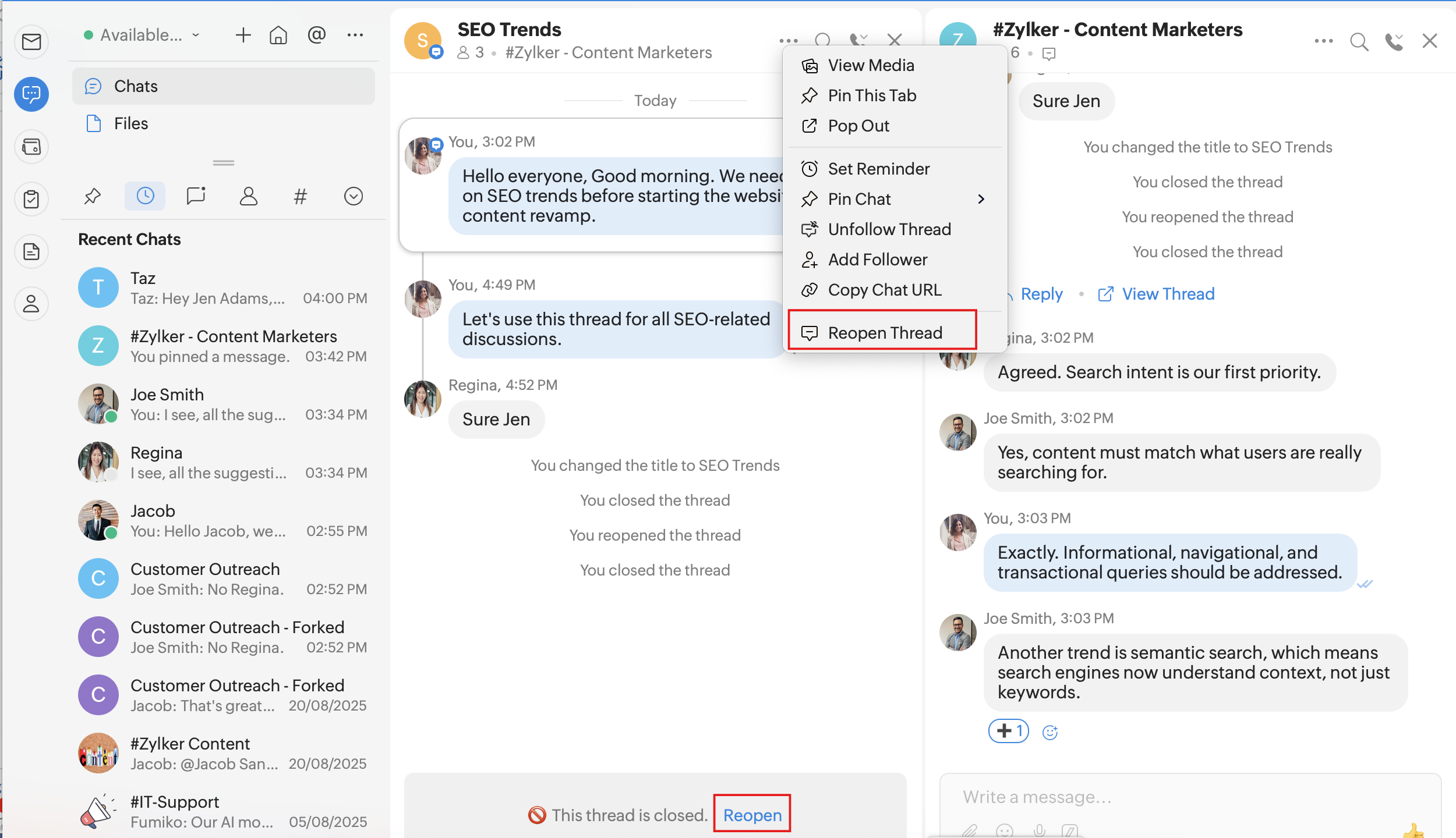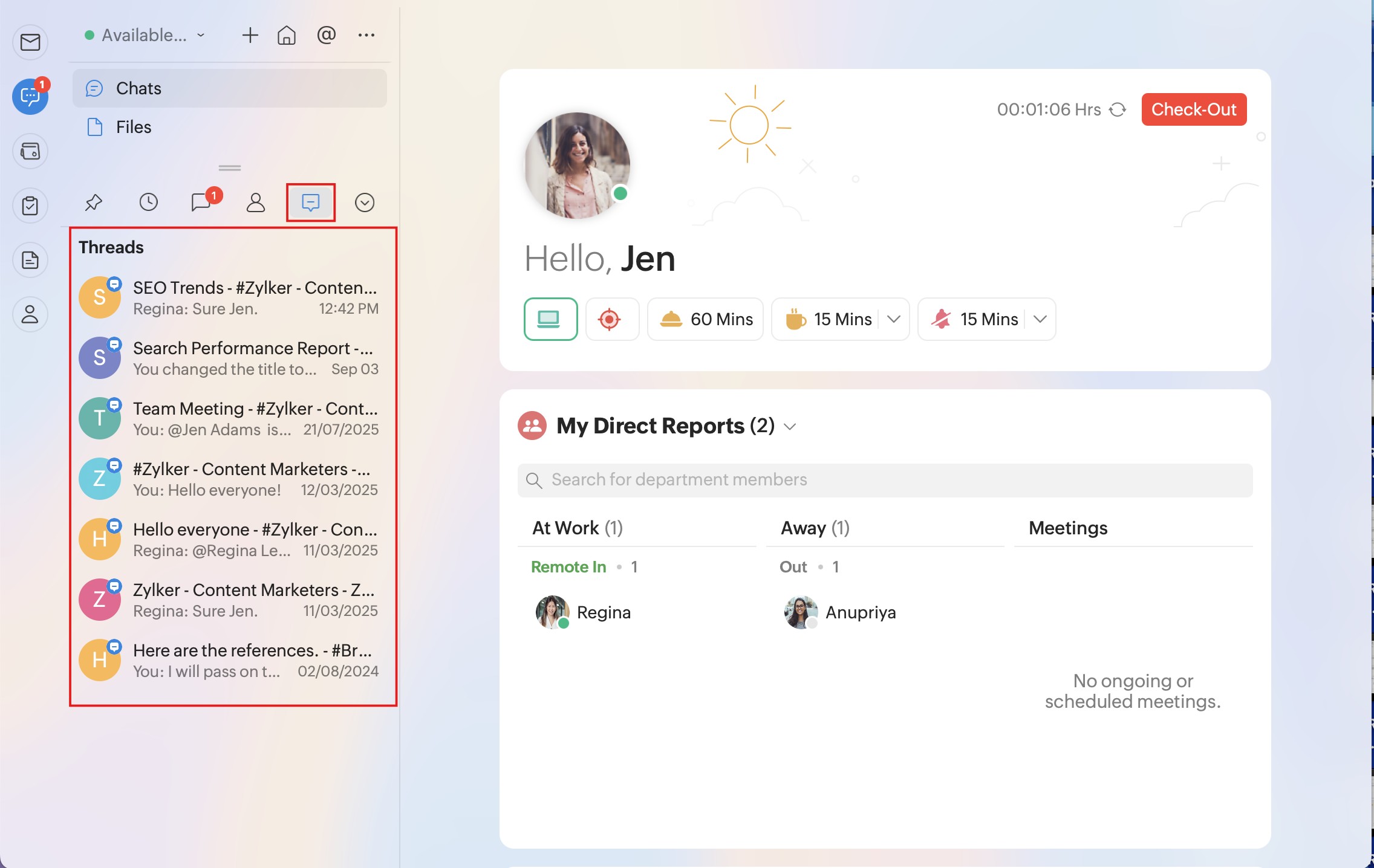 In Cliq channels, if the admin has enabled it, you can reply in threads. To reply in a thread: