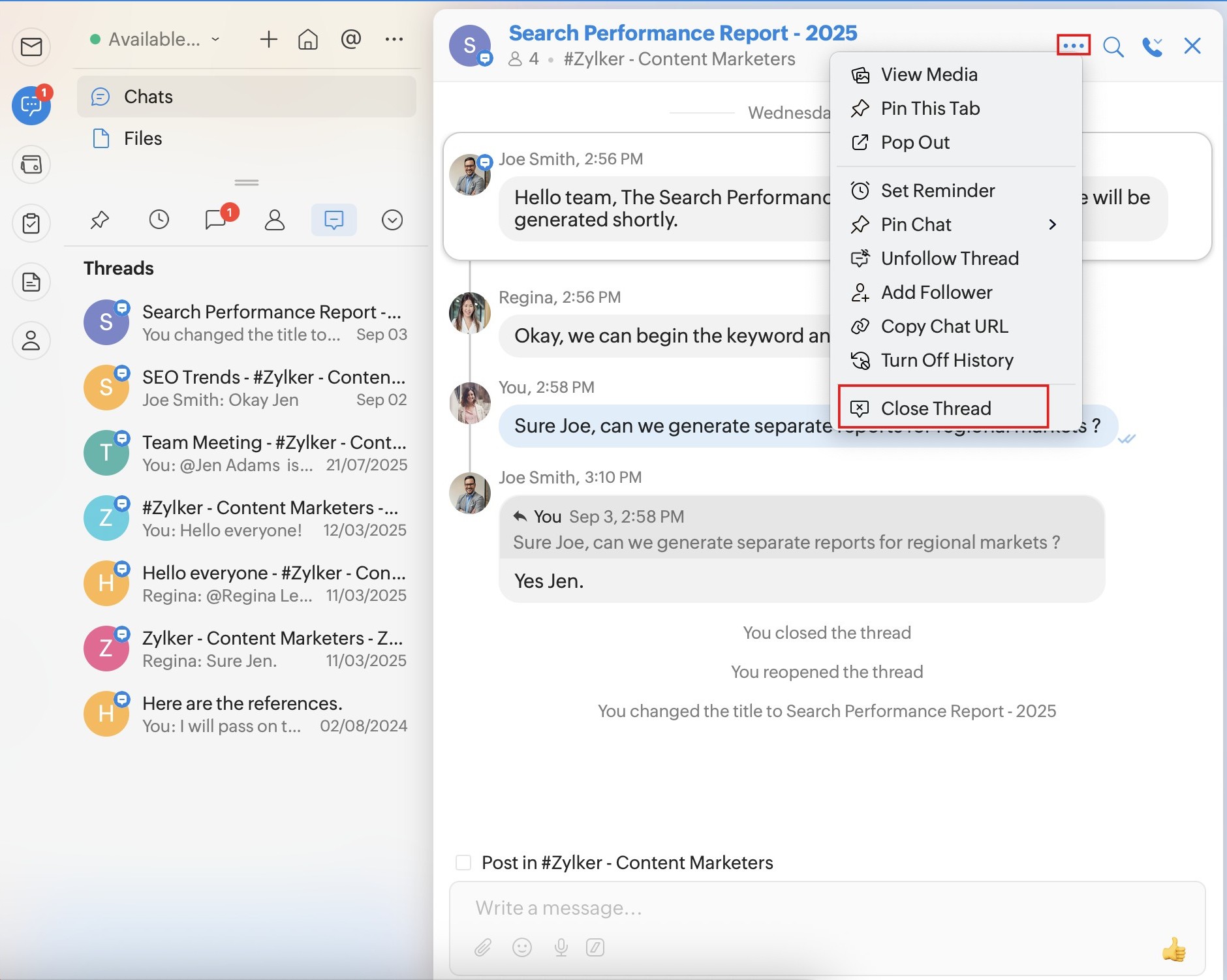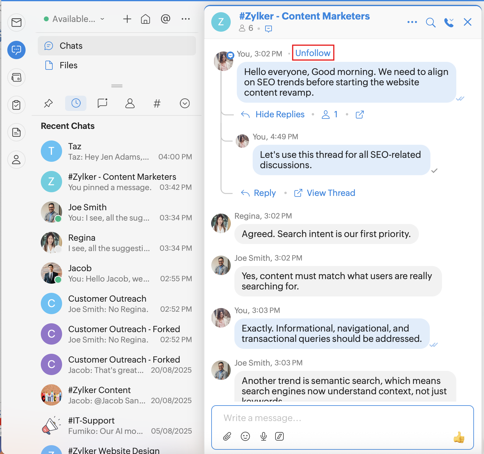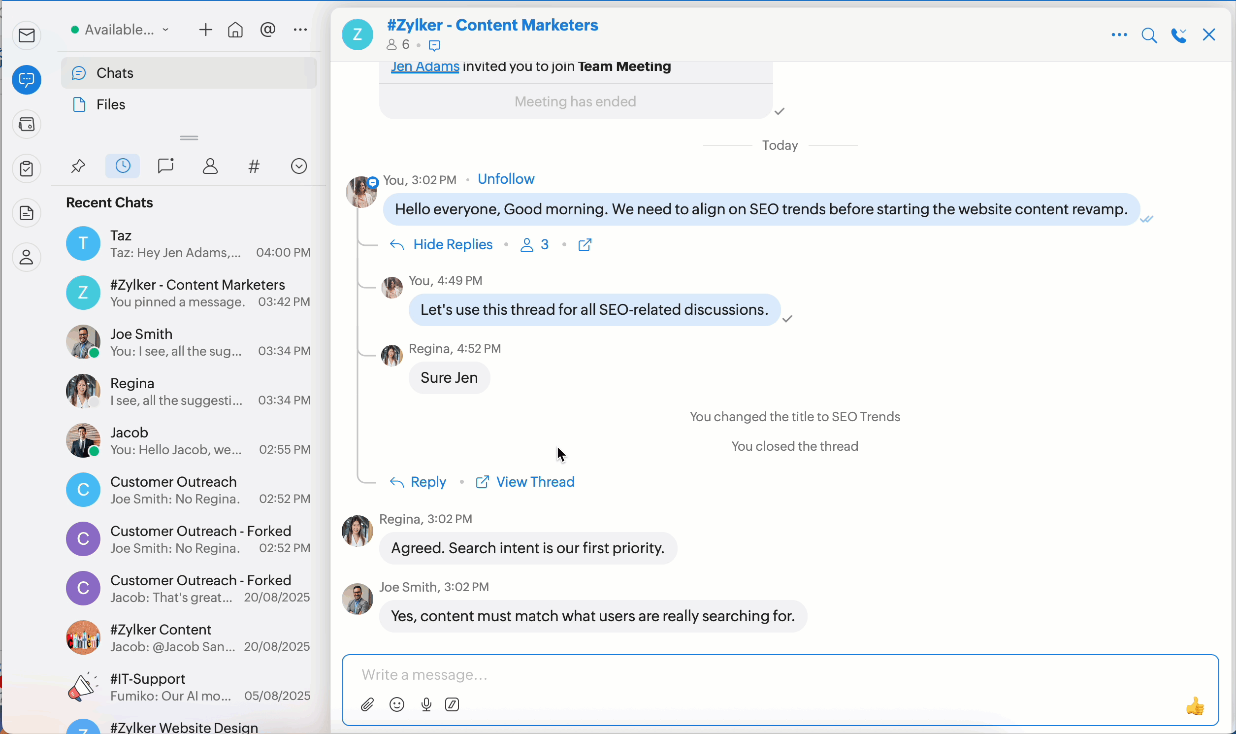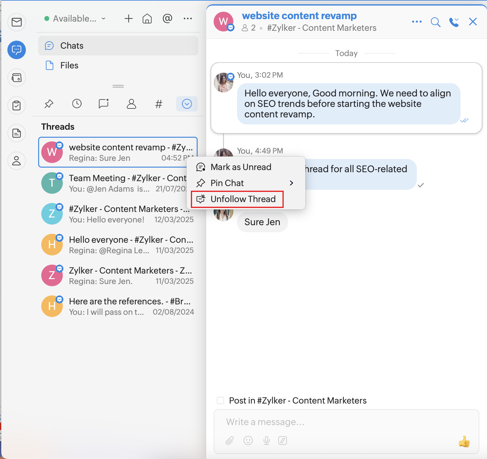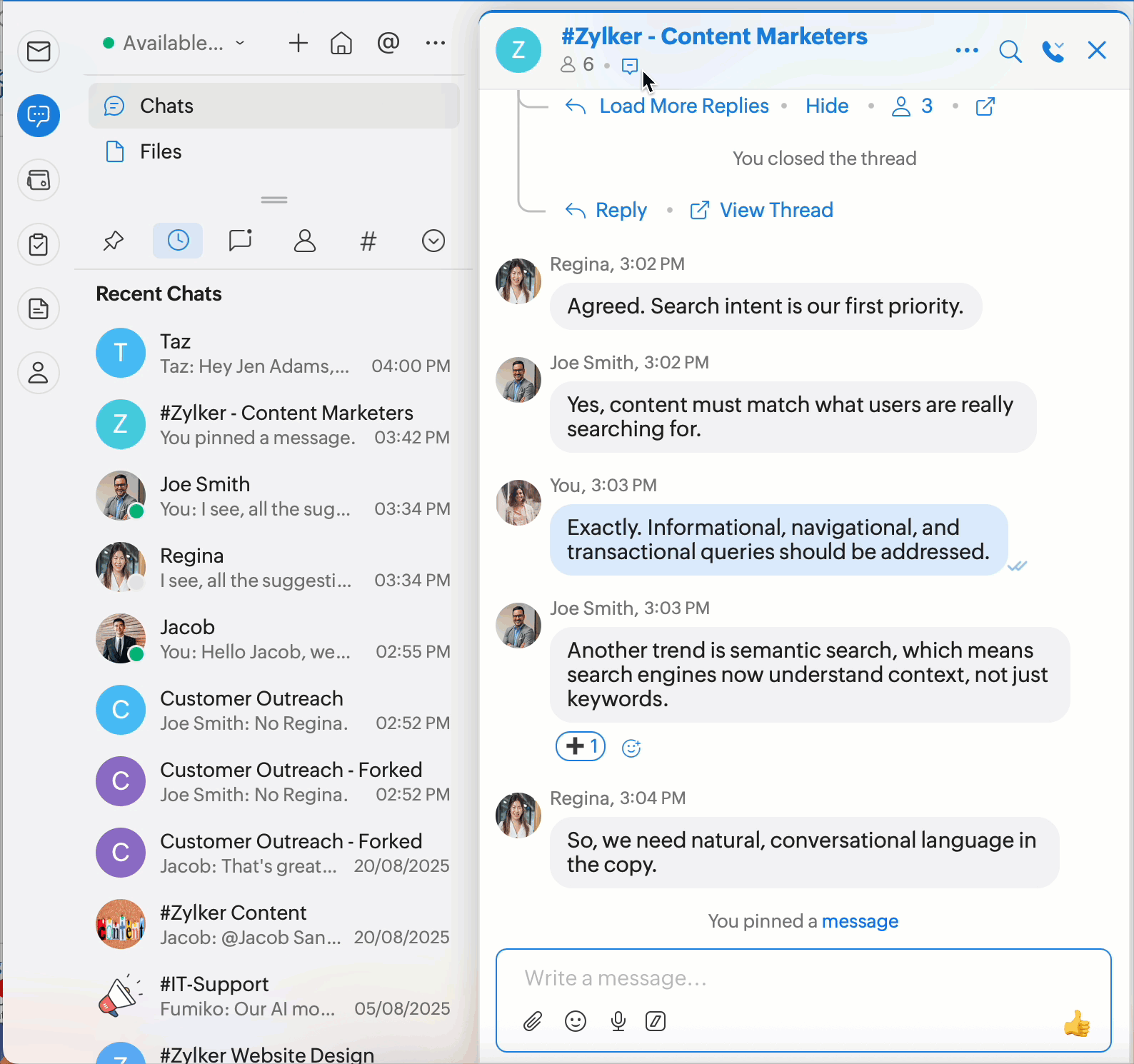 In Cliq channels, if the admin has enabled it, you can reply in threads. To reply in a thread: