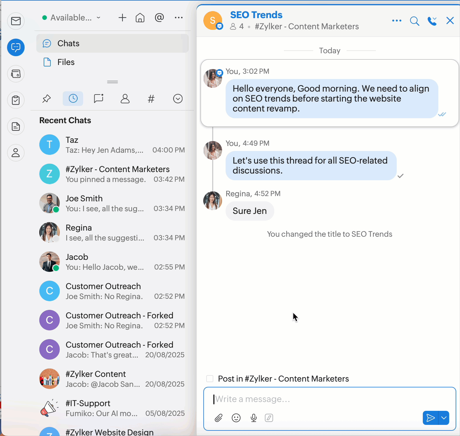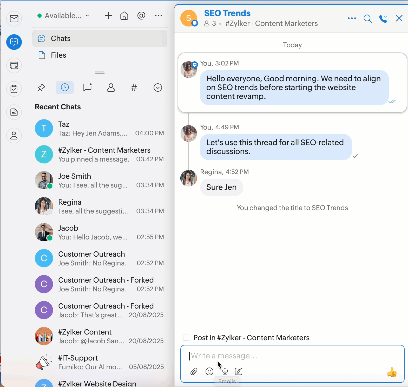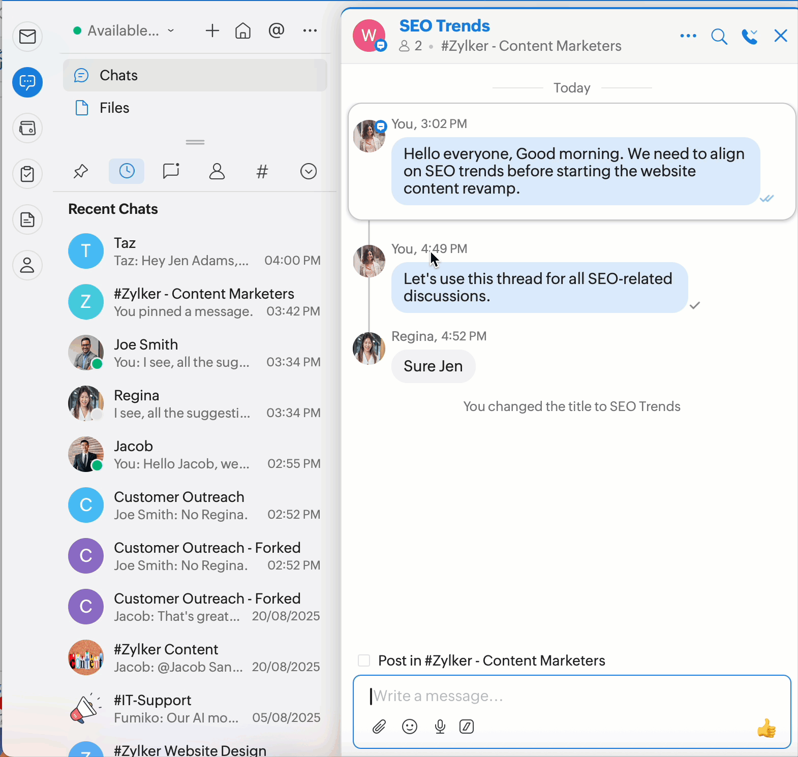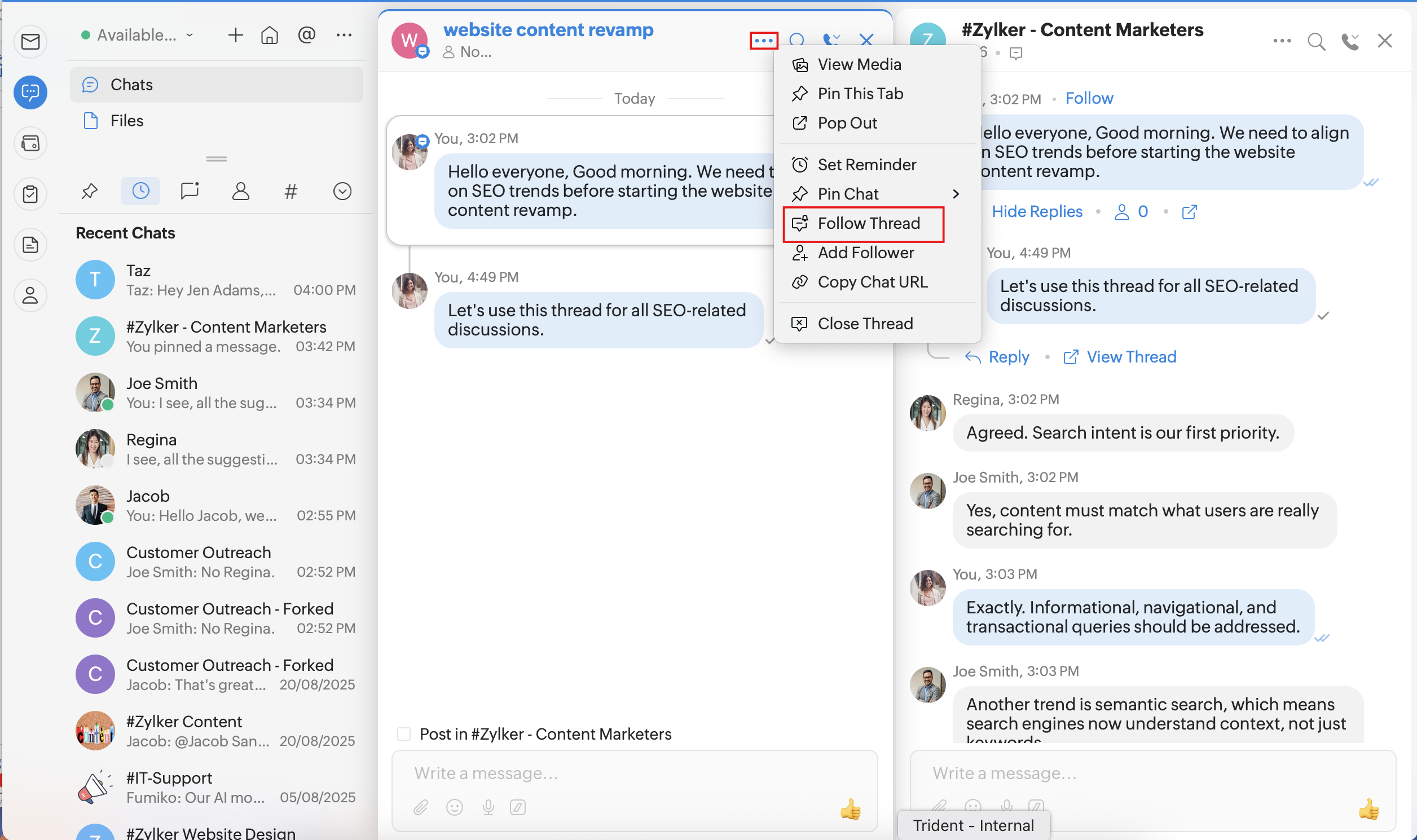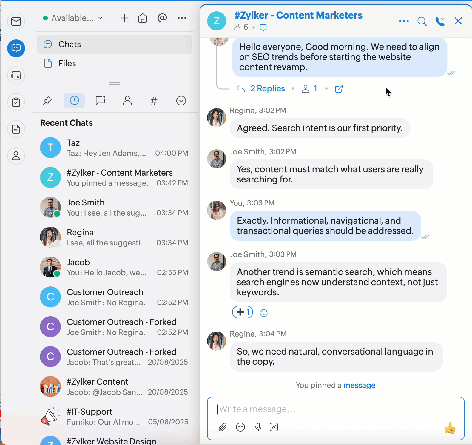 In Cliq channels, if the admin has enabled it, you can reply in threads. To reply in a thread: