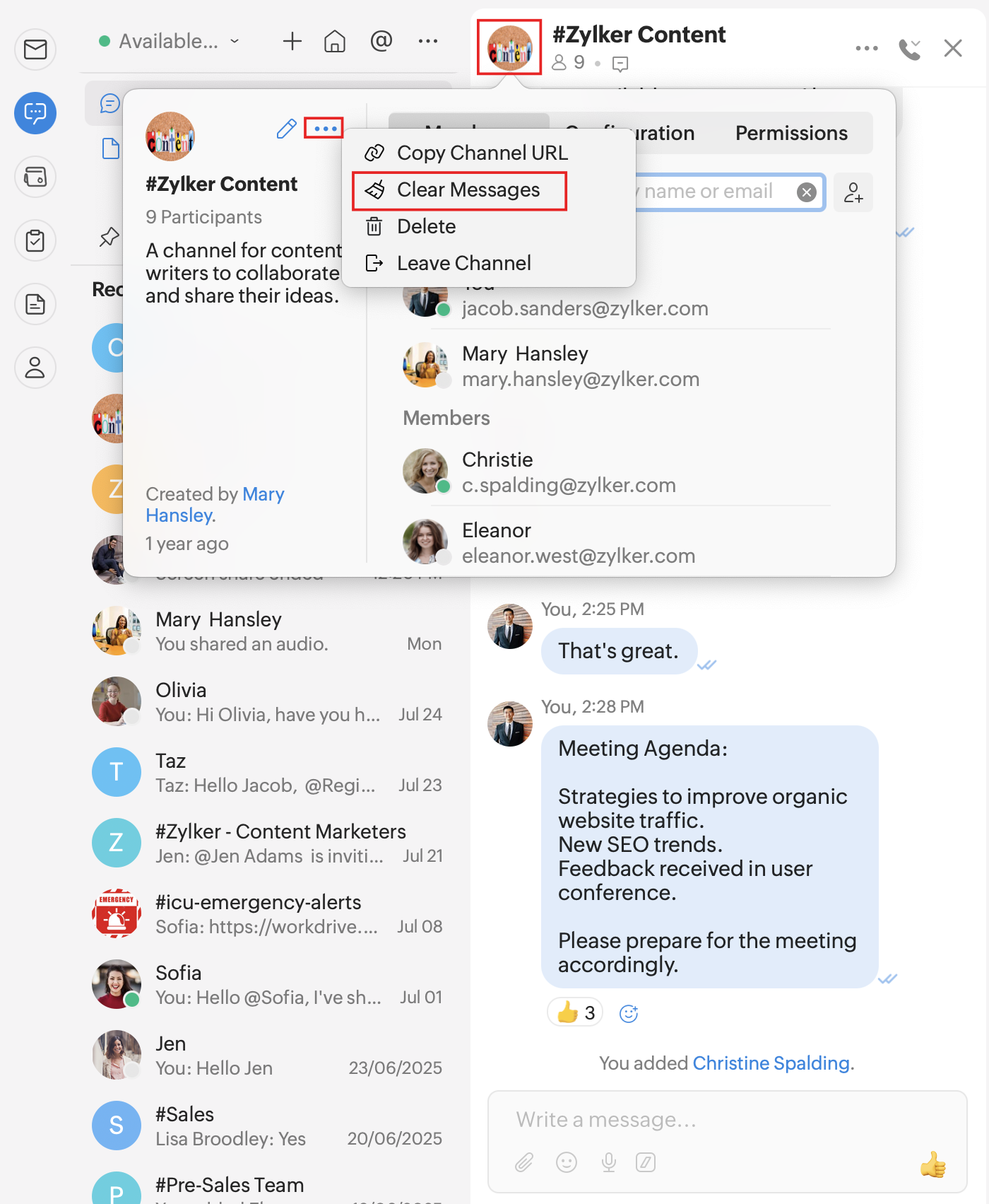 4 | Clear All Messages | To clear the entire conversation history of the channel. |