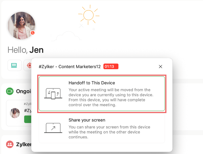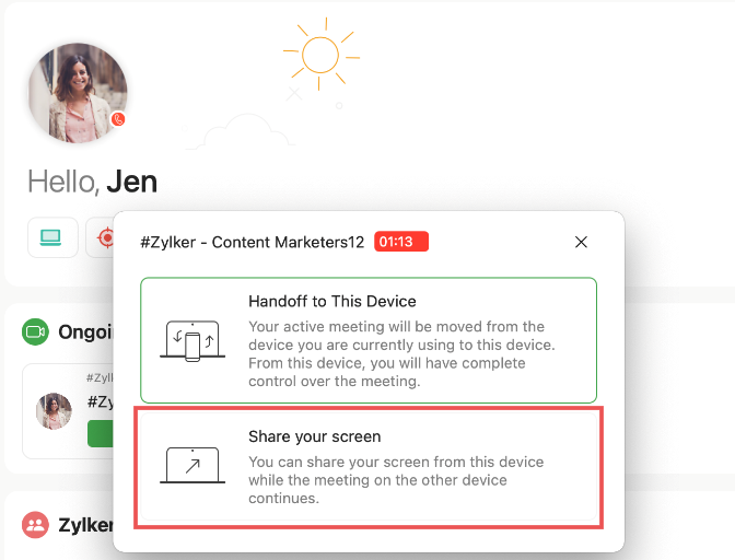If you've attended the meeting through the Cliq web application and are sharing your screen, you can transfer the screen share call to Trident. To do so: