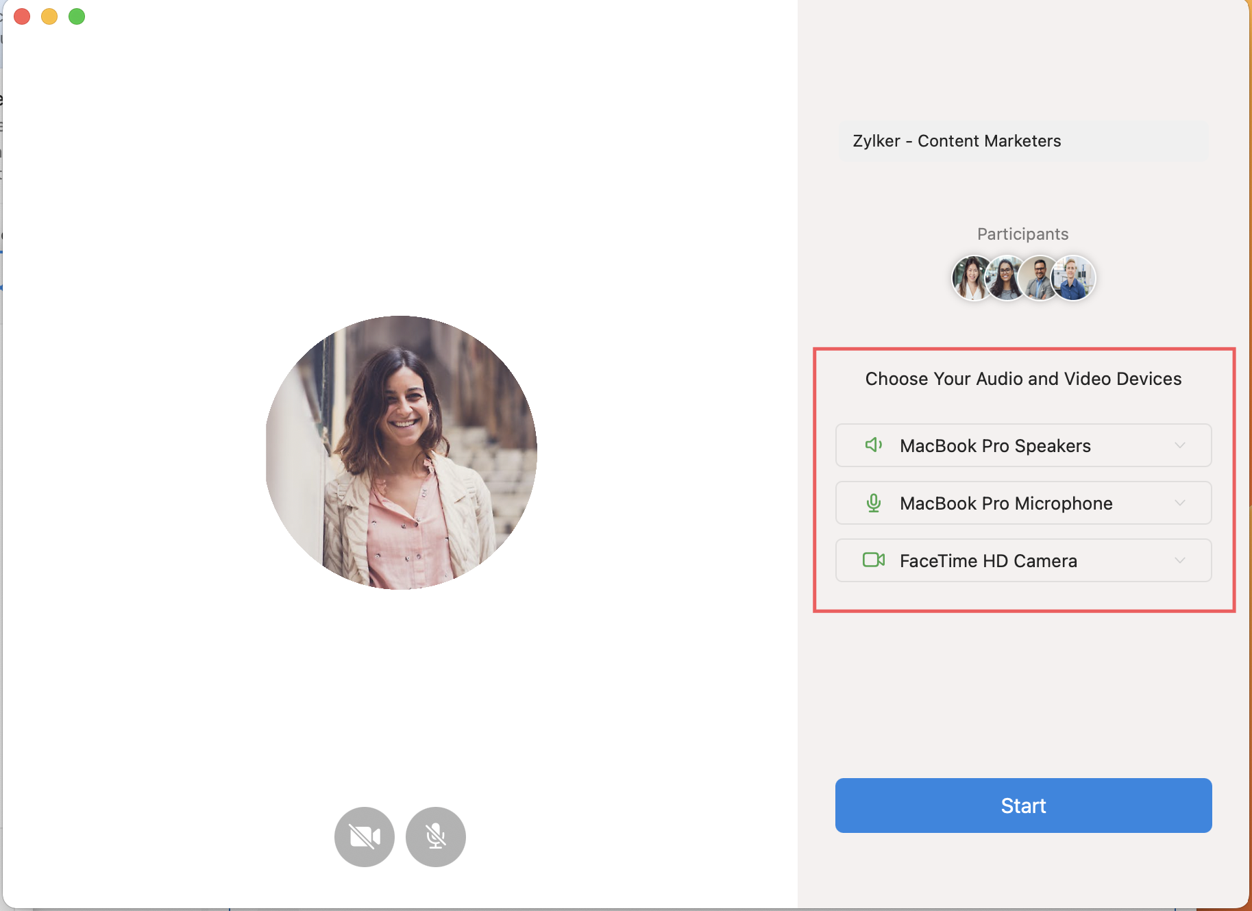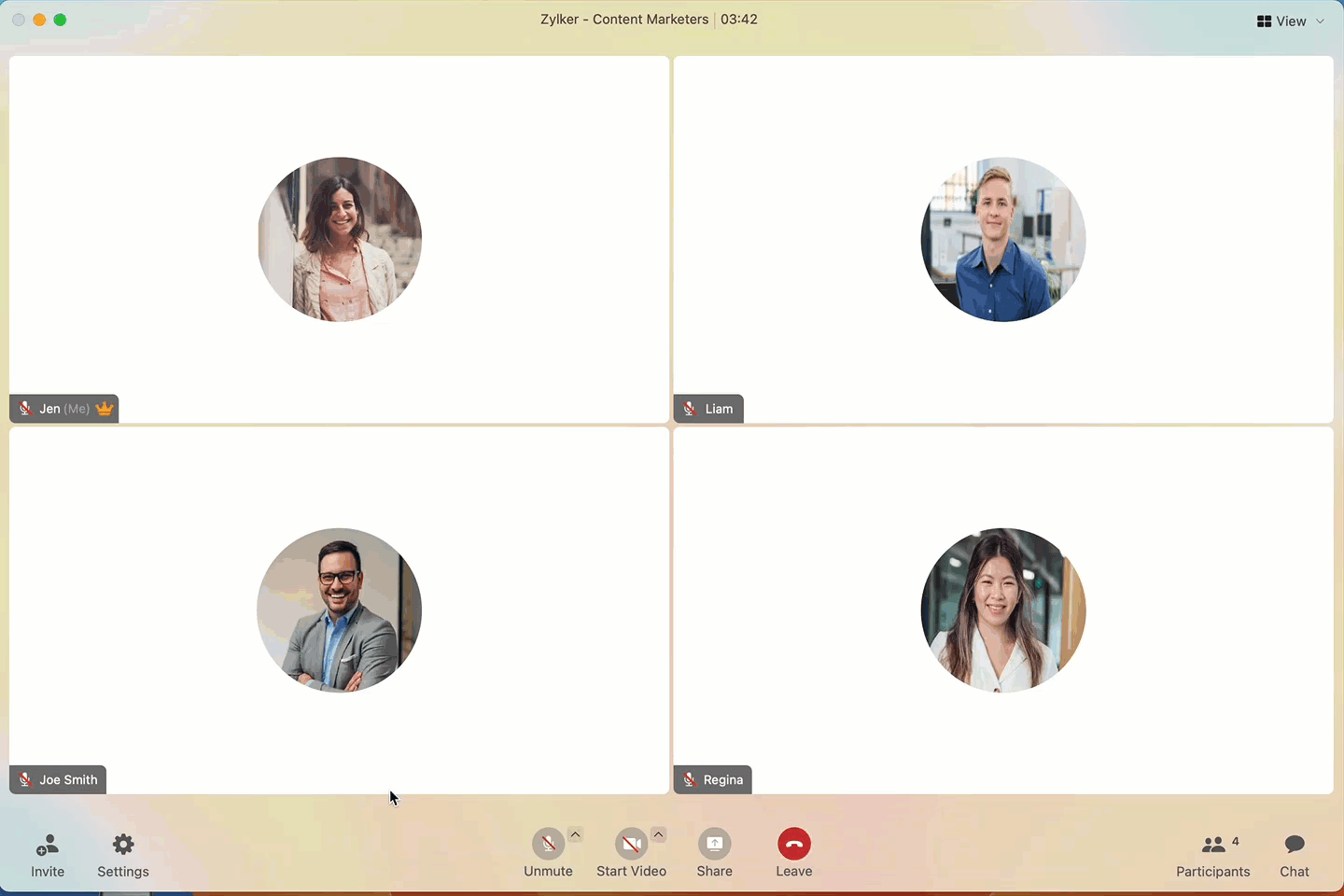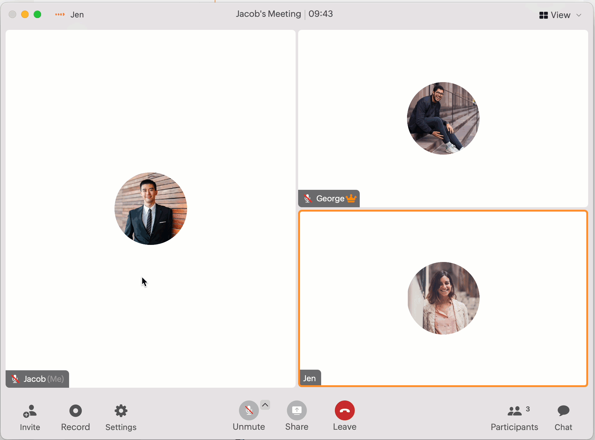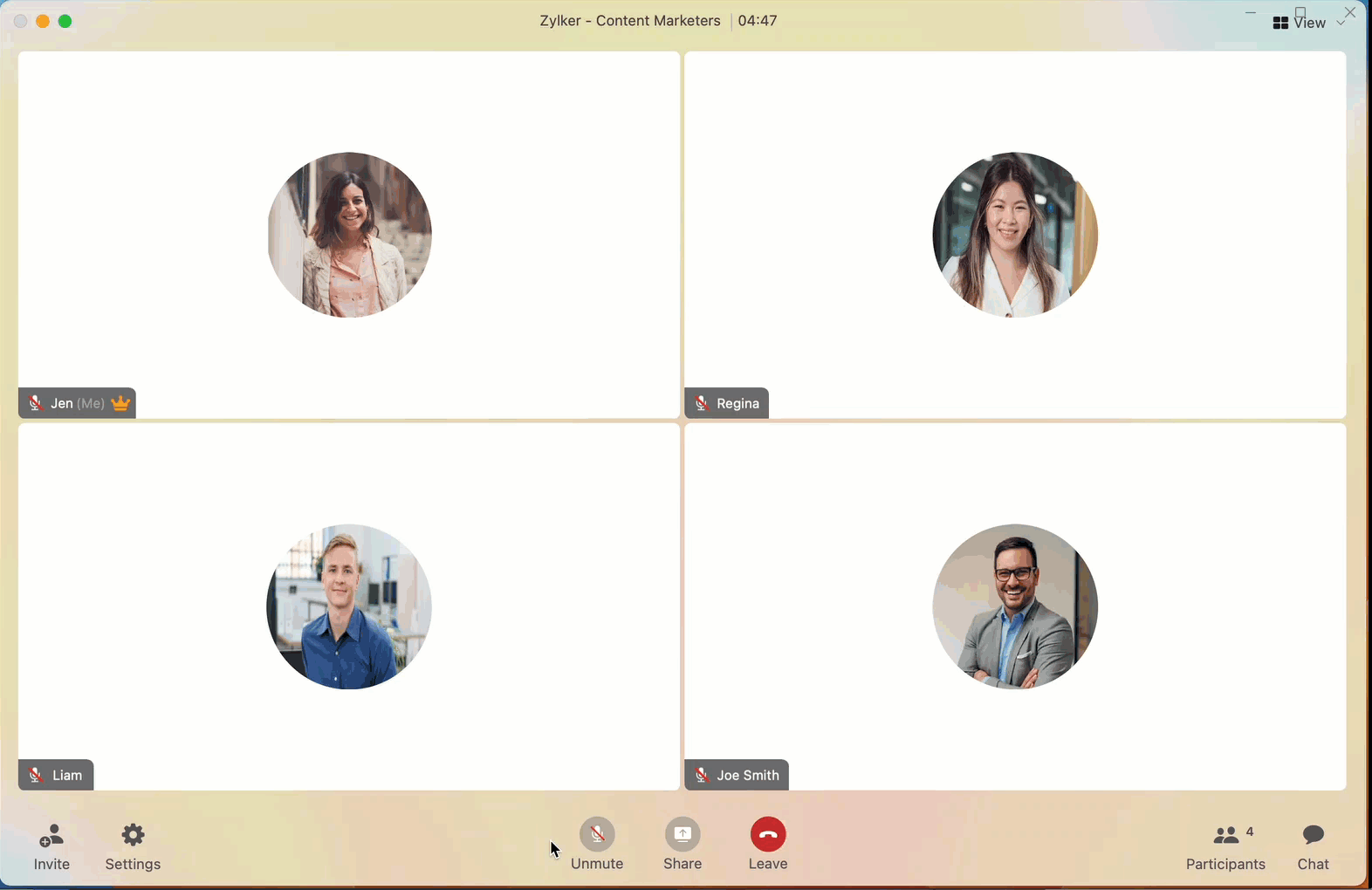 You can choose between multiple call layouts to suit your preferences during a meeting. To customize the layout, click the View icon in the app menubar.