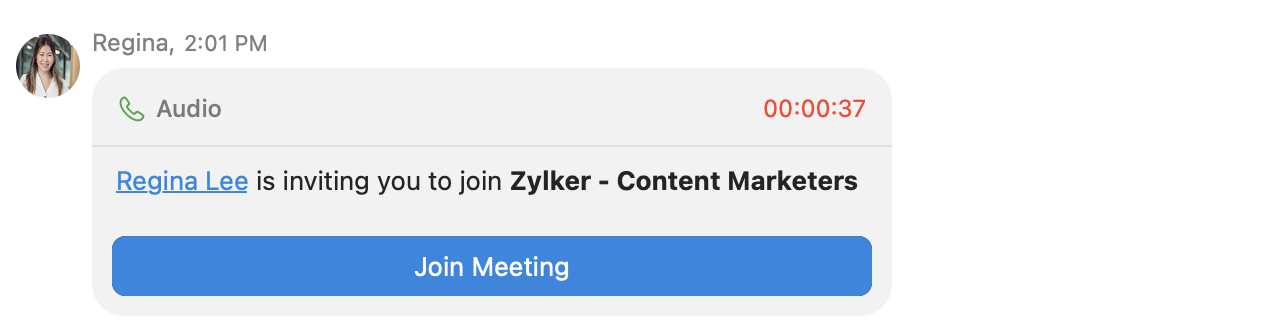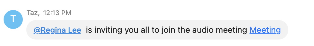 Note: You will also receive a meeting invitation via the Taz bot whenever you're added to an ongoing meeting.