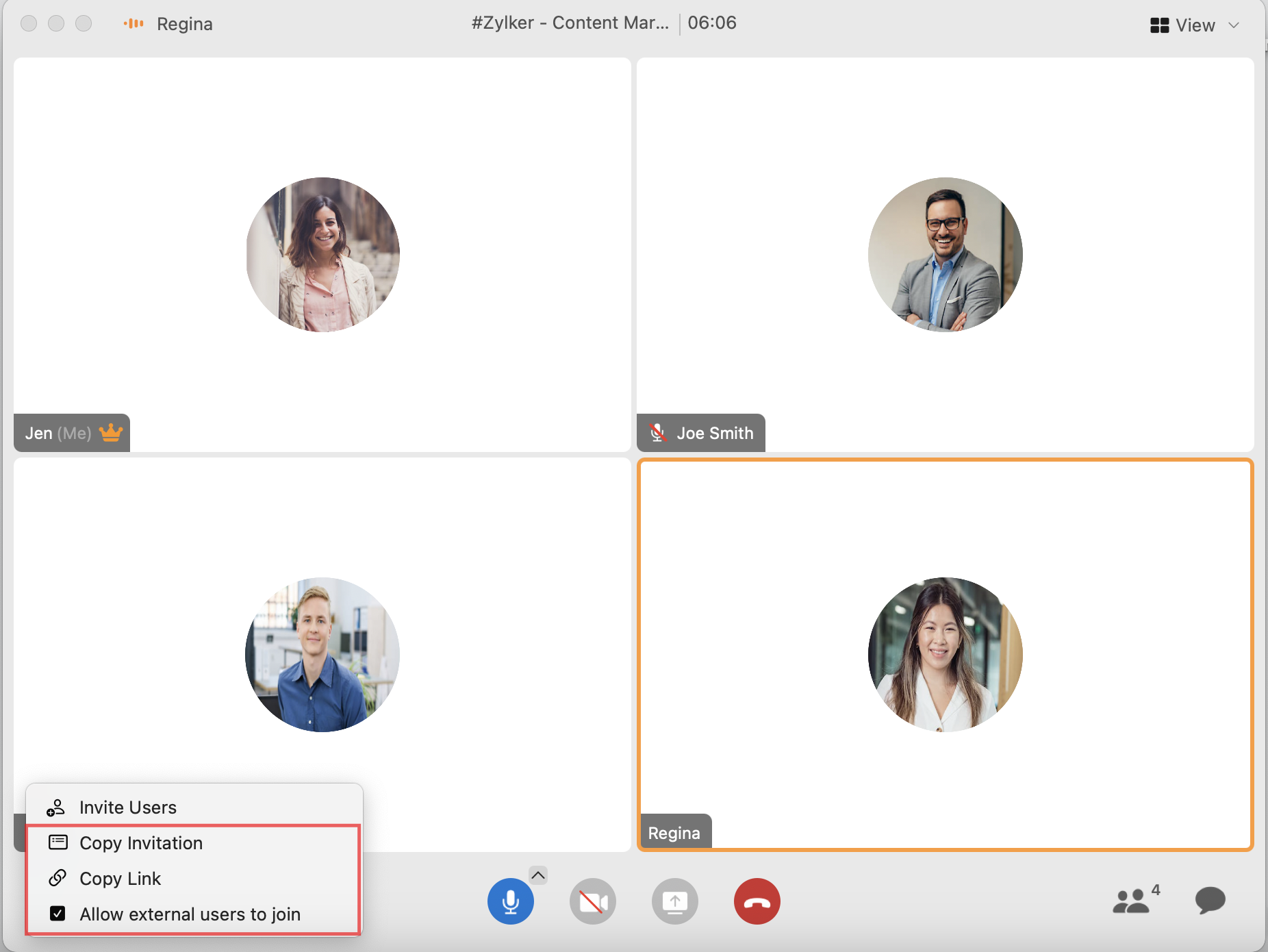 Select Copy Invitation or Copy Link to copy the invitation details for users to join the meeting.