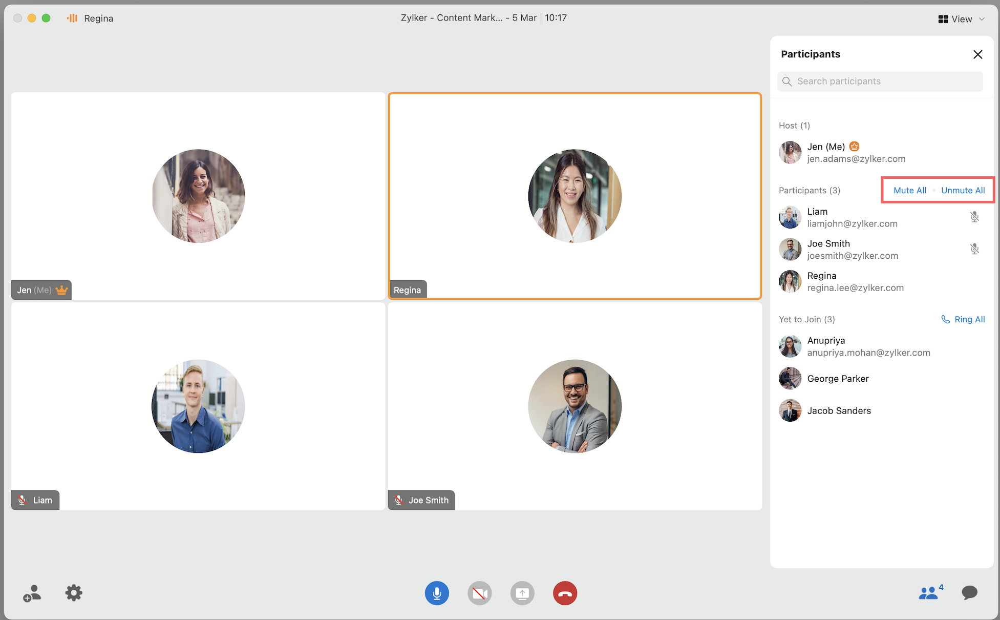 Unmute Participant | Unmutes the participant who is on mute. |