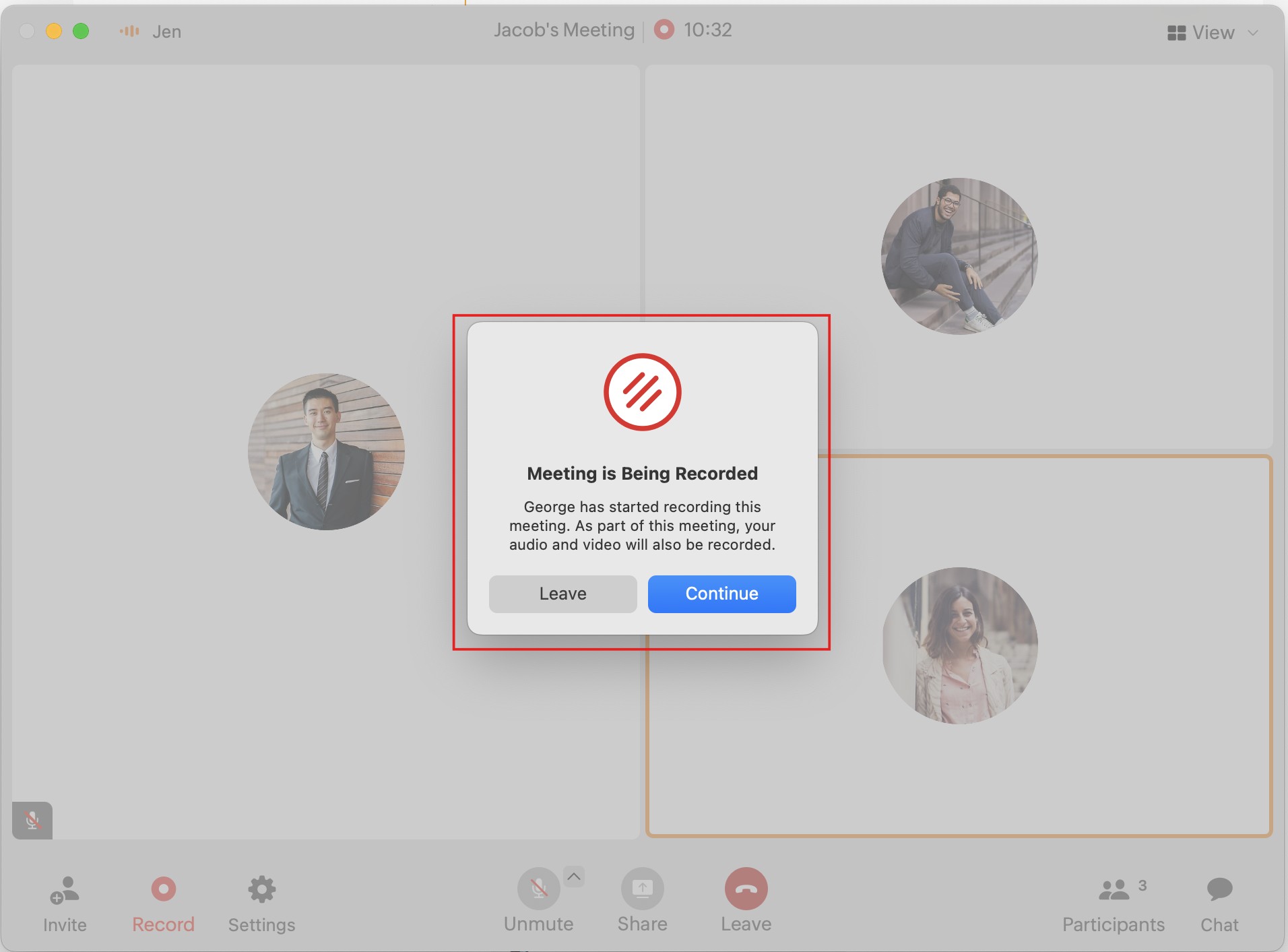 The participants of the meeting have to consent to being recorded.