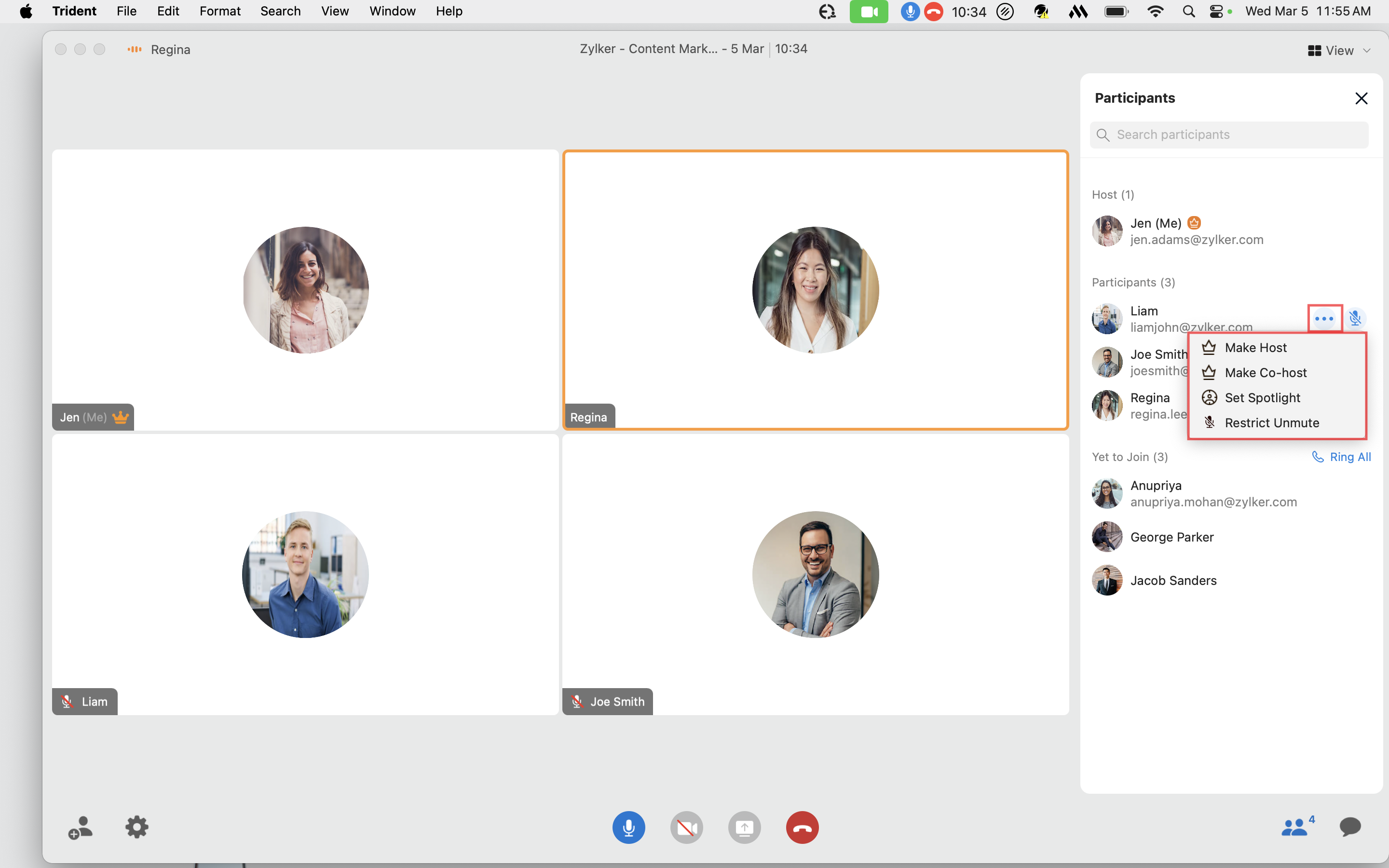 The host and co-host can use the following options to manage an individual's permission while in a meeting.