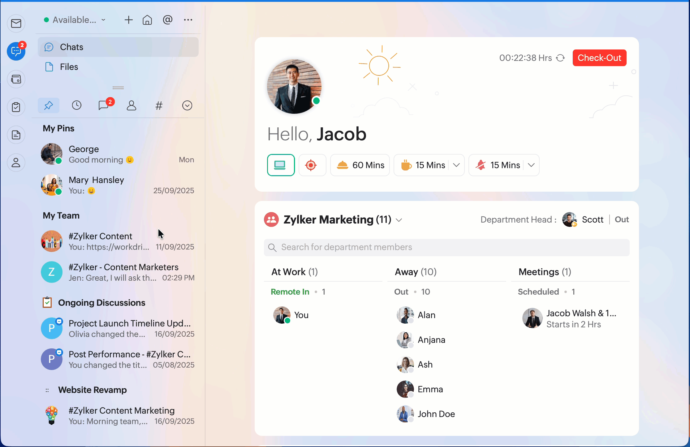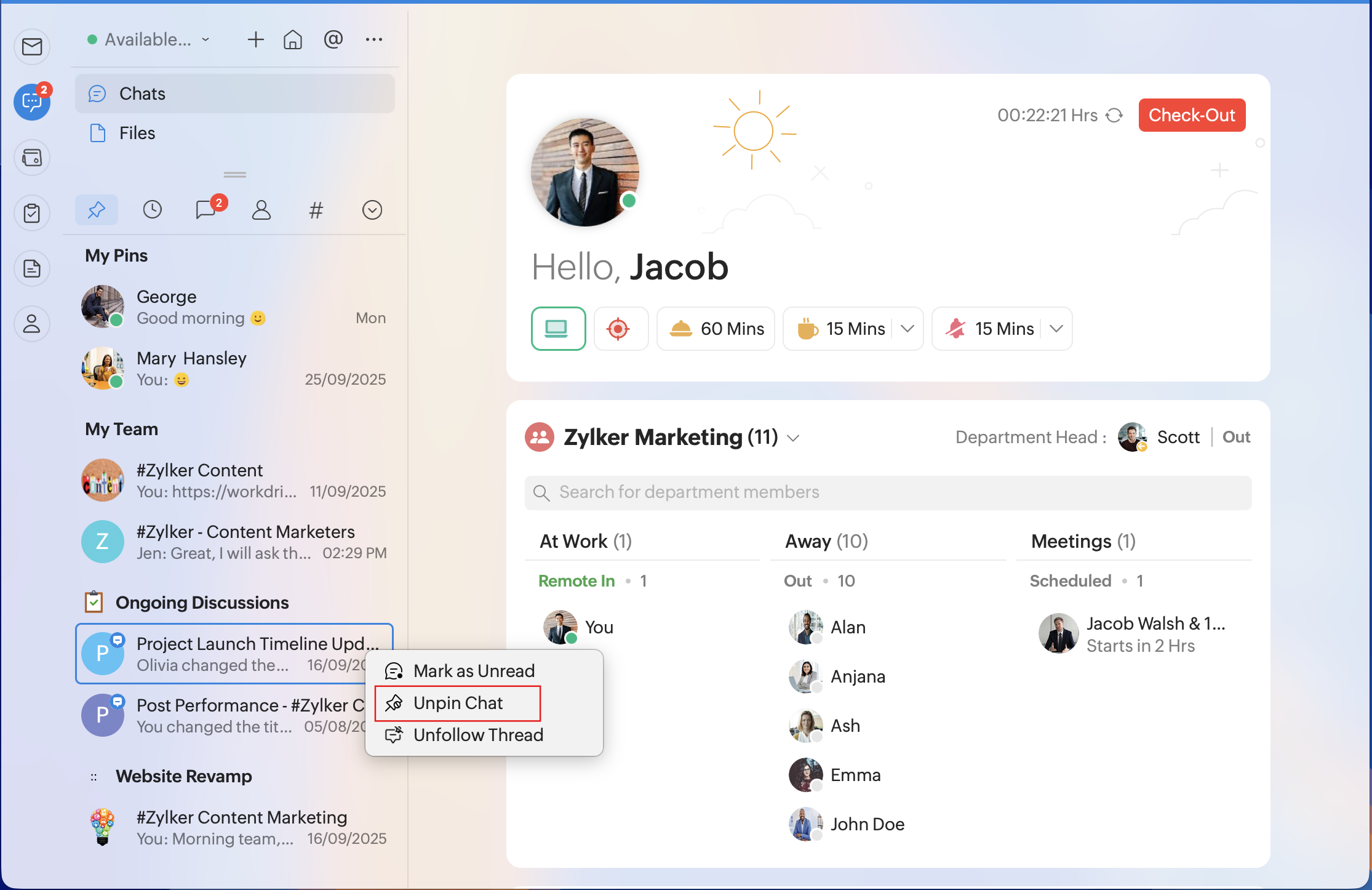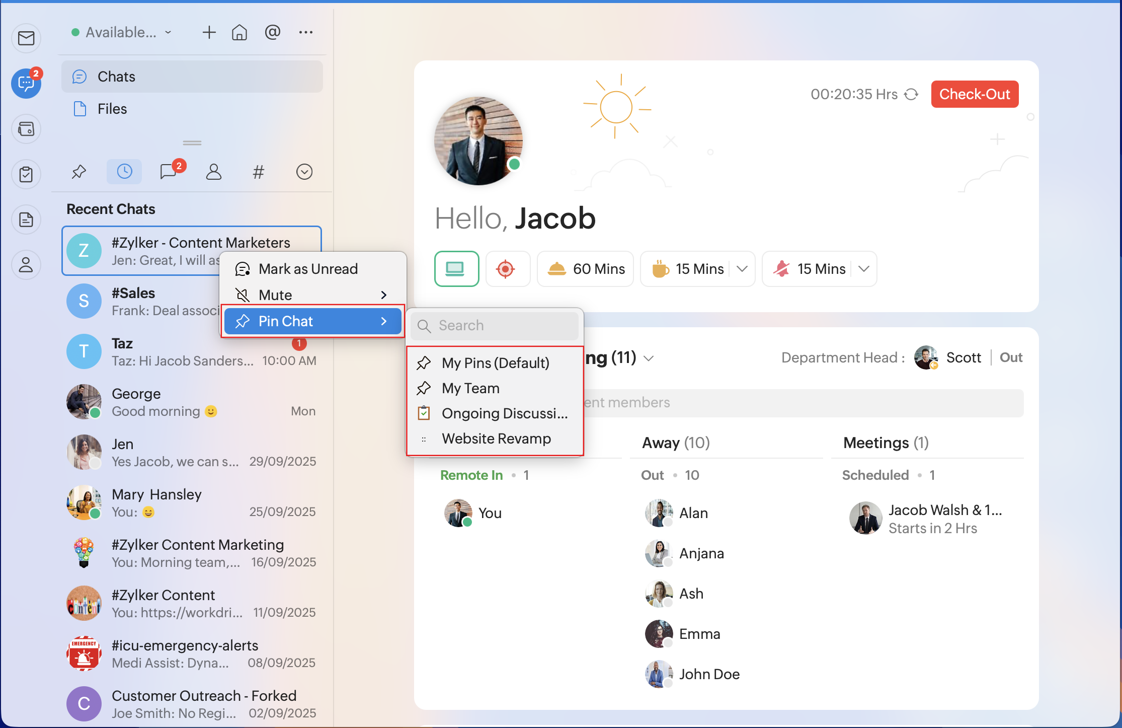 You can create pinned chat folders from Zoho Cliq on the web.