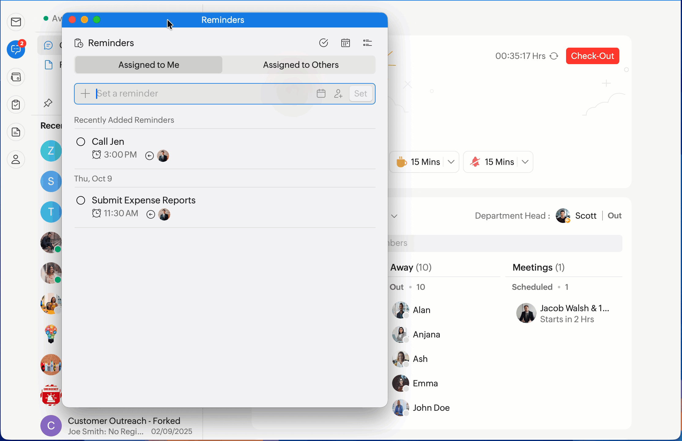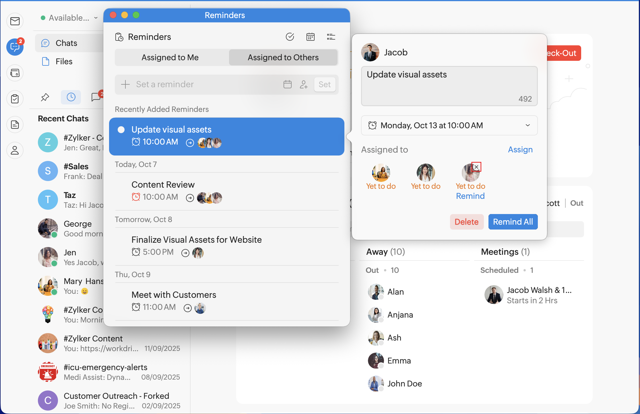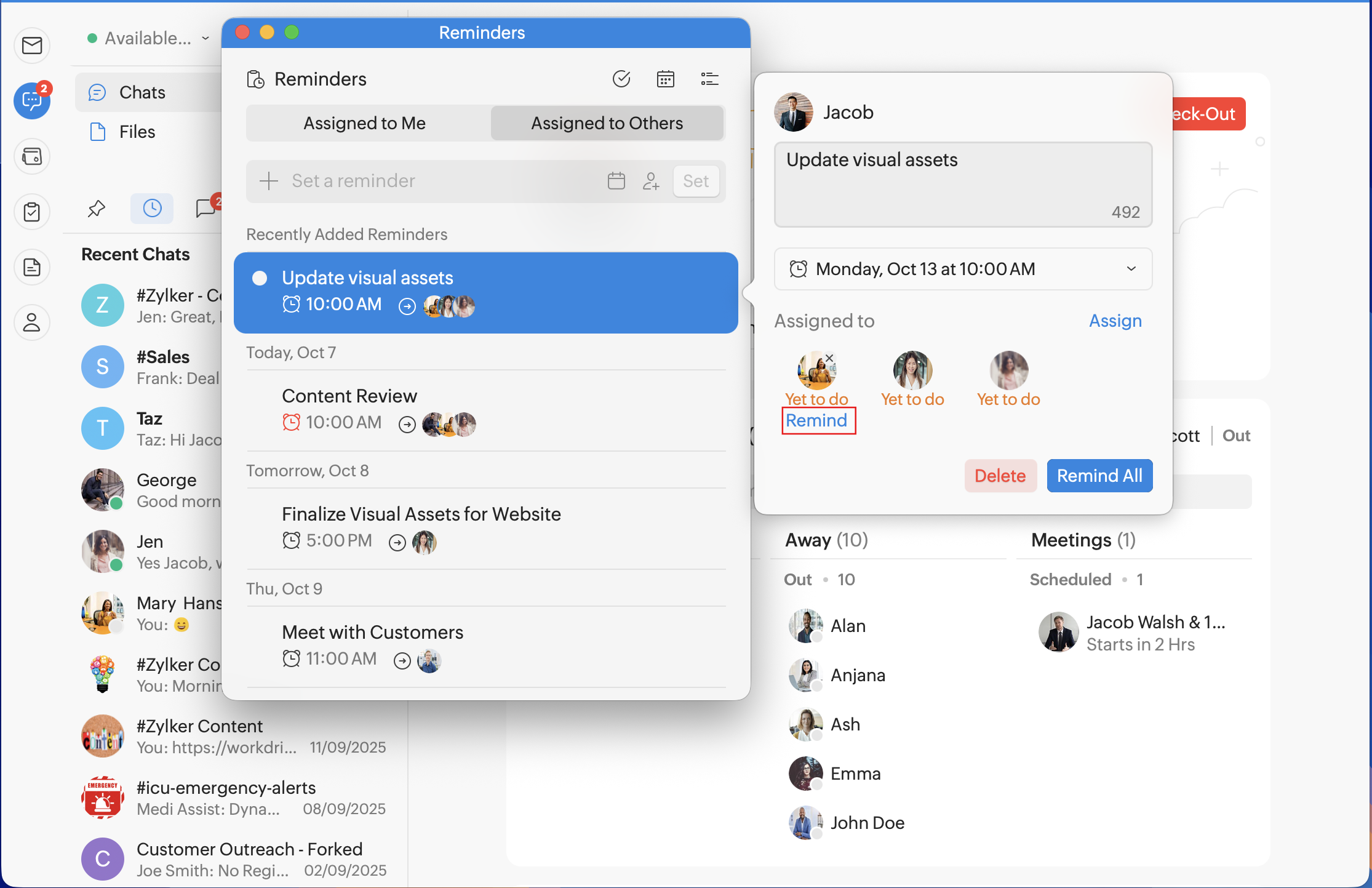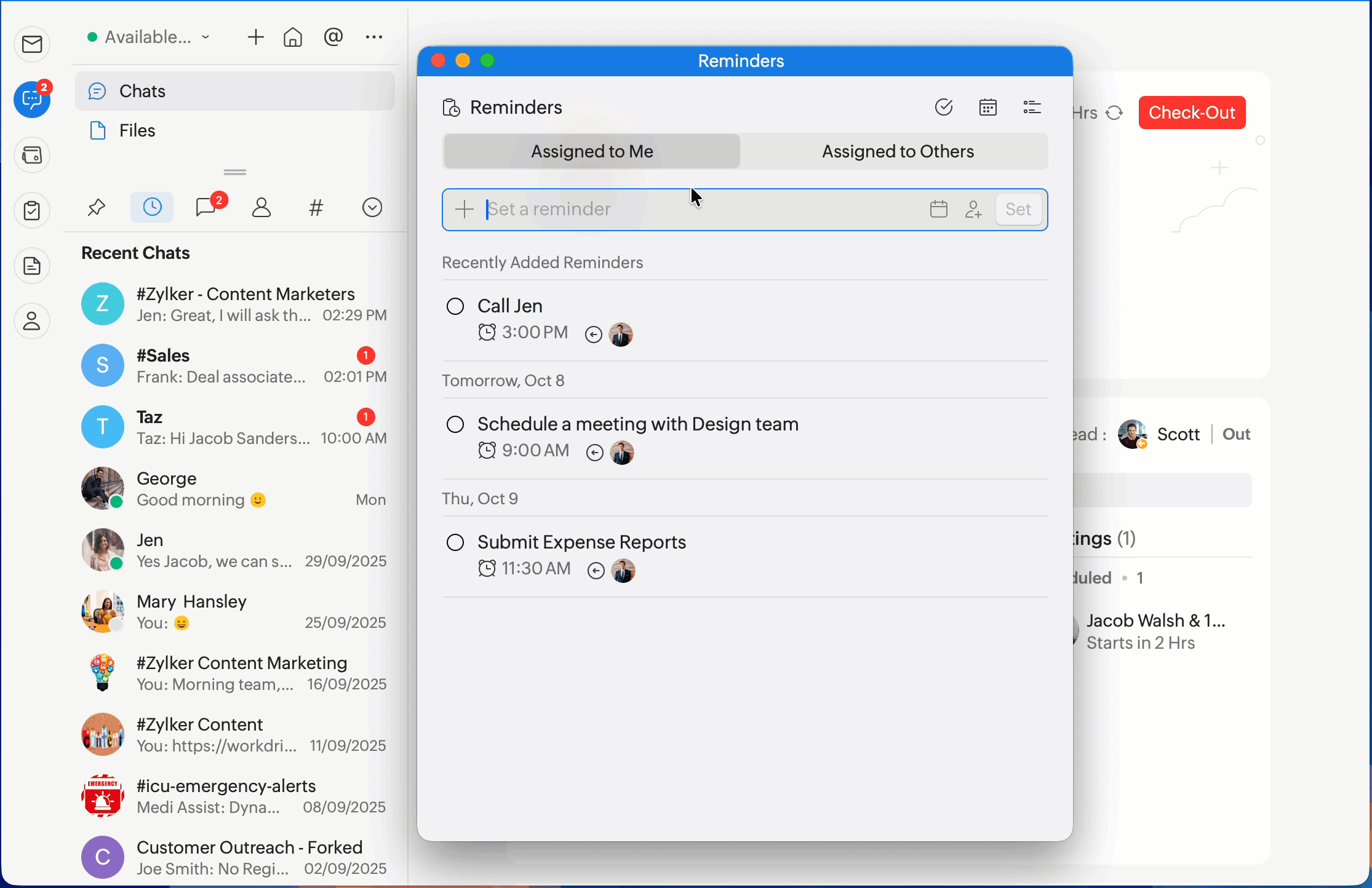 In addition to setting reminders for specific messages, you can set general reminders for yourself or for your teammates.