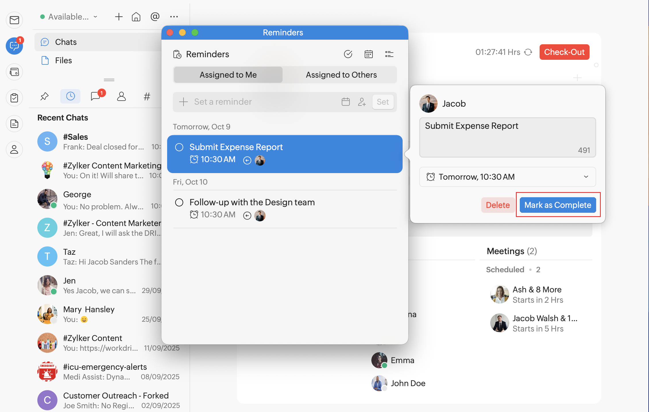 To mark a reminder you've assigned for yourself or those that your teammates have assigned to you, as complete: