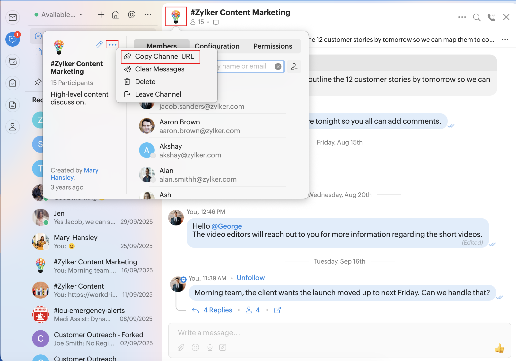 Copy Channel URL: To copy a channel's URL and share with other users.