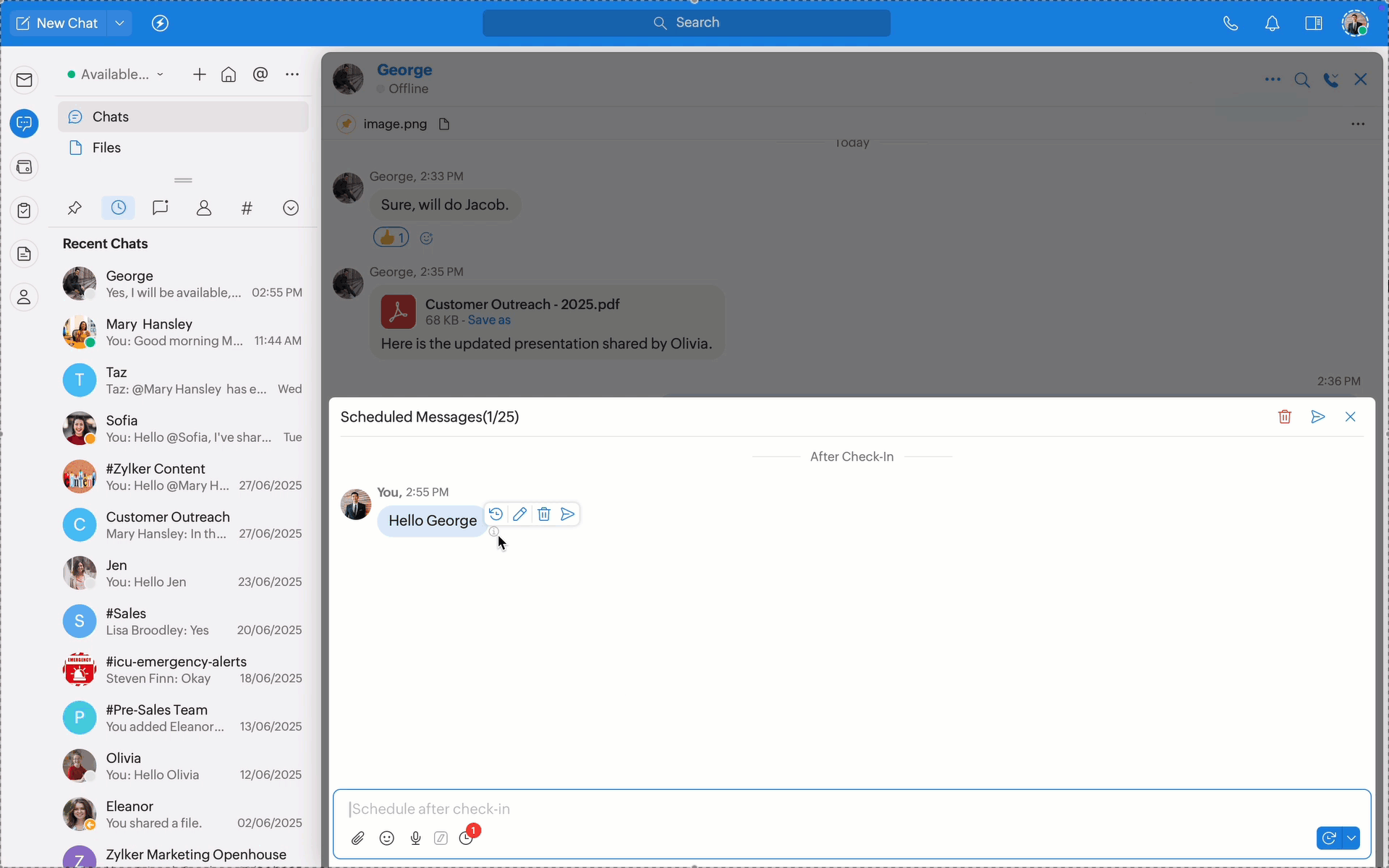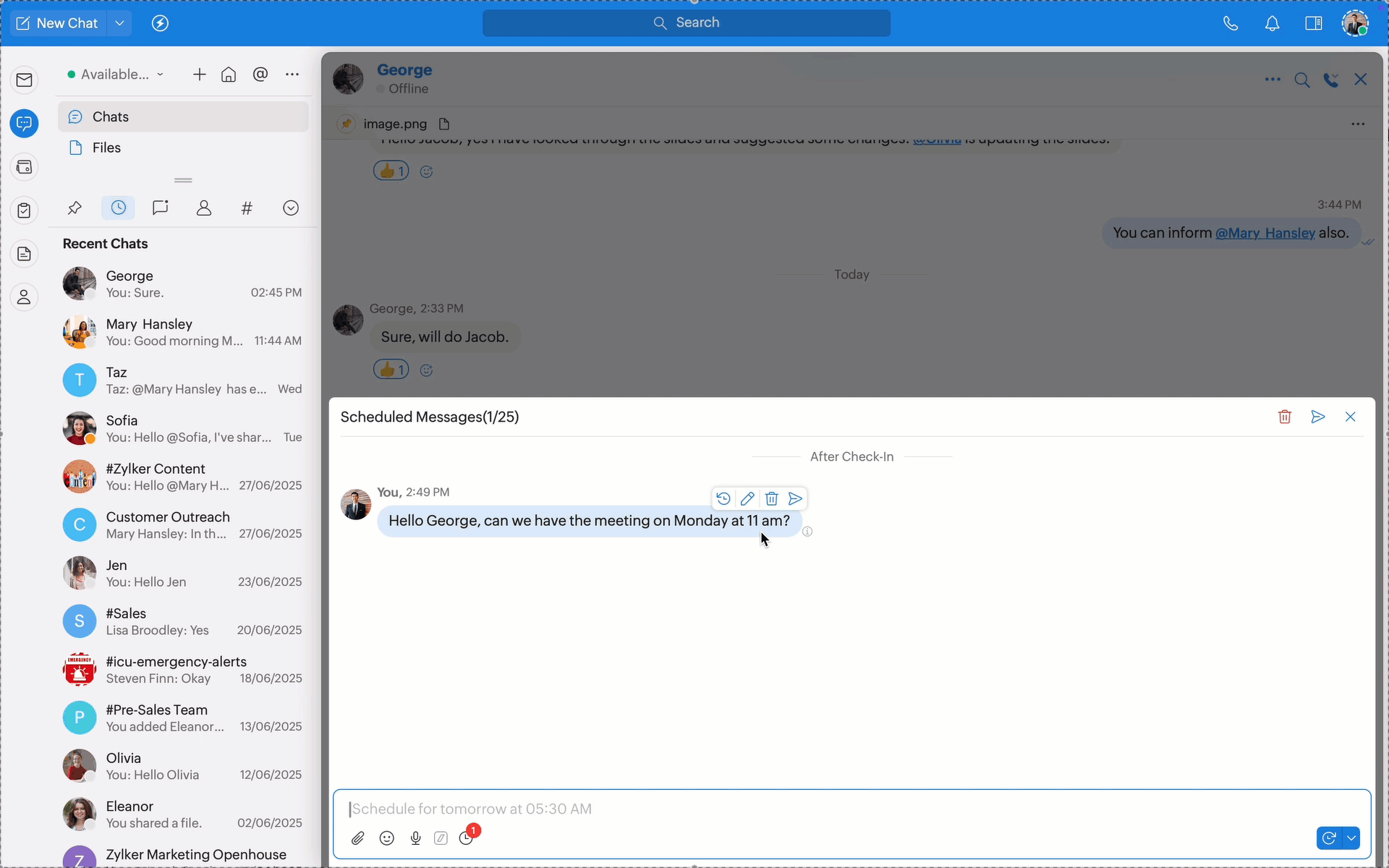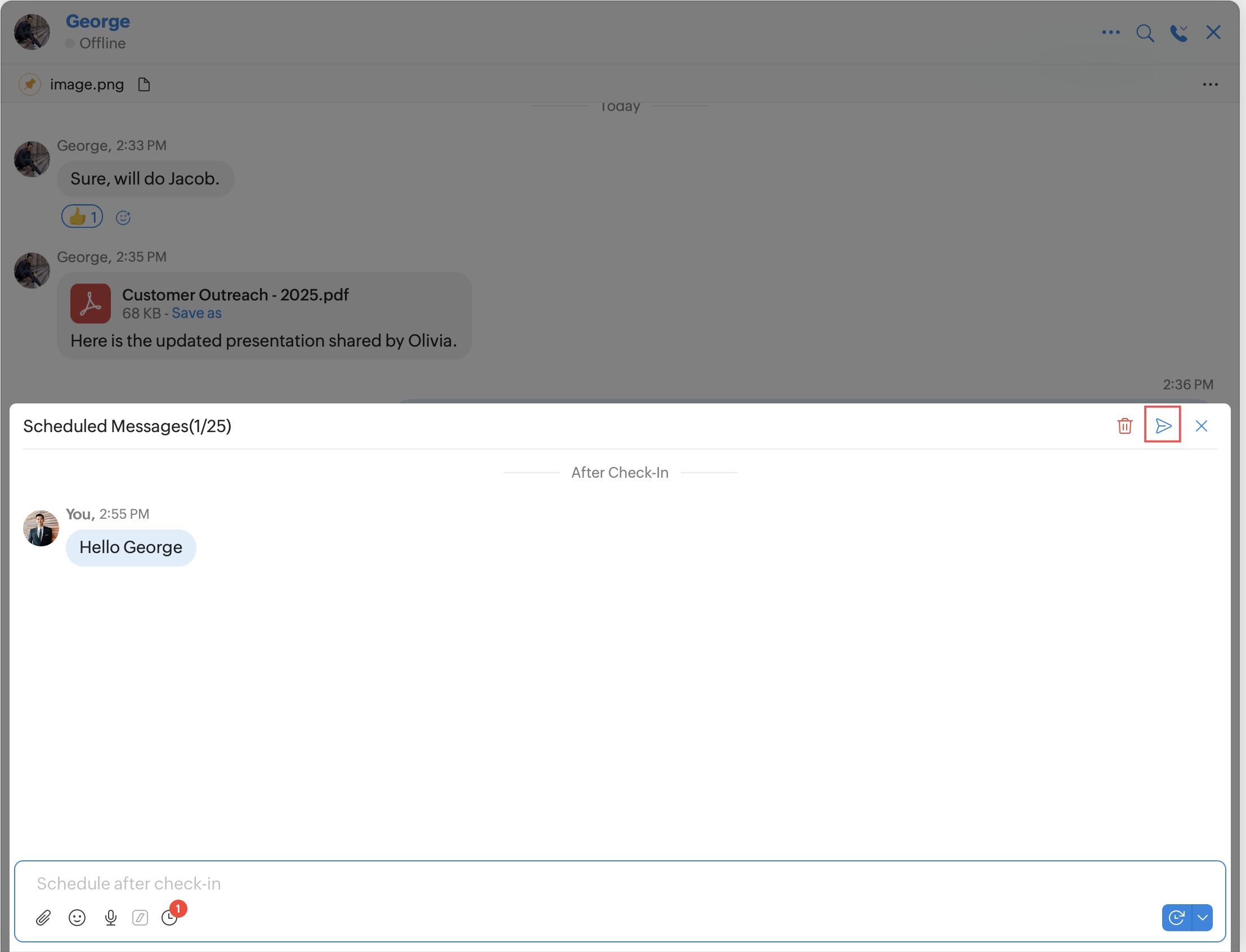 In the pop-up that opens, select the new option for when you want the message to be delivered.