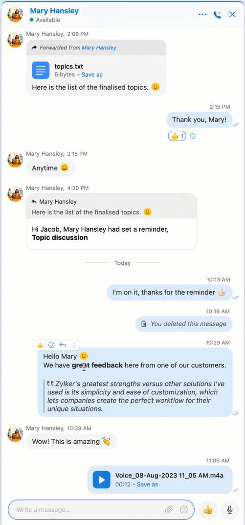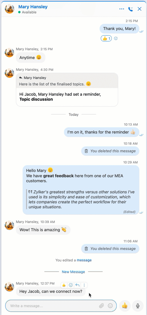 In this article, we'll see how you can edit, delete, reply to, and forward chat messages.