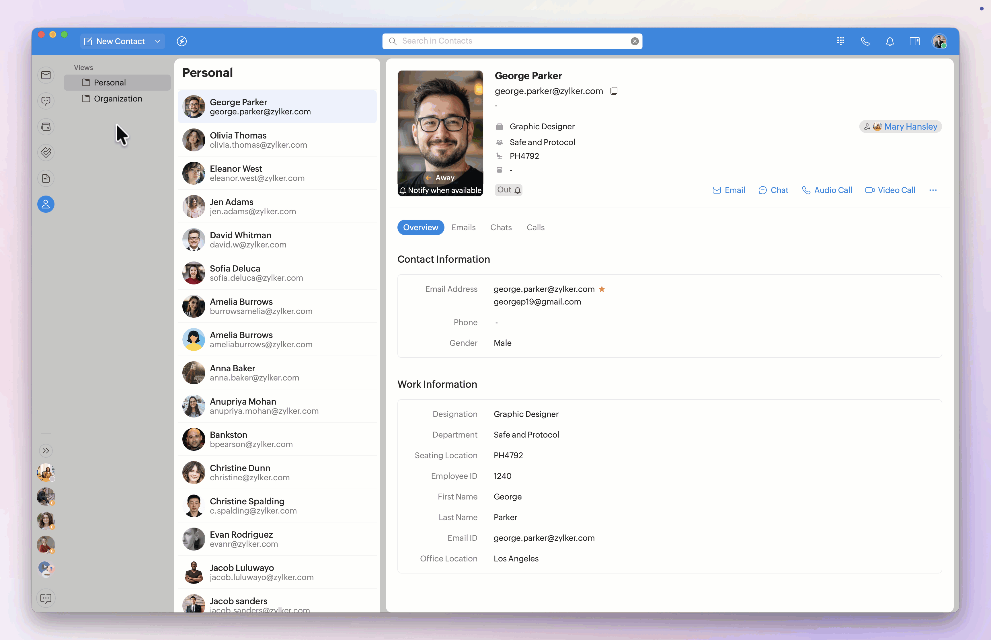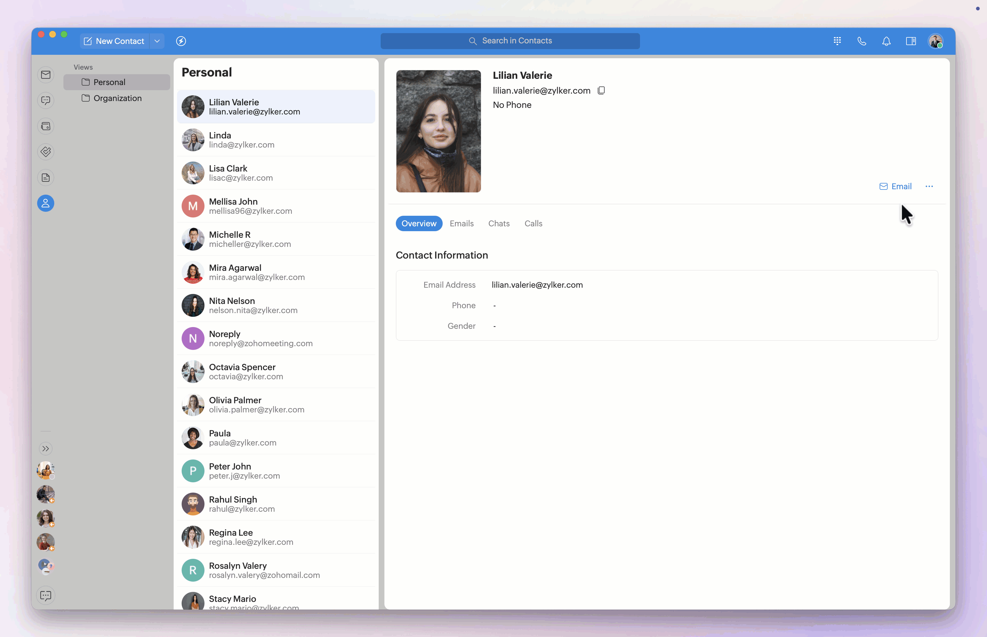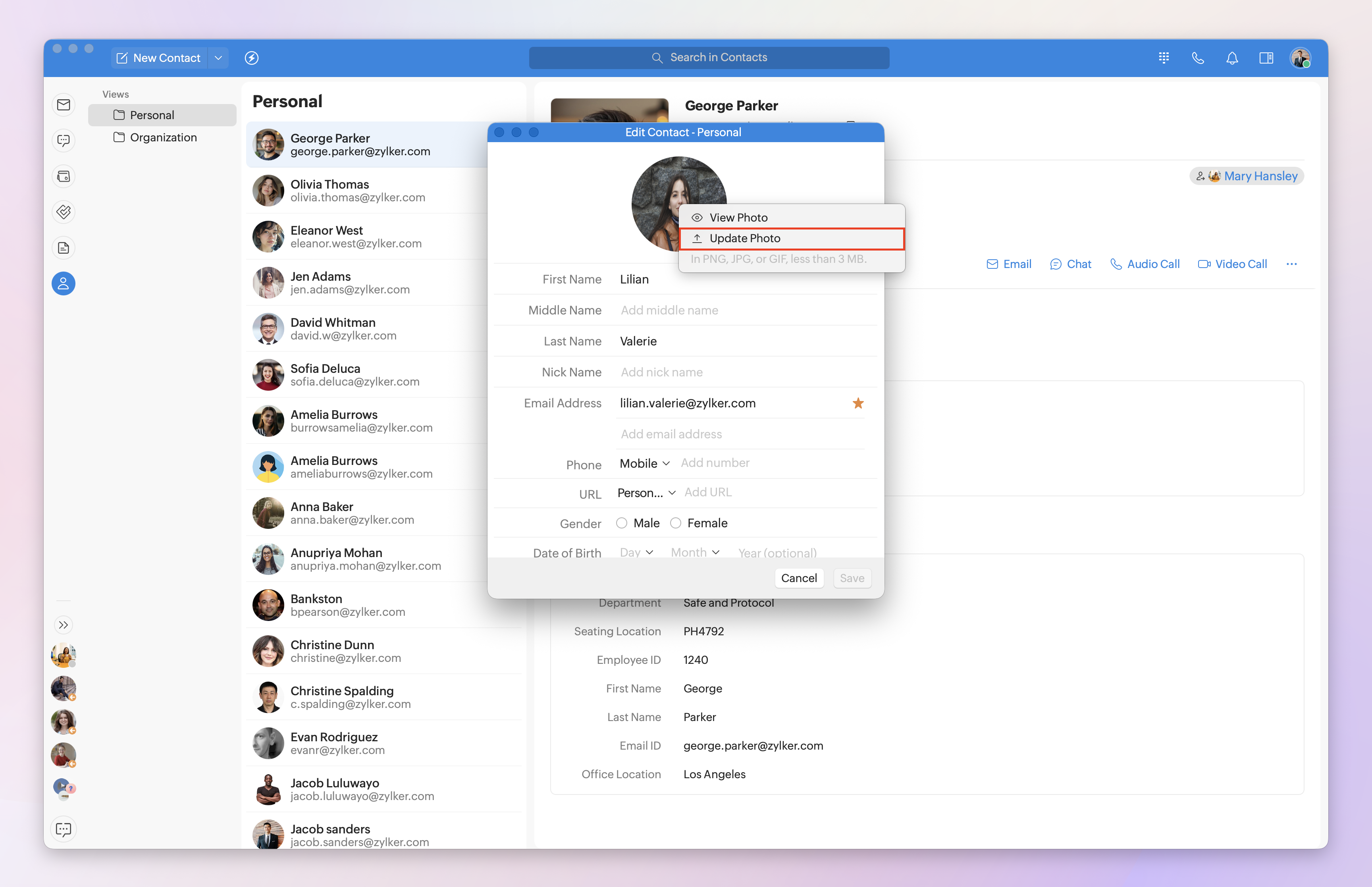 Note: No two contacts can share the same primary email address. To add a contact photo:
