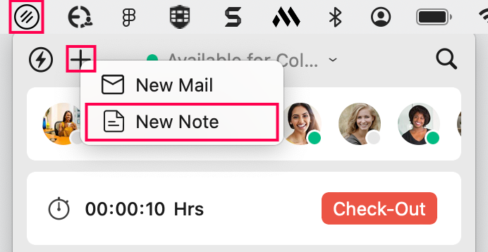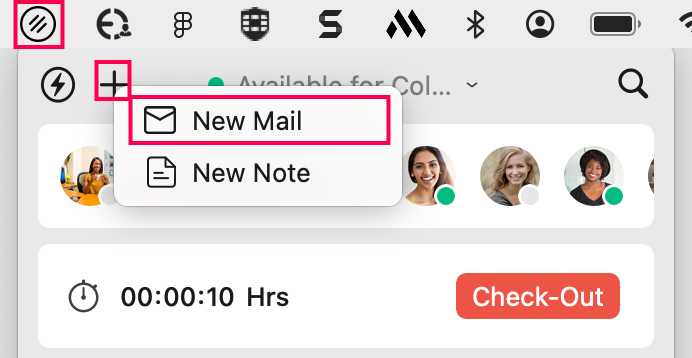 When the Attendance menu bar widget (Zoho People) is enabled, you can use the options it gives to check in and check out, as well as to view the working hour timer.