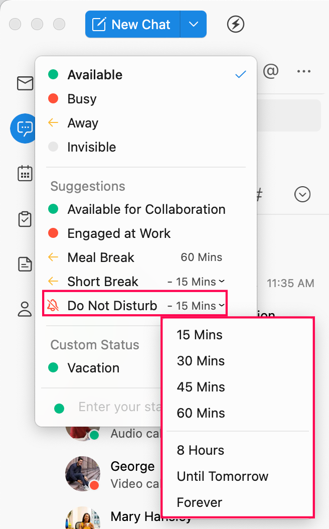 Enabling Do Not Disturb (DND) mode in Trident will mute all the modules' notifications and alert sounds, and change your current Cliq status to "Busy".