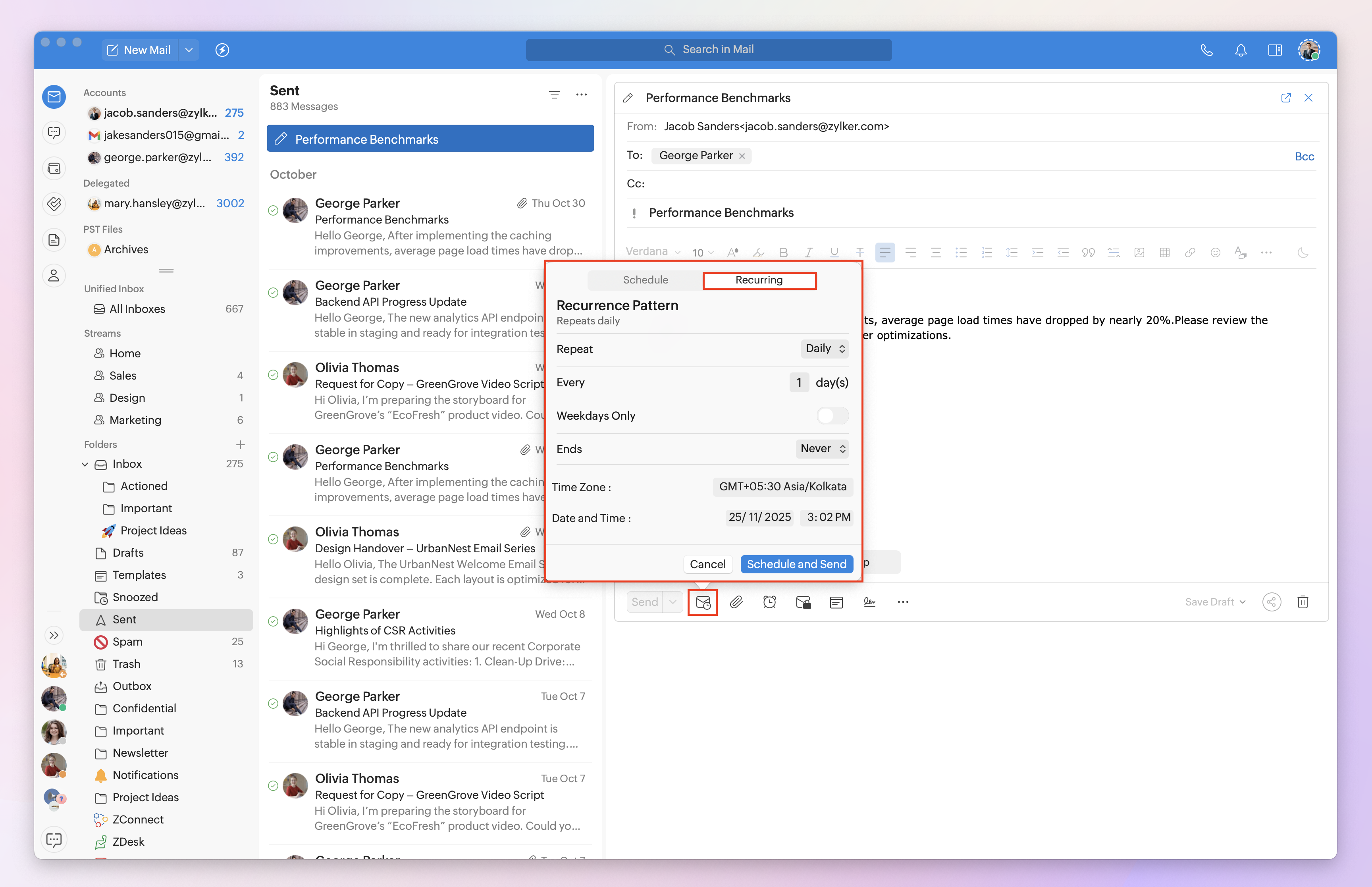 Note: You can edit the recurring email anytime but the recurrence pattern must be set again.