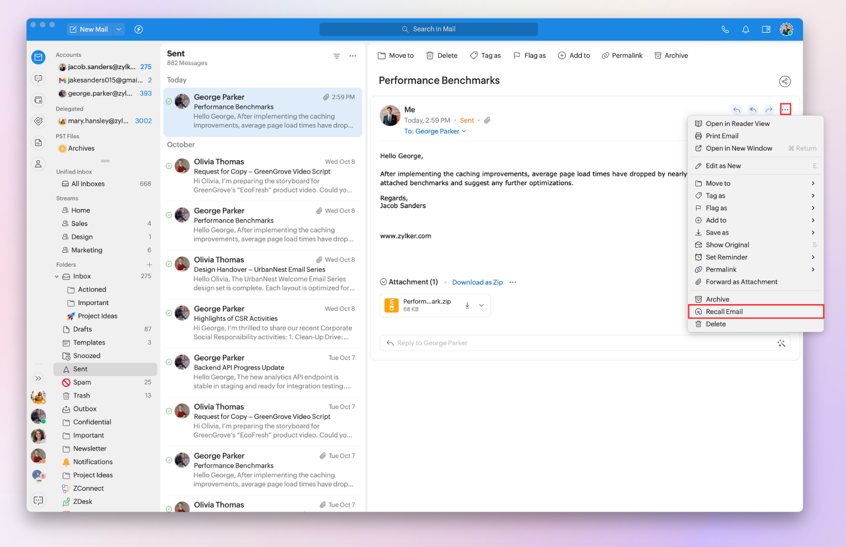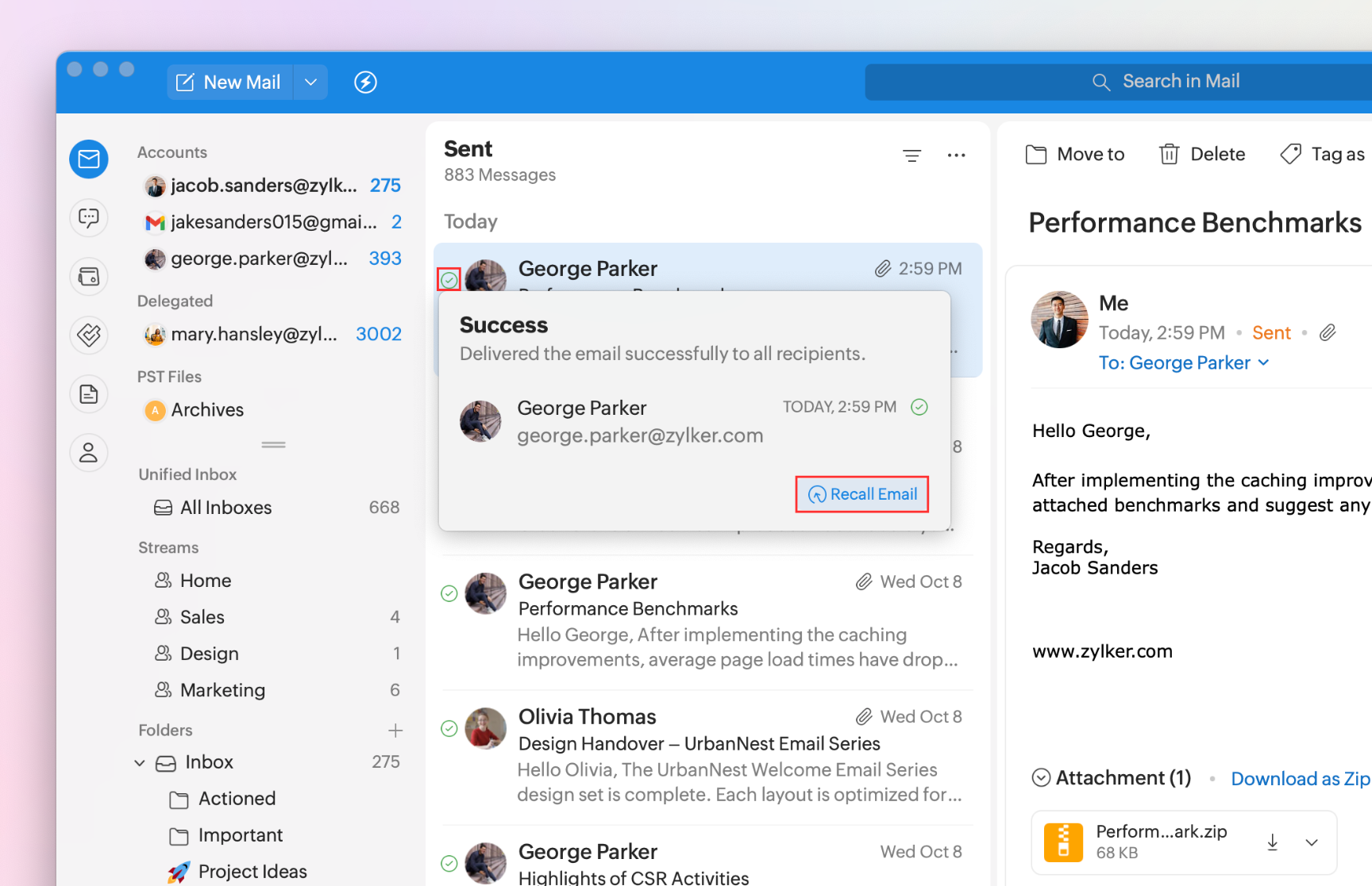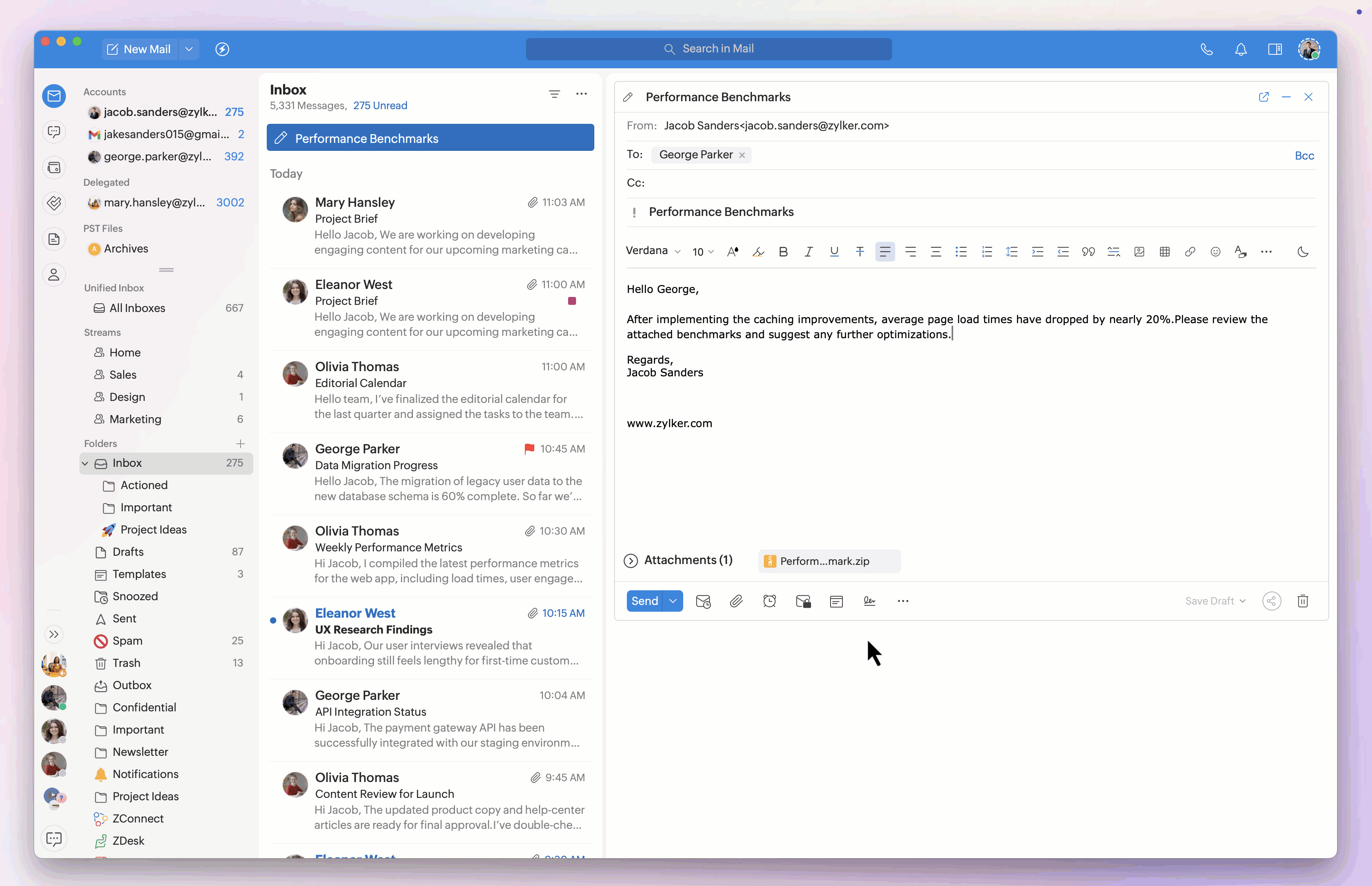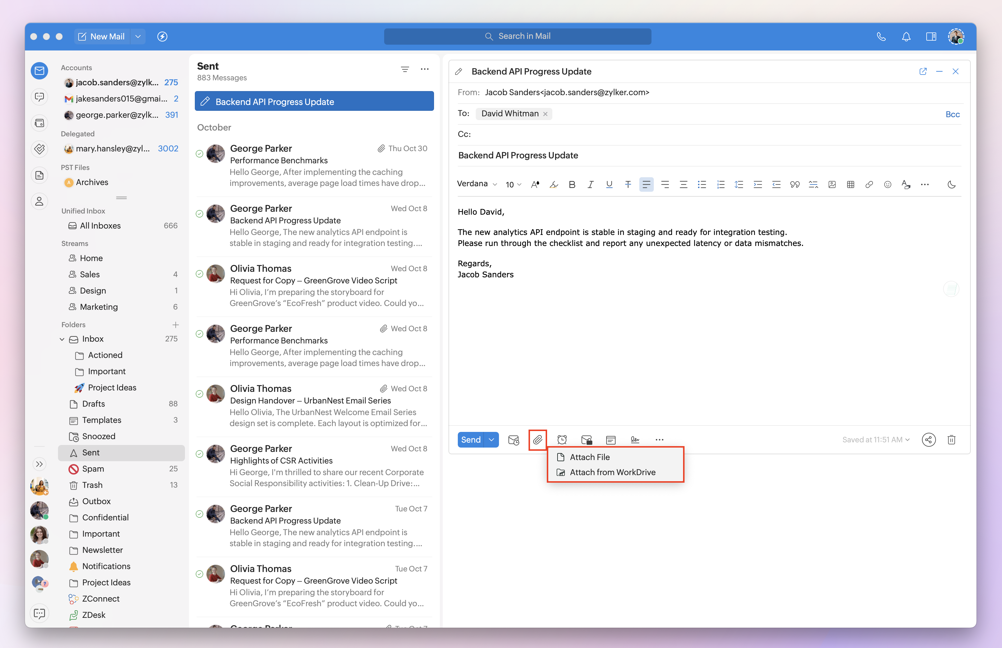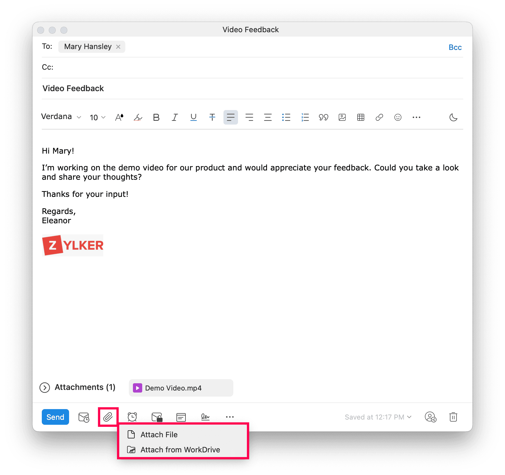 You can add email attachments from your Mac system or Zoho WorkDrive.