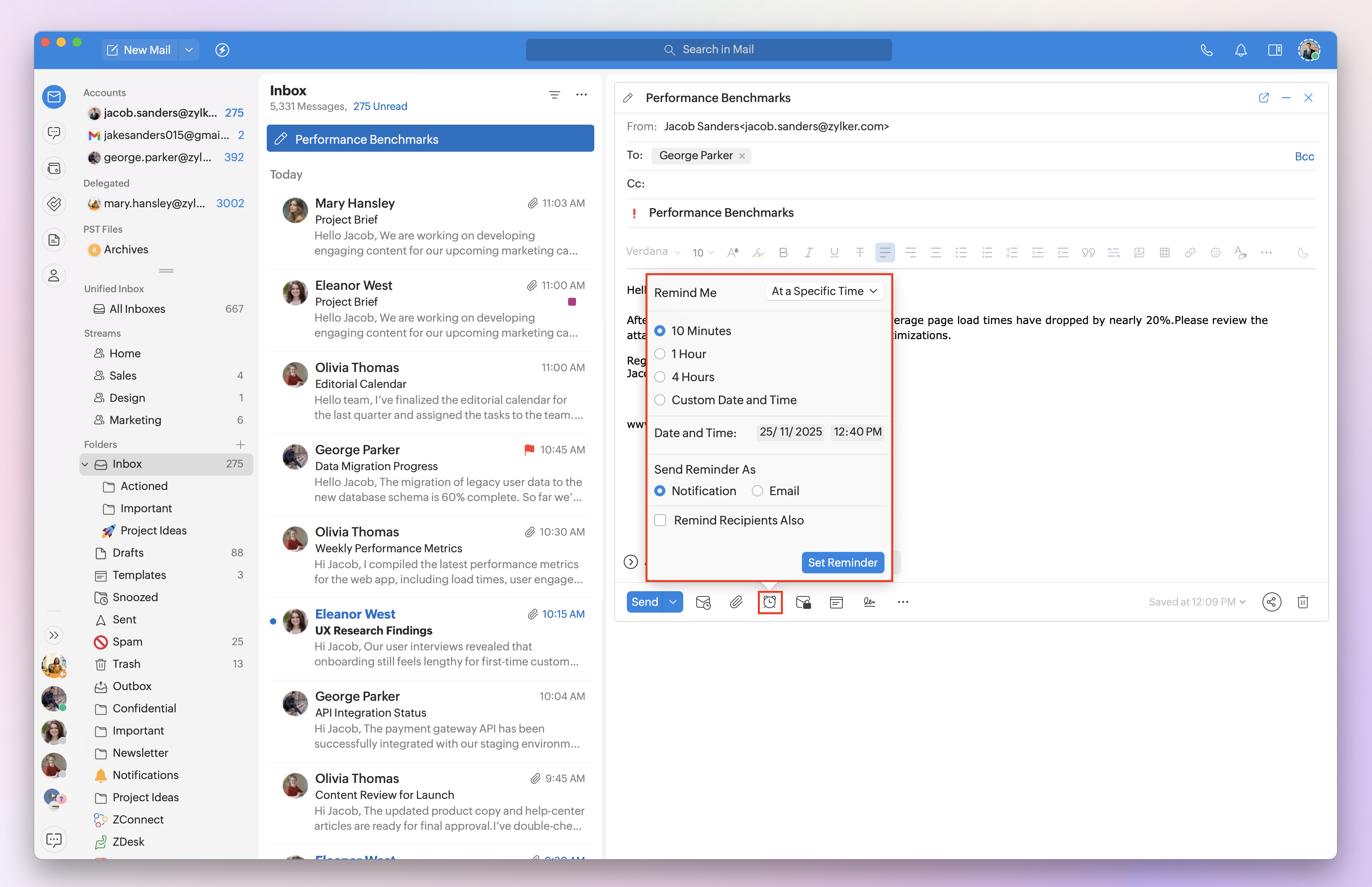 While crafting your email, you can set its priority to High/Medium/Low. This will help the recipient prioritize those emails that need to be attended to immediately. To set email priority: