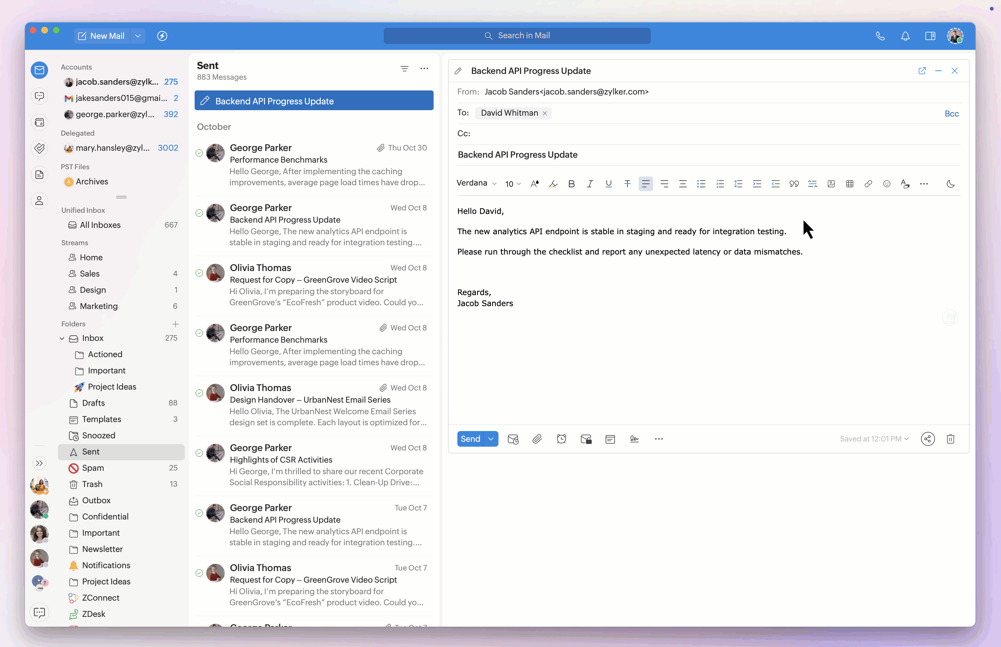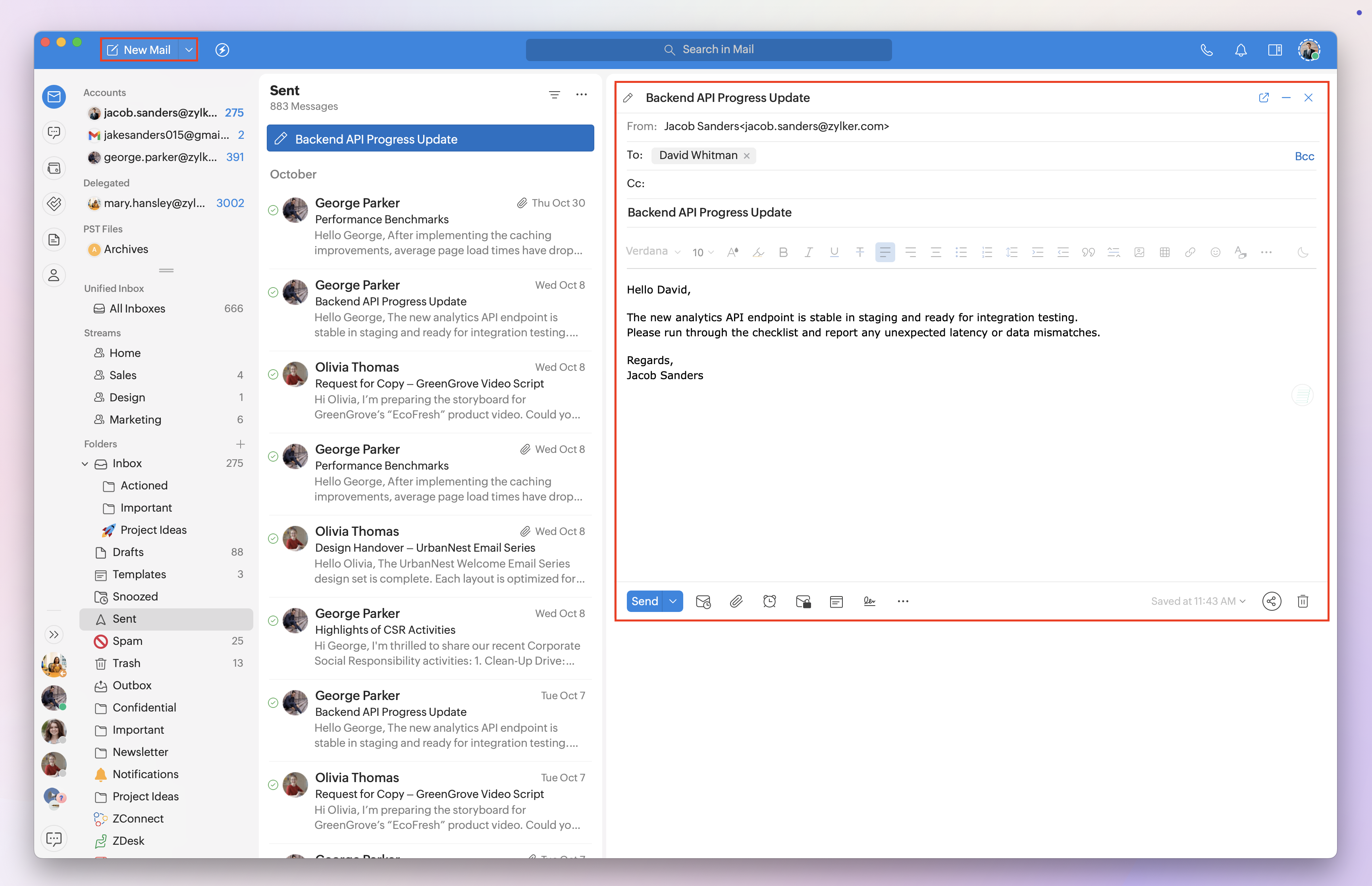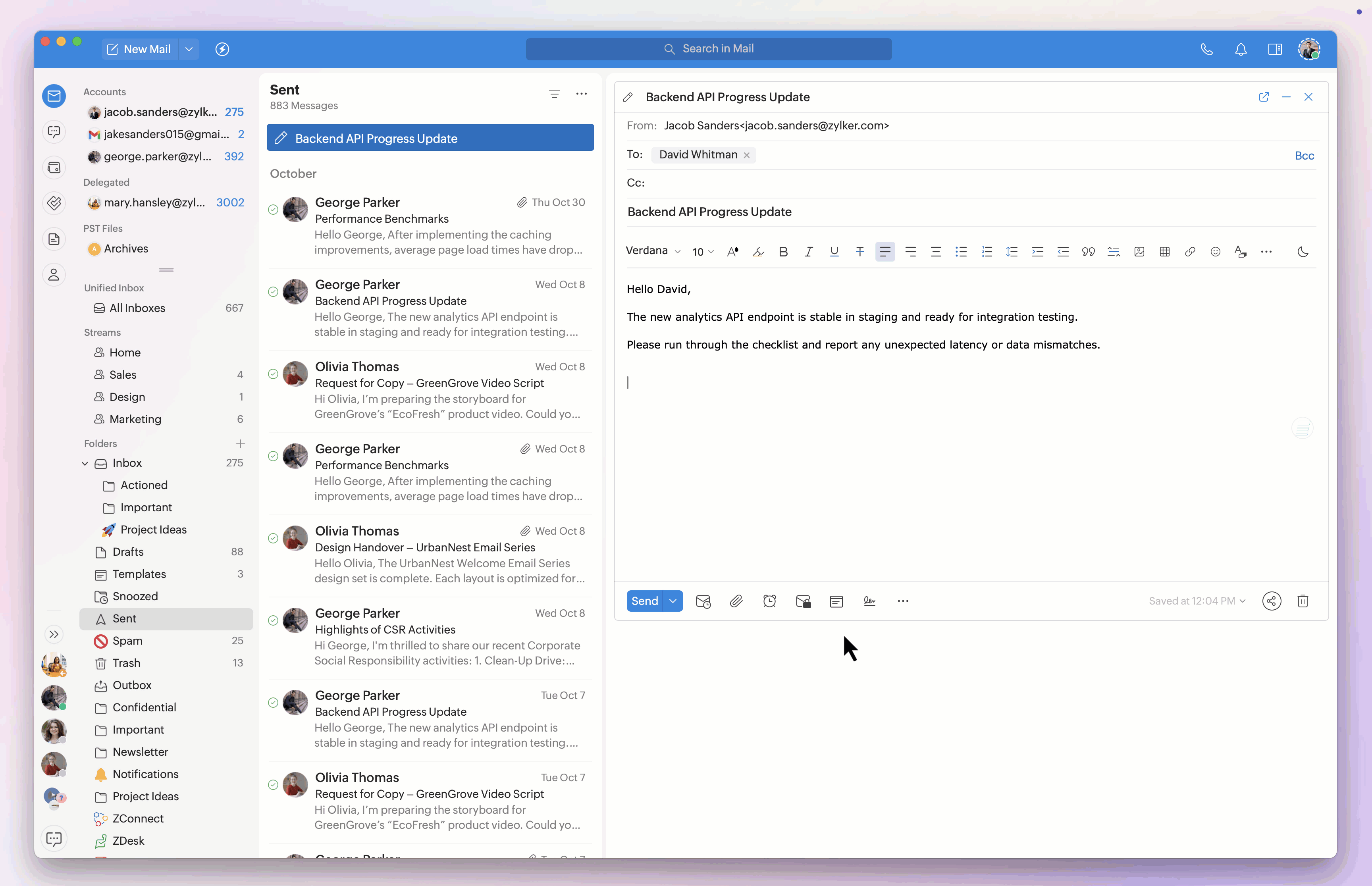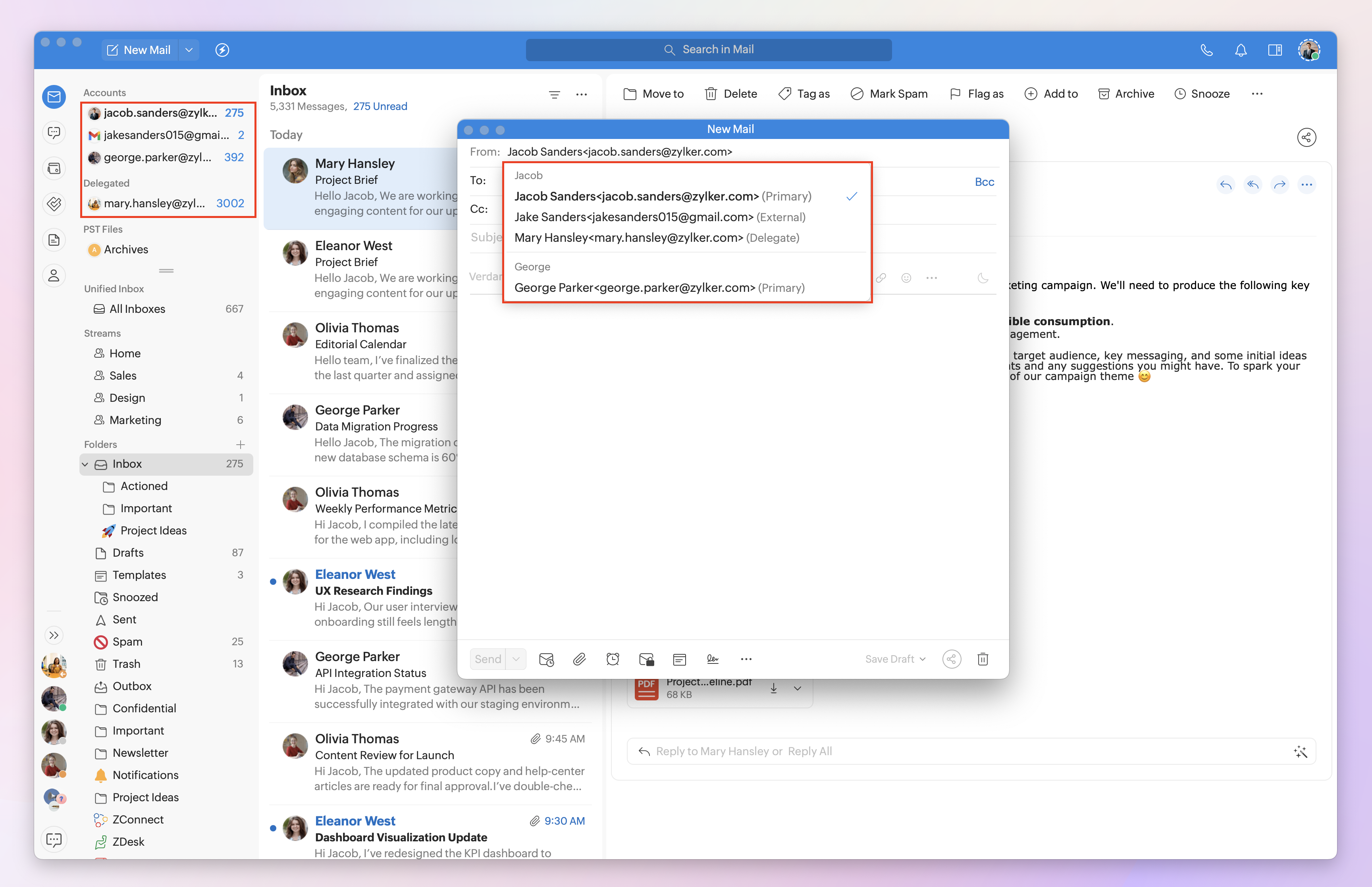 When you’re logged into multiple email accounts, you can switch the “From” address while replying to or composing a new email. This allows you to send emails from the appropriate account without logging out and back in.