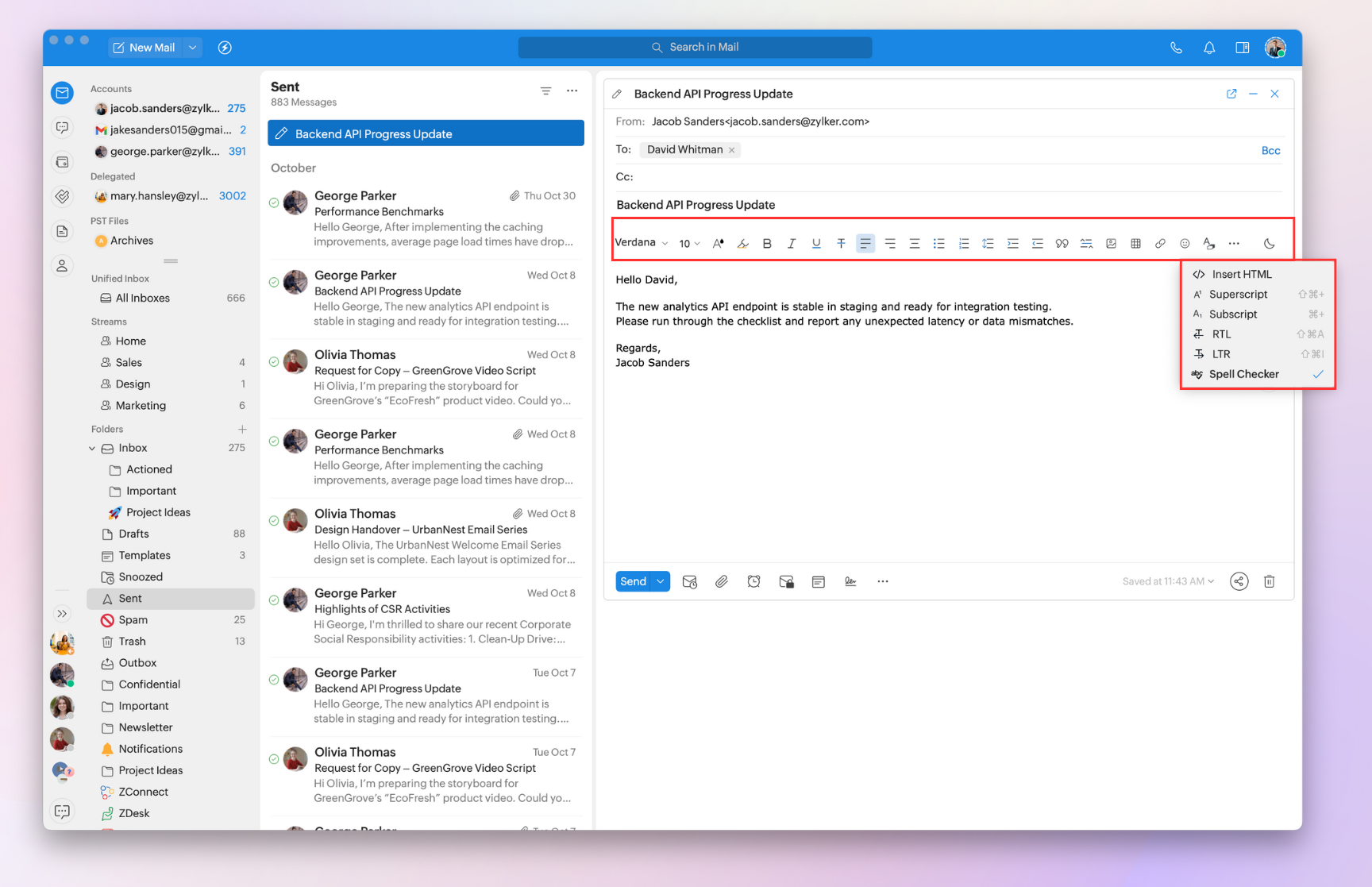 Note: You can also copy-paste images to the Mail Composer.You can create multiple email signatures and customize them according to your email address or email alias. In Trident, the default signature will appear in the editor whenever the Mail Composer is invoked. To switch between other signatures:
