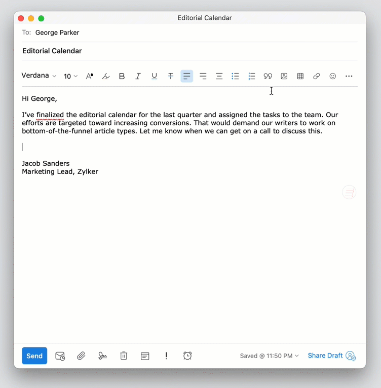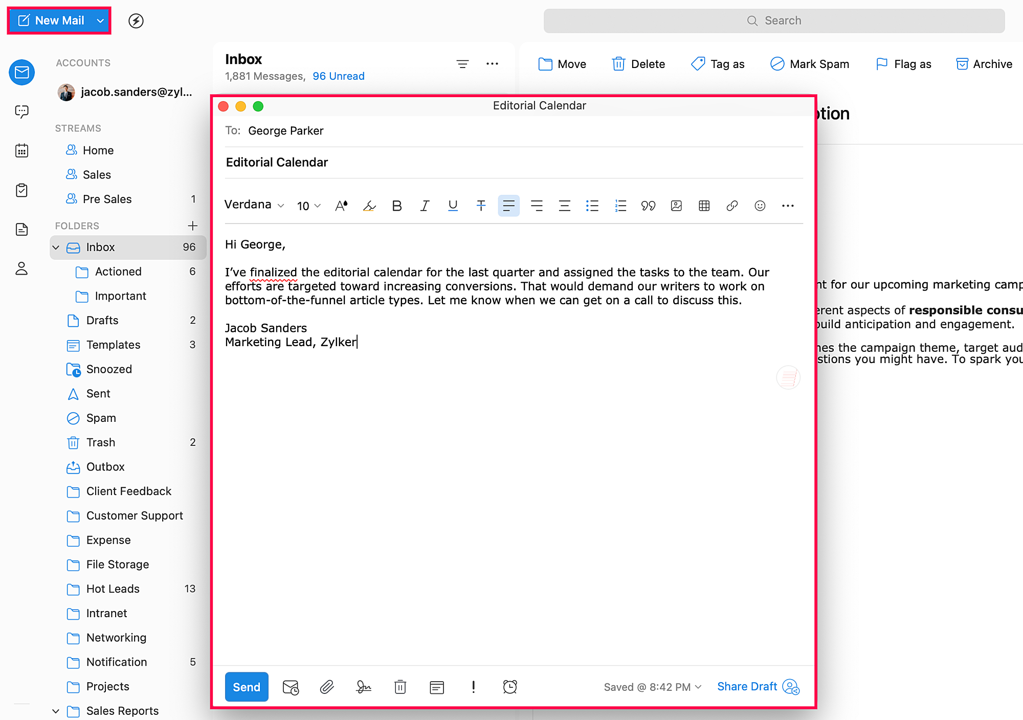 Open the Mail Composer by clicking New Mail or replying to an existing email.