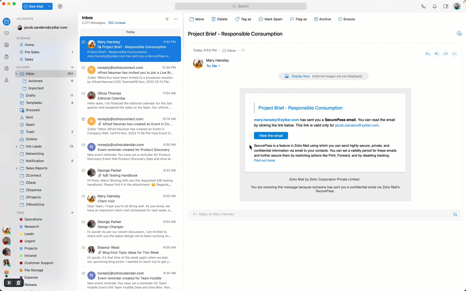 With Smart Flow, you can also drag and drop files from your Cliq chats or WorkDrive widget to add them as attachments to the Mail Composer.
