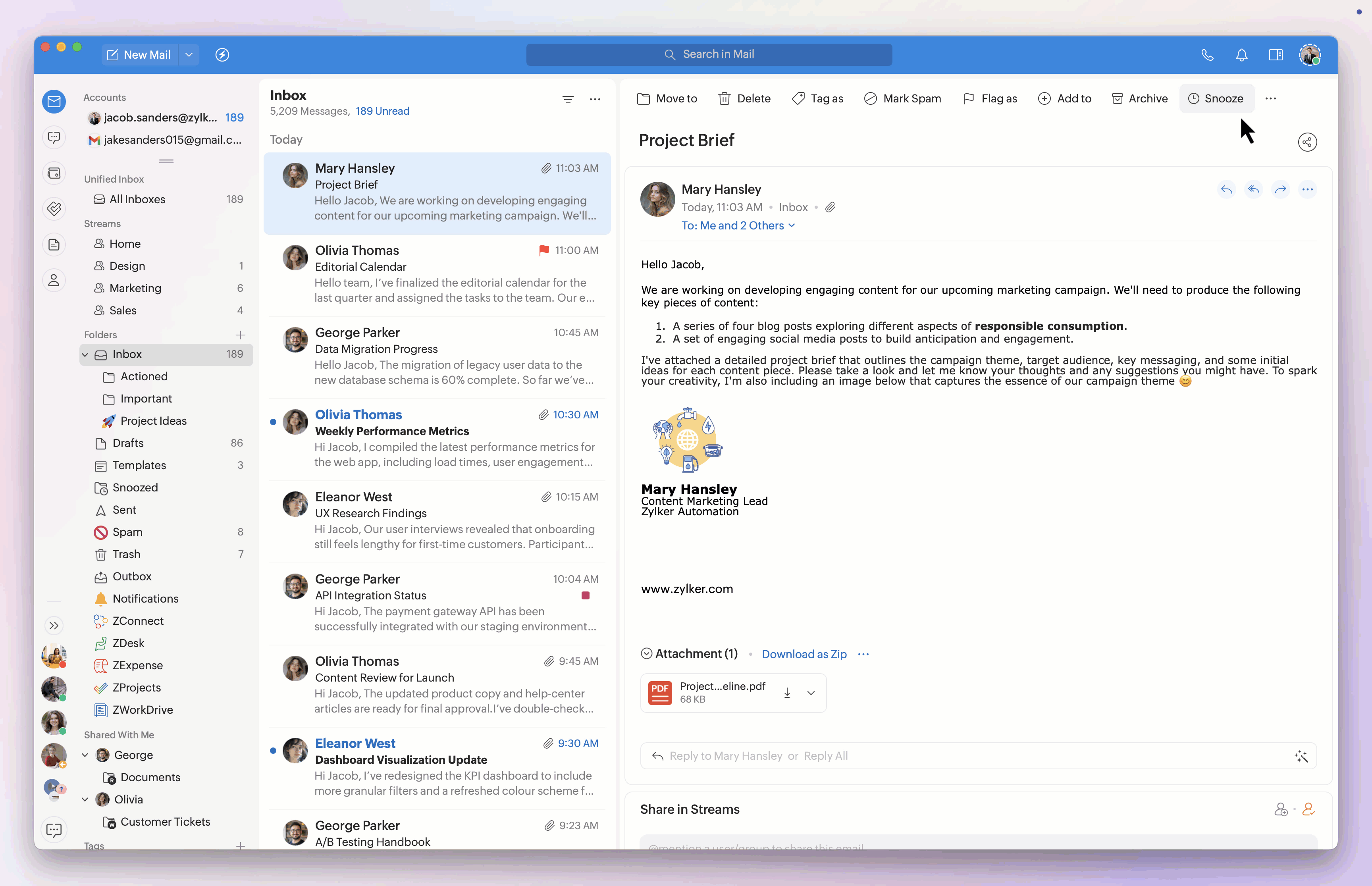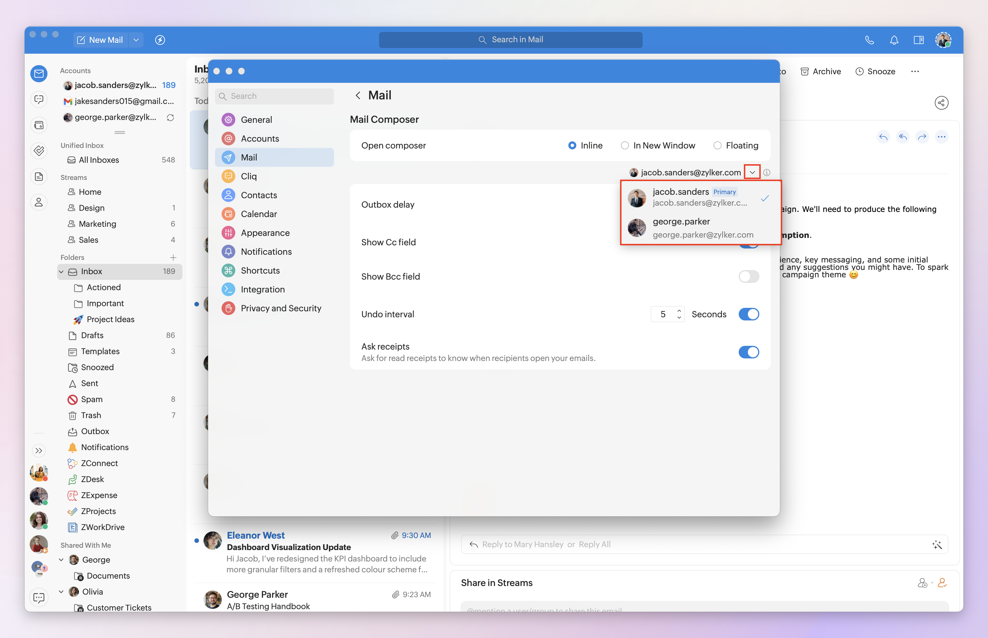 To configure the undo interval for your secondary Zoho Mail accounts: