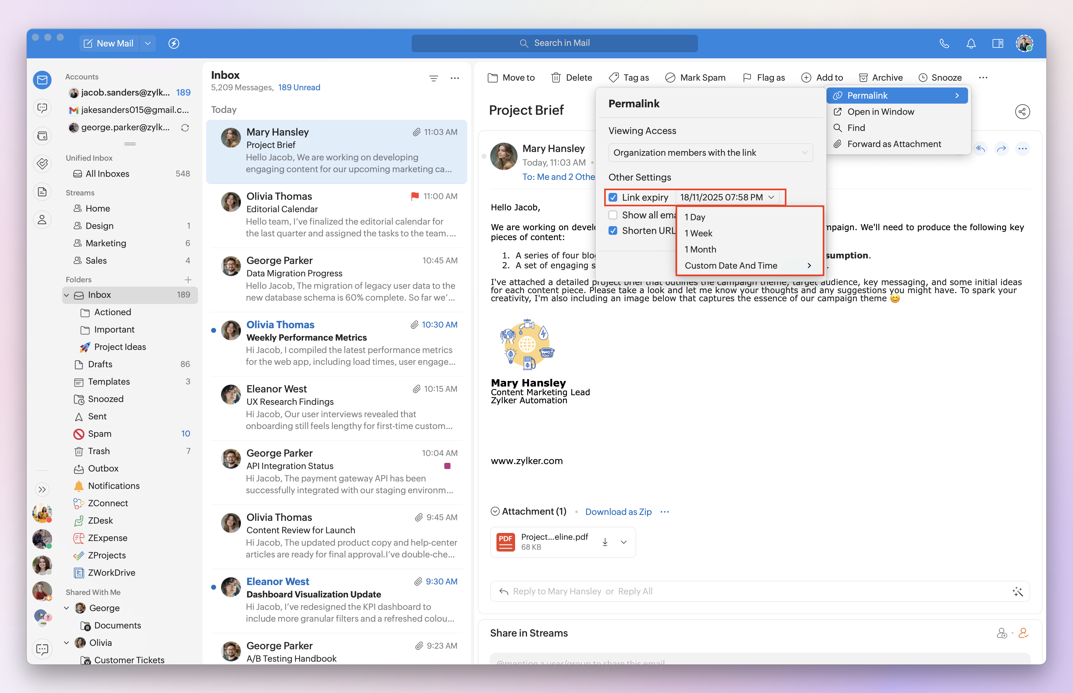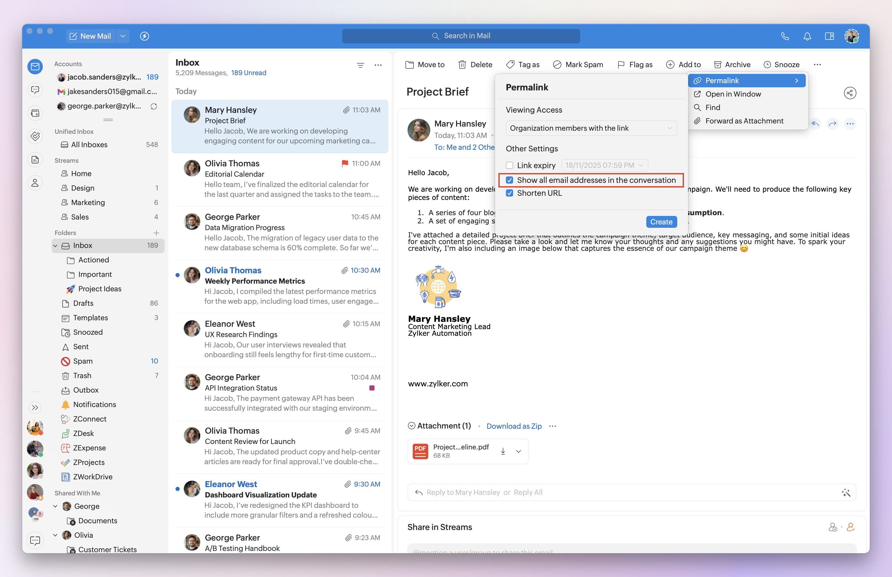 Under Other Settings, you have the option to set the permalink expiry date and time, show or hide all email addresses in the conversation, and shorten the URL.