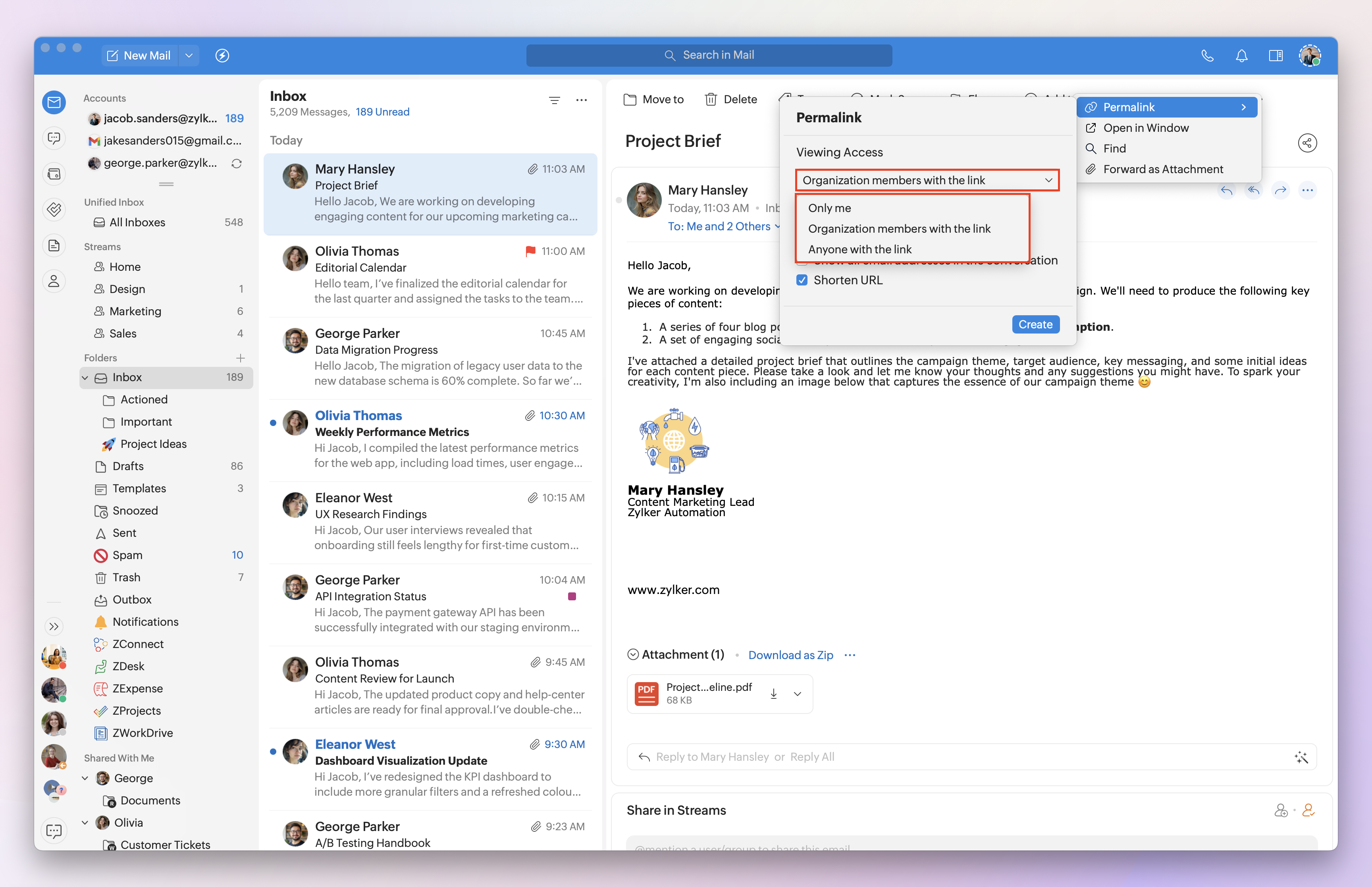 Organization members with the link: All the members in your organization can view the email through the shared permalink.