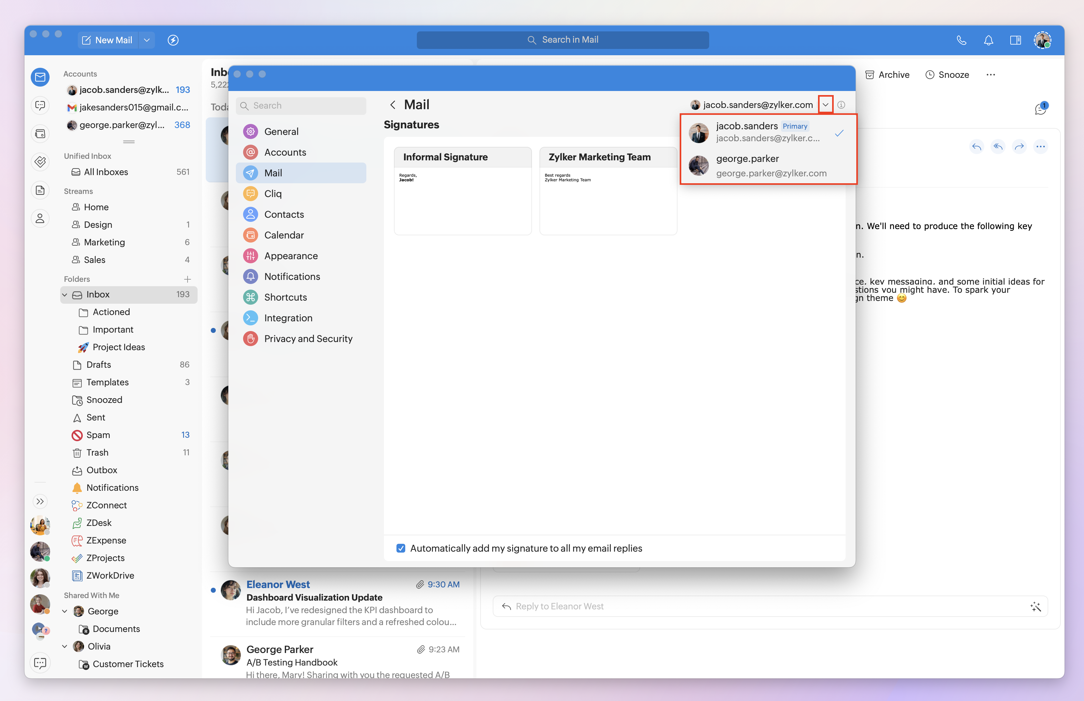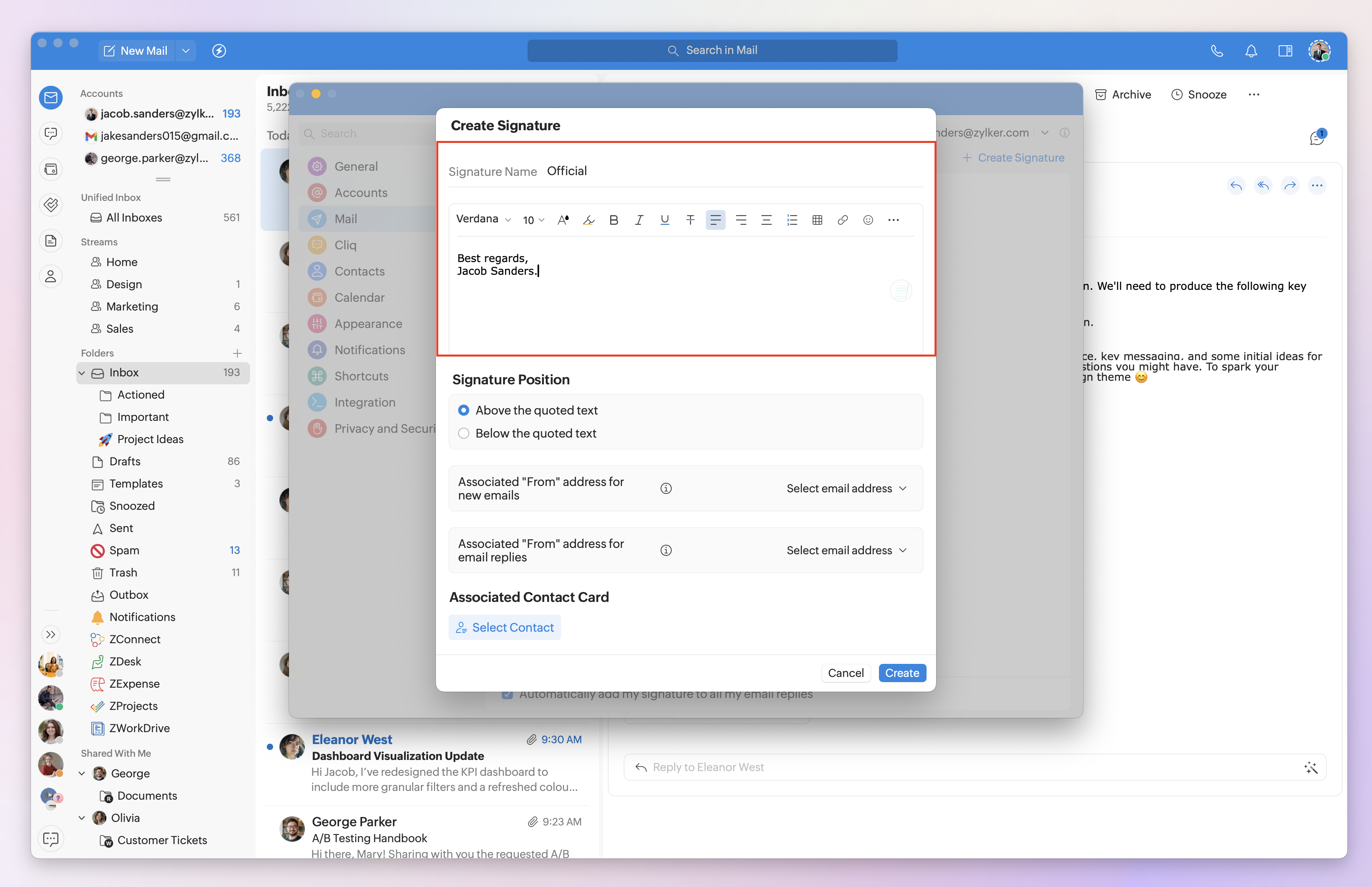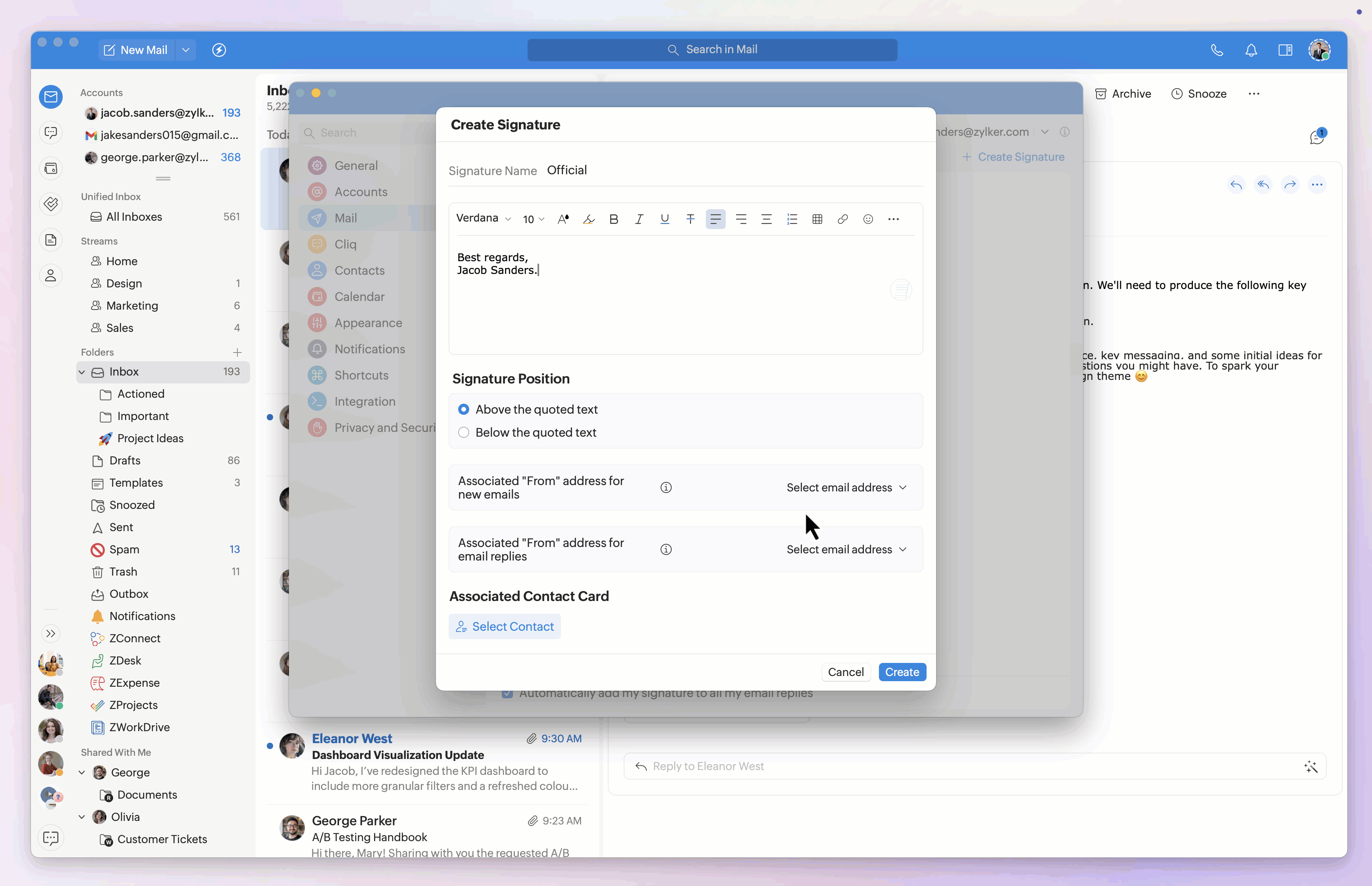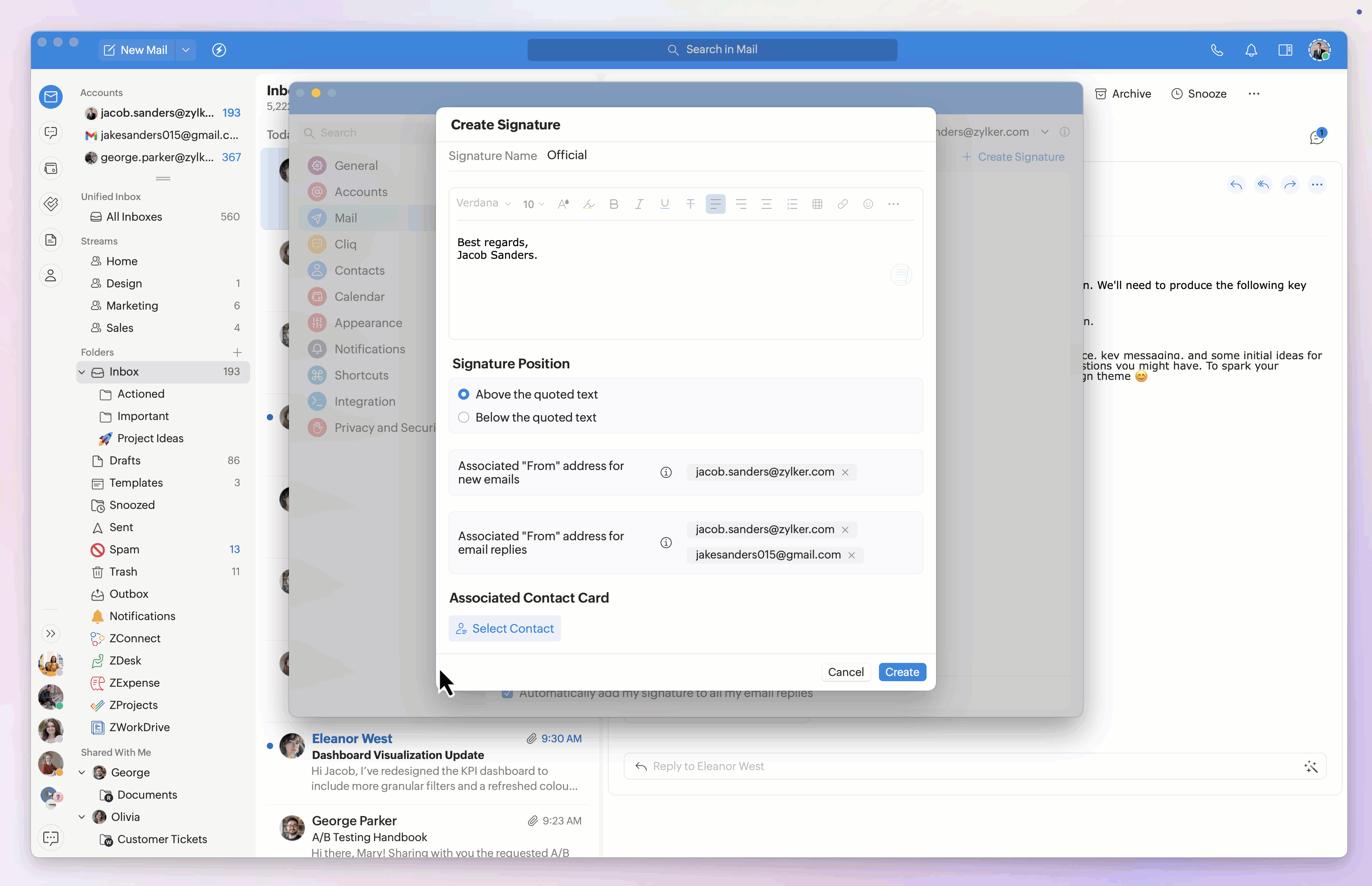 Refer to this section to learn how to create signatures for external email accounts configured via POP/IMAP.