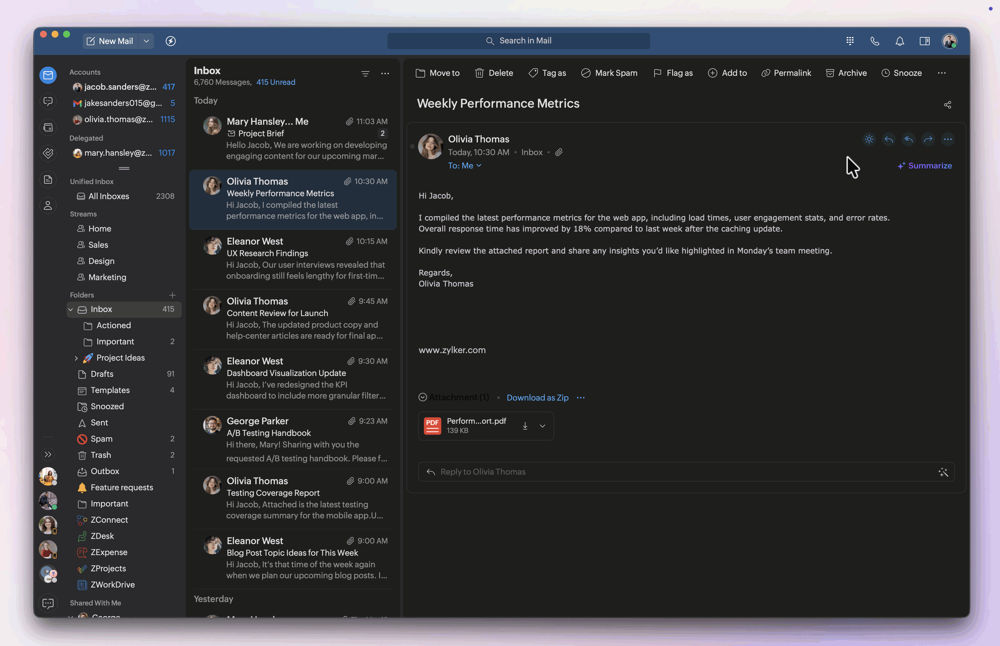 Unread email view: Display unread emails with Rich (vivid highlights) or Lite (subtle highlights) formatting.