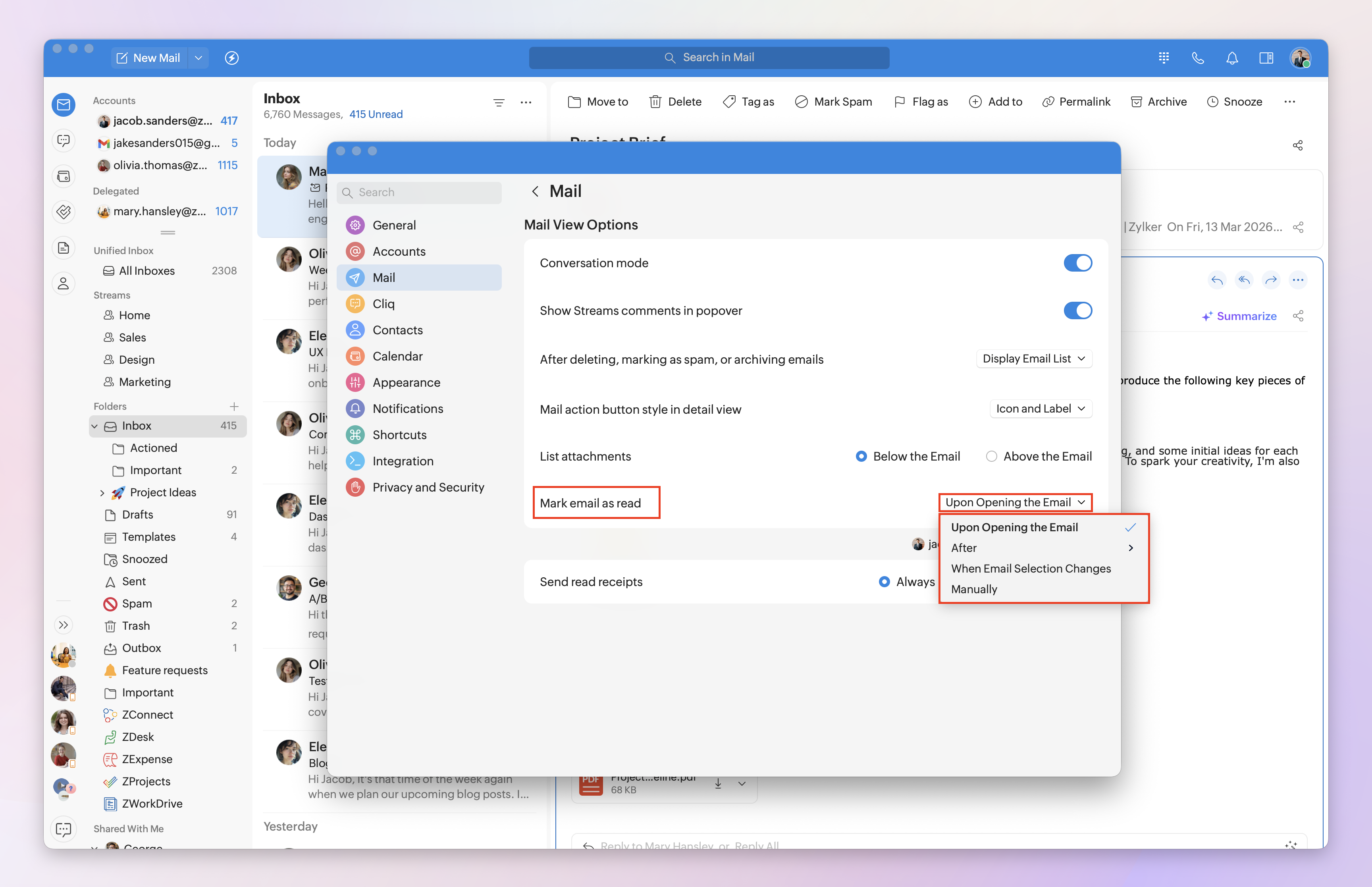 - After x Seconds: After you view the email for the chosen duration, it will be marked as read.