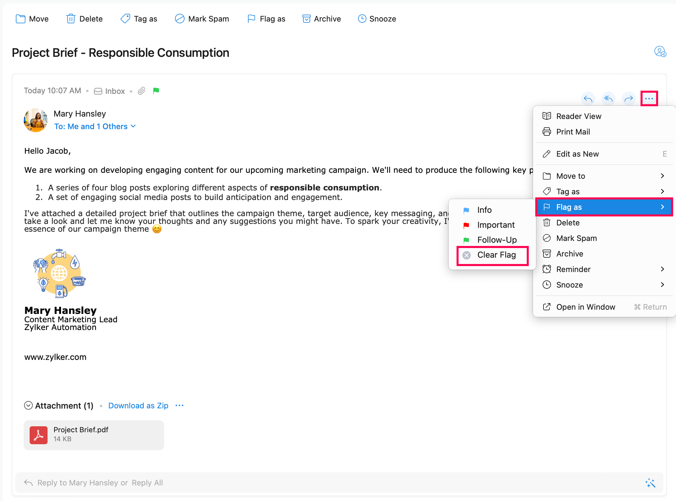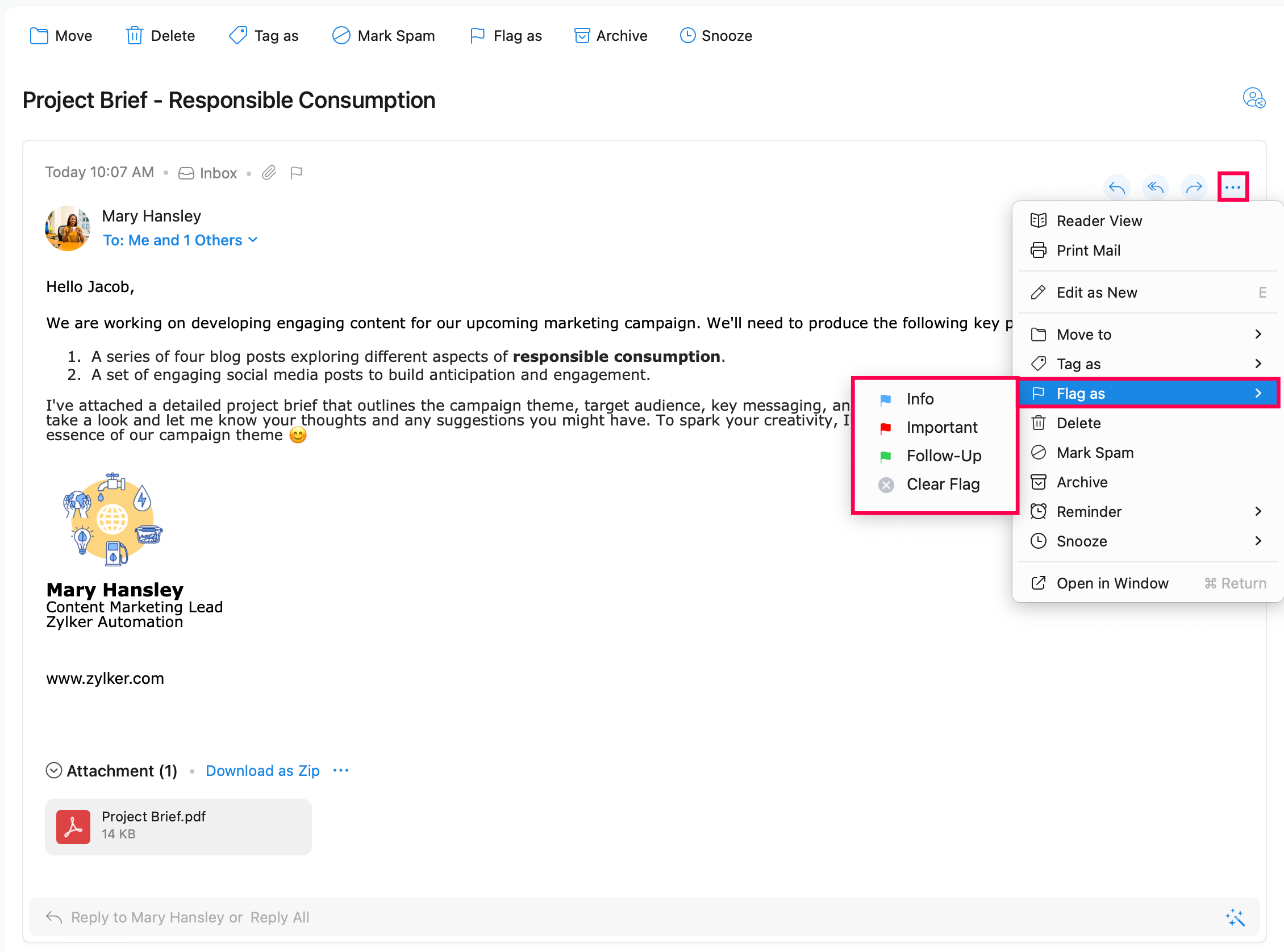 icon at the top-right corner of the email detail view. - Select Flag as from the menu list.