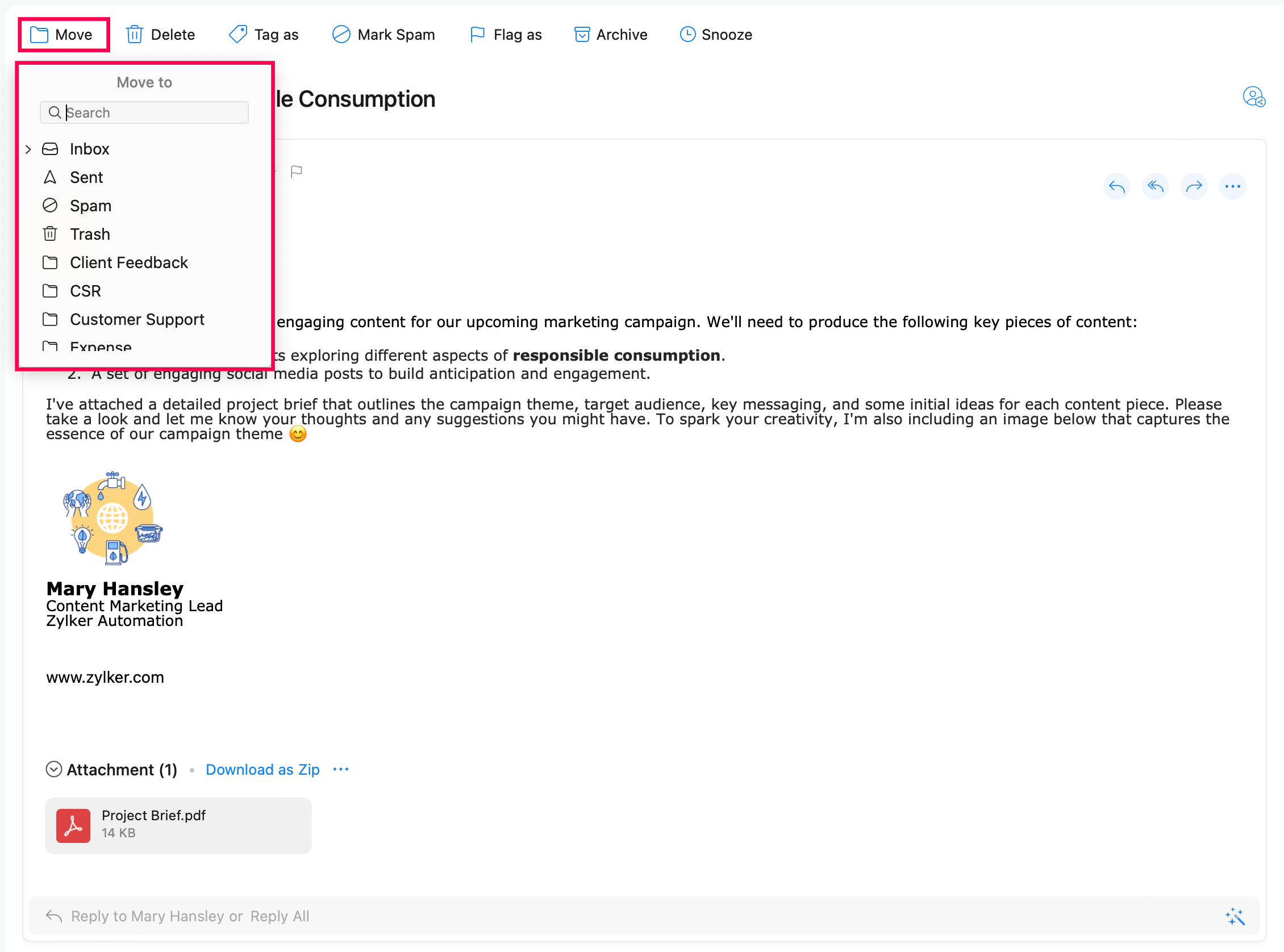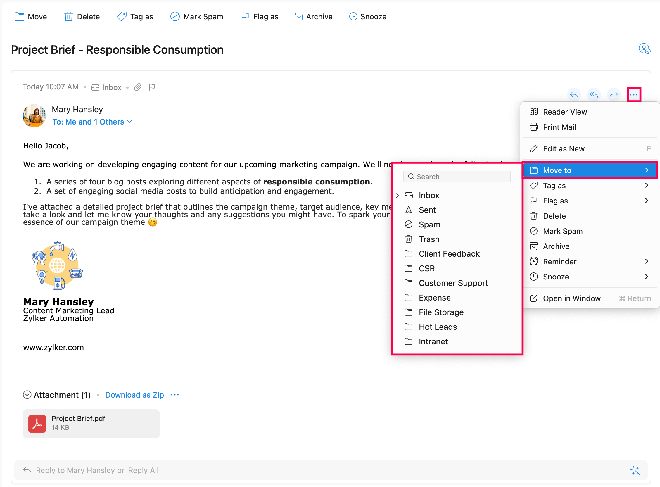 icon at the top-right corner of the email detail view. - Select Move to from the menu list.