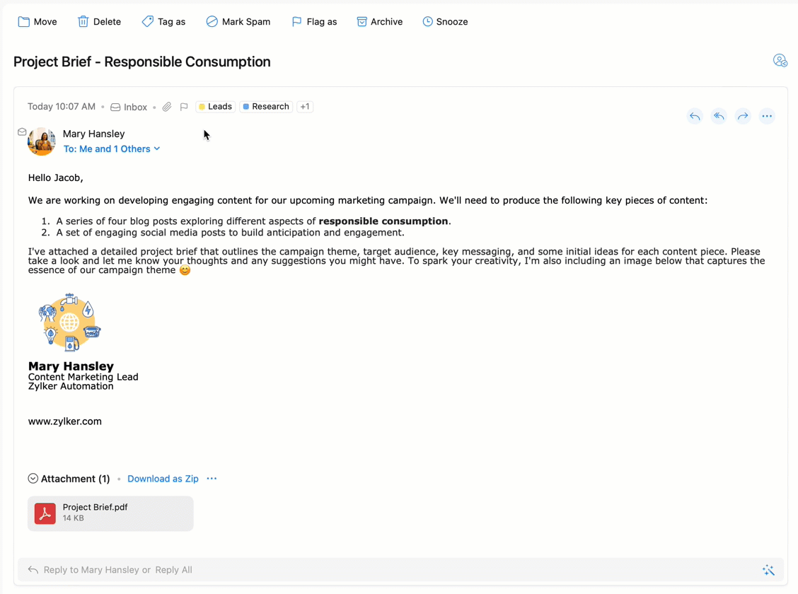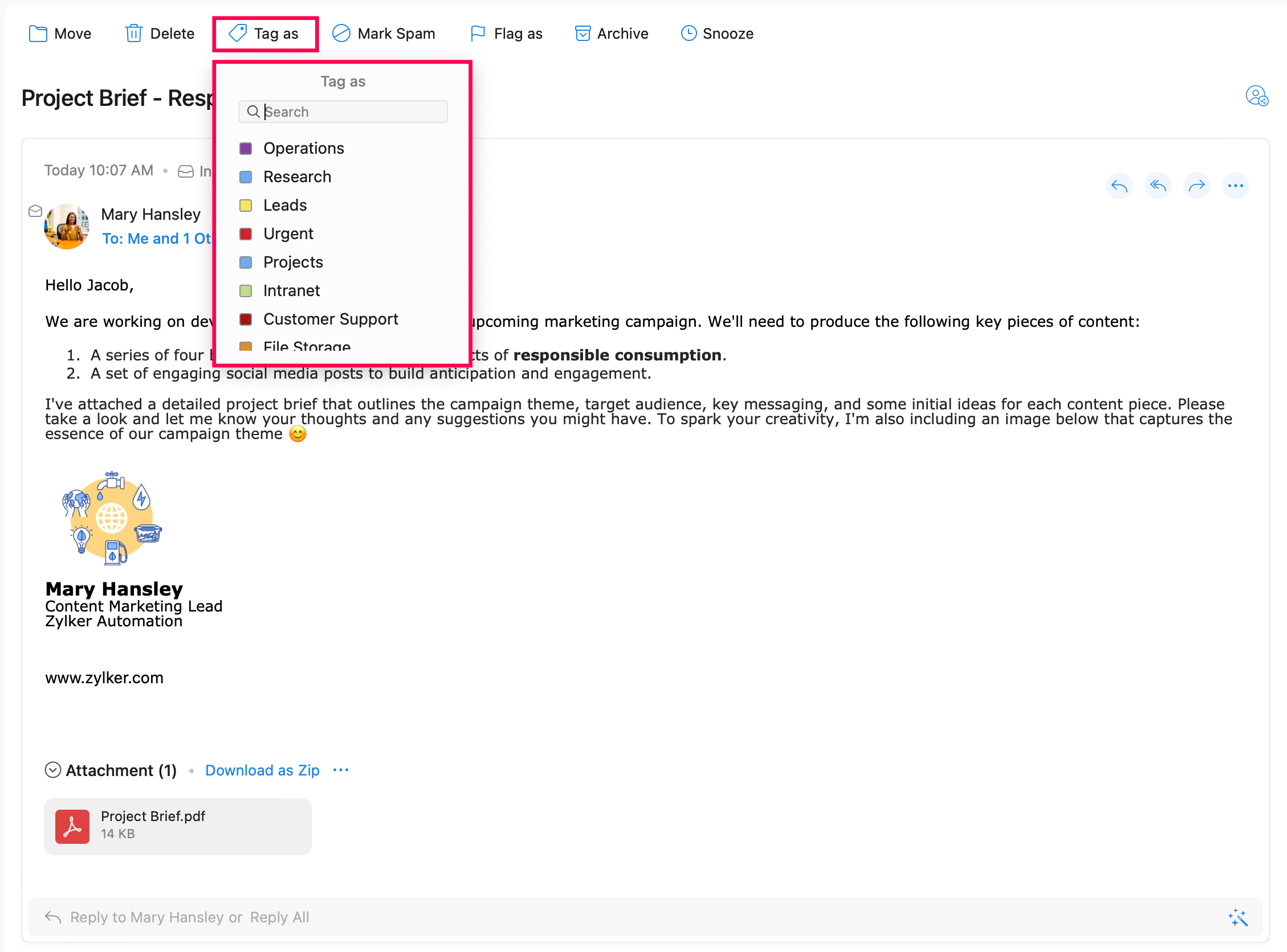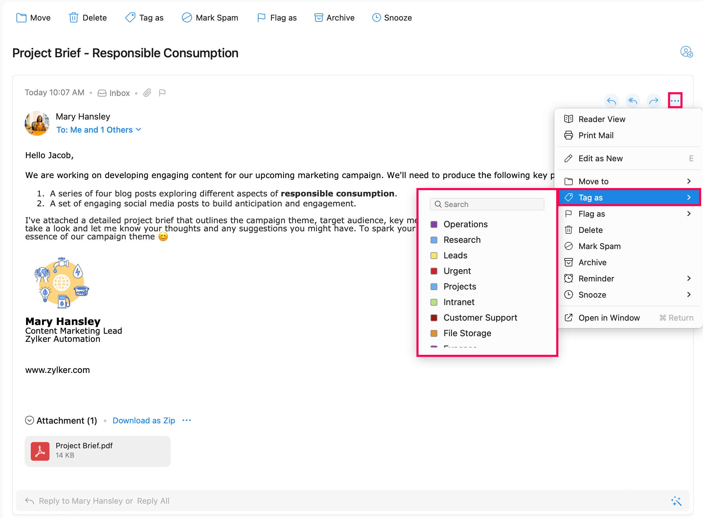 icon at the top-right corner of the email detail view. - Select Tag as from the menu list.