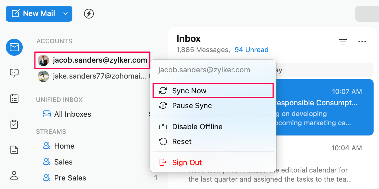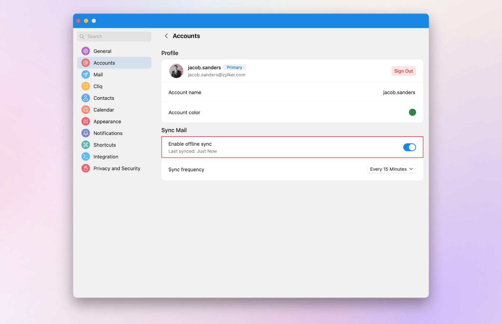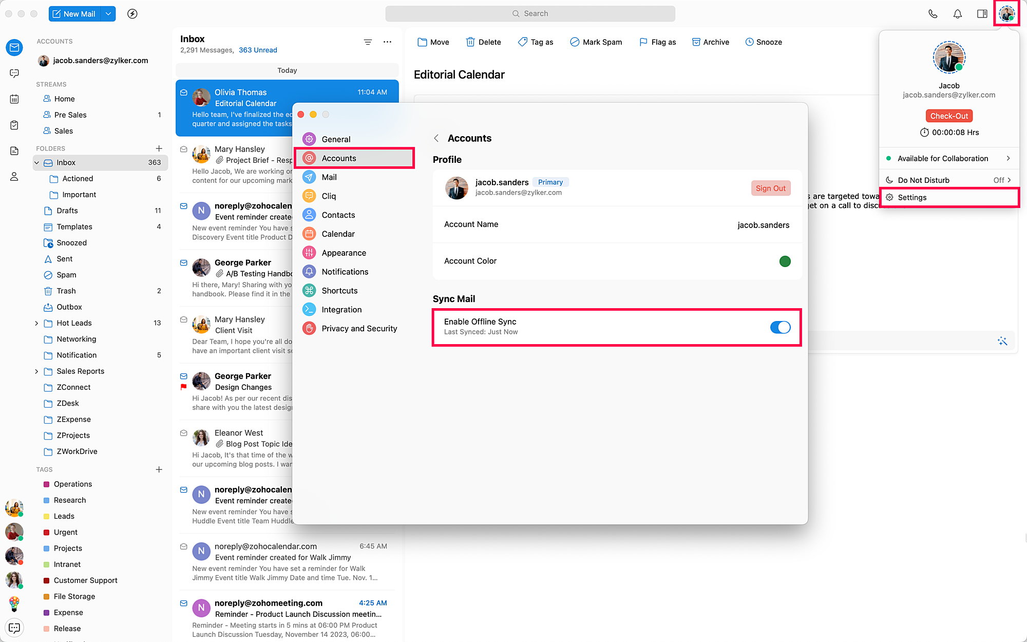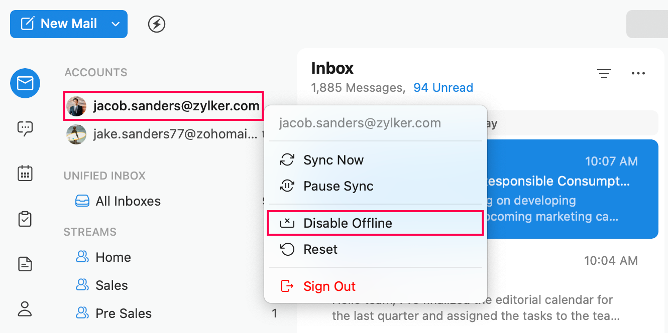 You can also click open the Mail account and toggle off the Enable Offline Mail option under the Sync Mail section. Toggle the option on to enable offline sync.