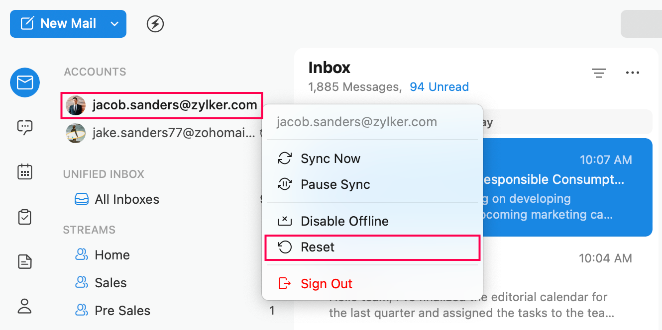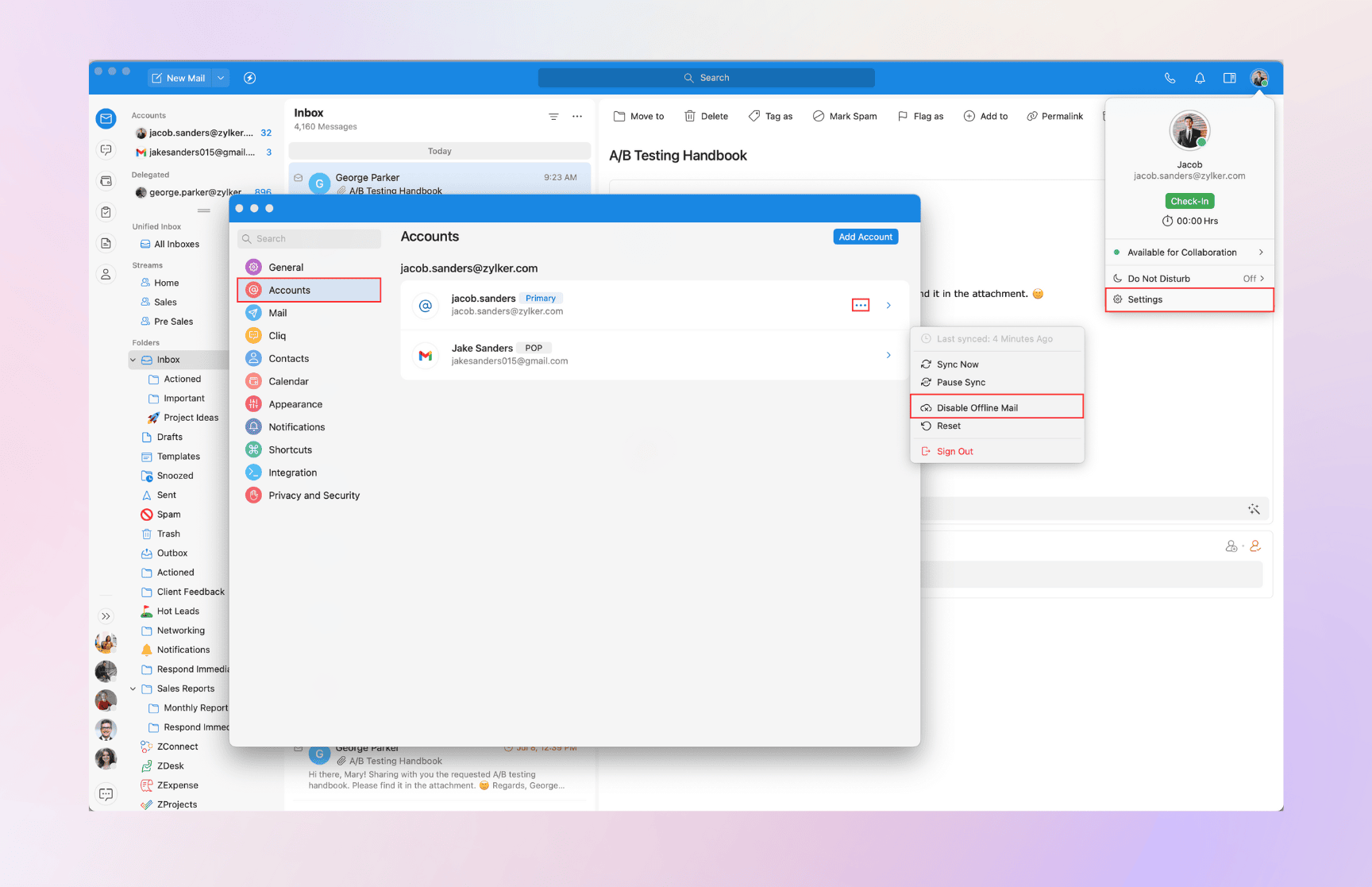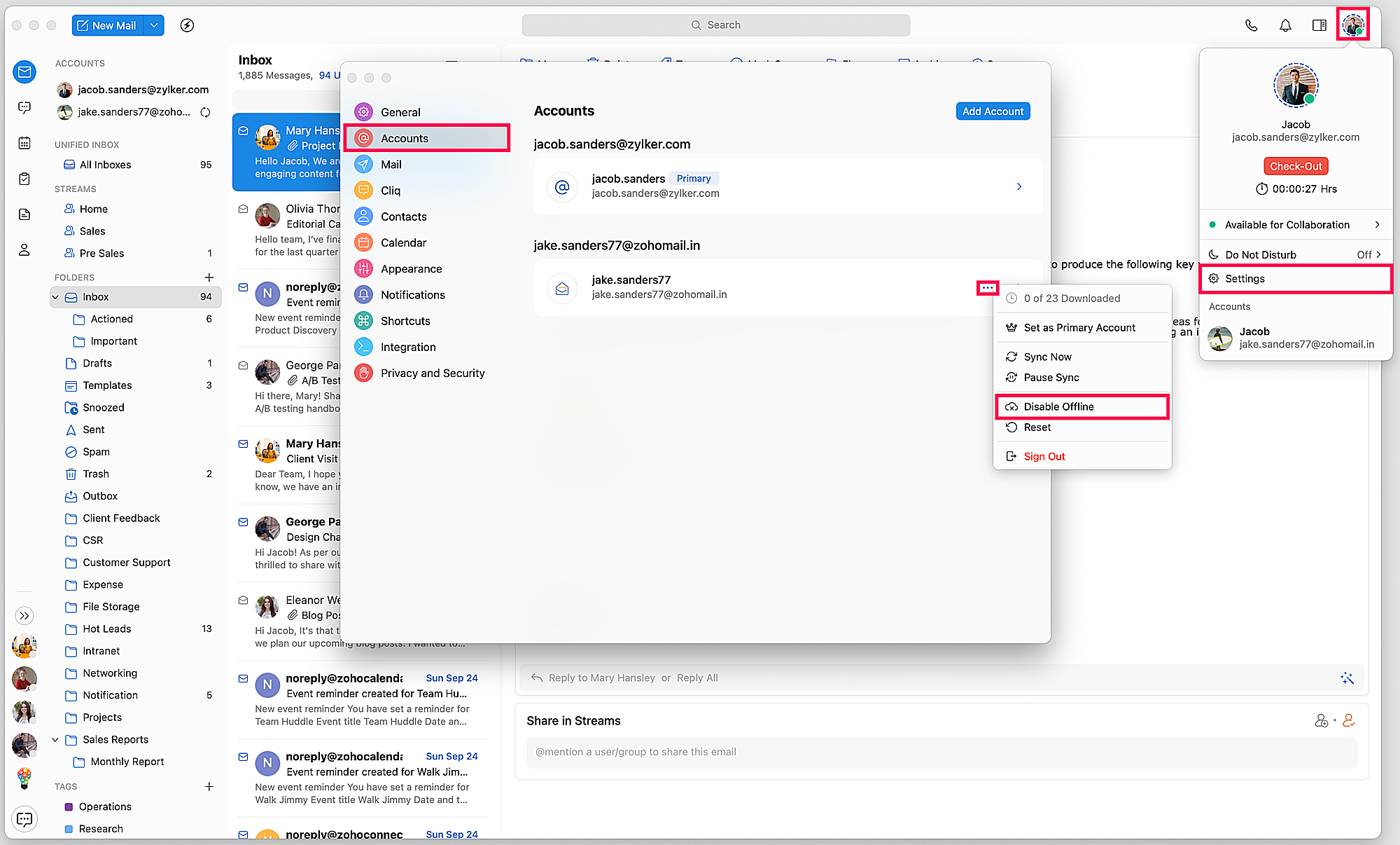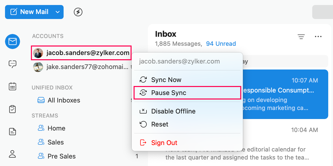 You can also click open the Mail account and toggle off the Enable Offline Mail option under the Sync Mail section. Toggle the option on to enable offline sync.