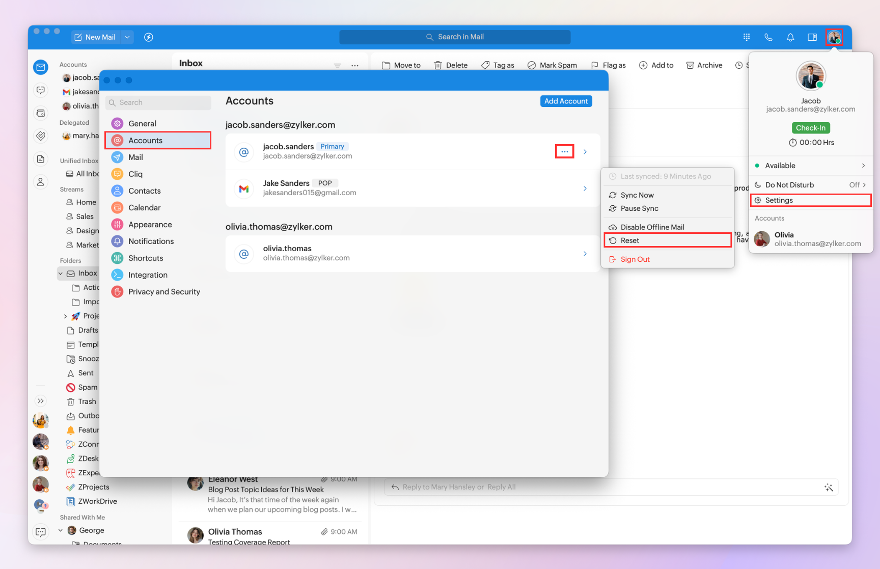 To reset your Mail accounts: