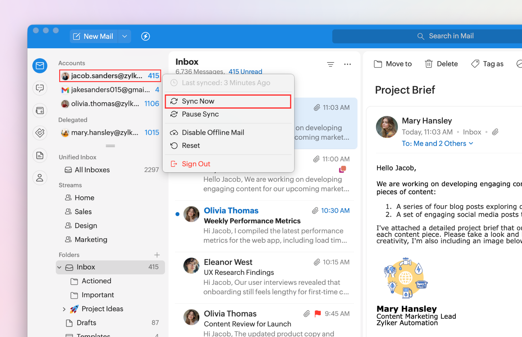 To sync your Mail accounts: