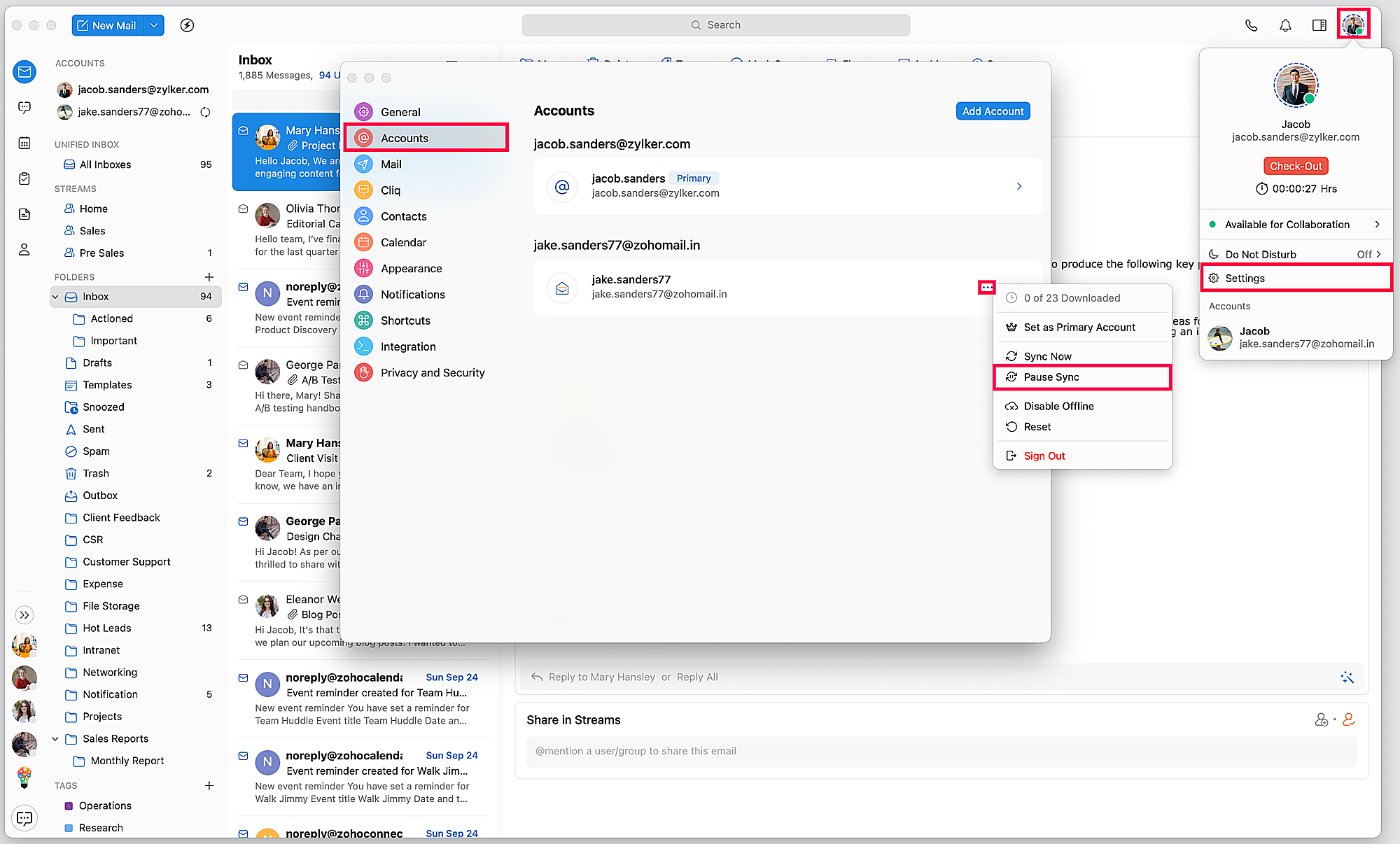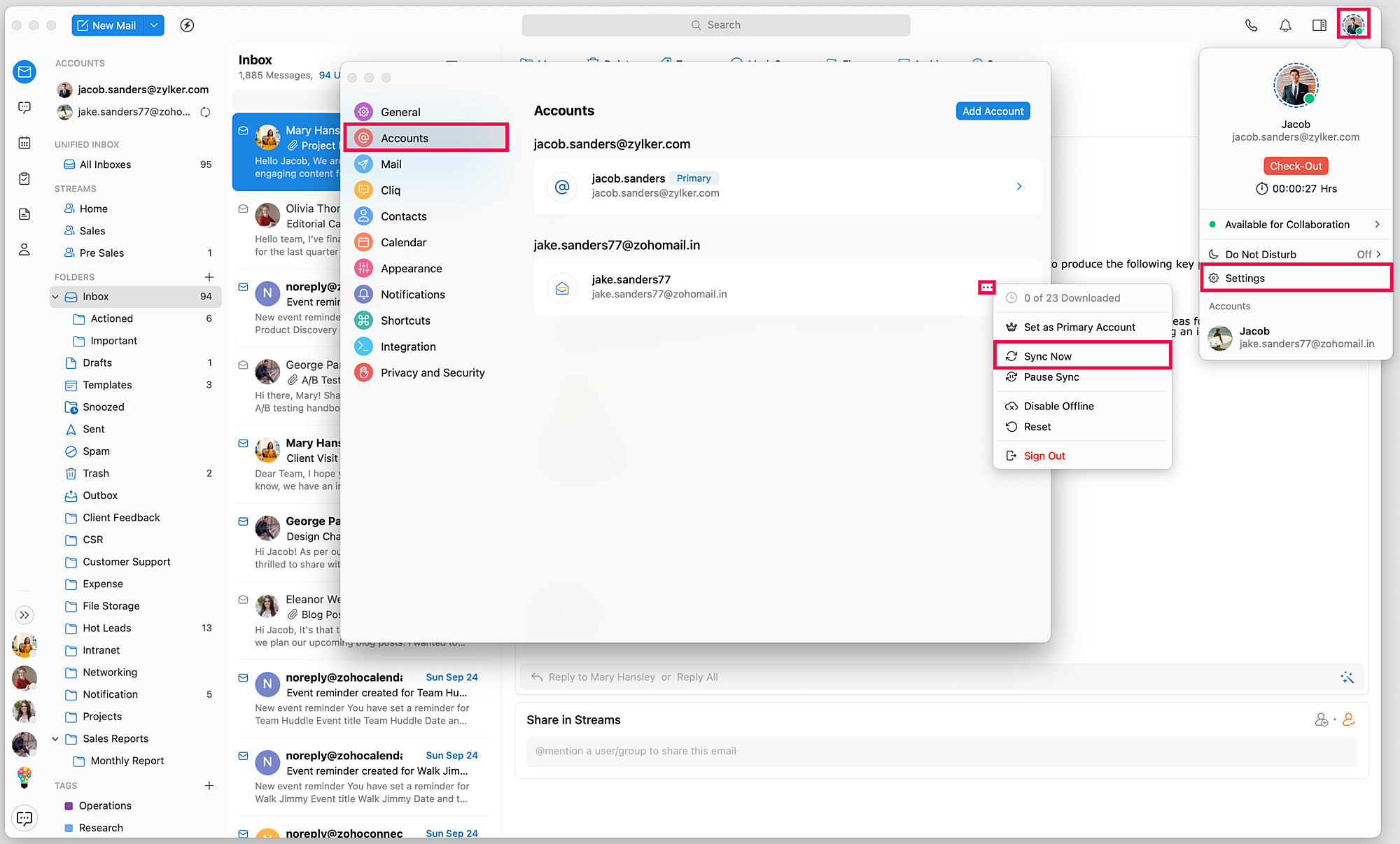 In Trident, the Mail module can be accessed even when you're not connected to the internet. This setting is enabled by default and you can browse, compose, and search for emails even while offline. Any email you send during this time will be queued in the Outbox and will be sent automatically once the connection is restored.