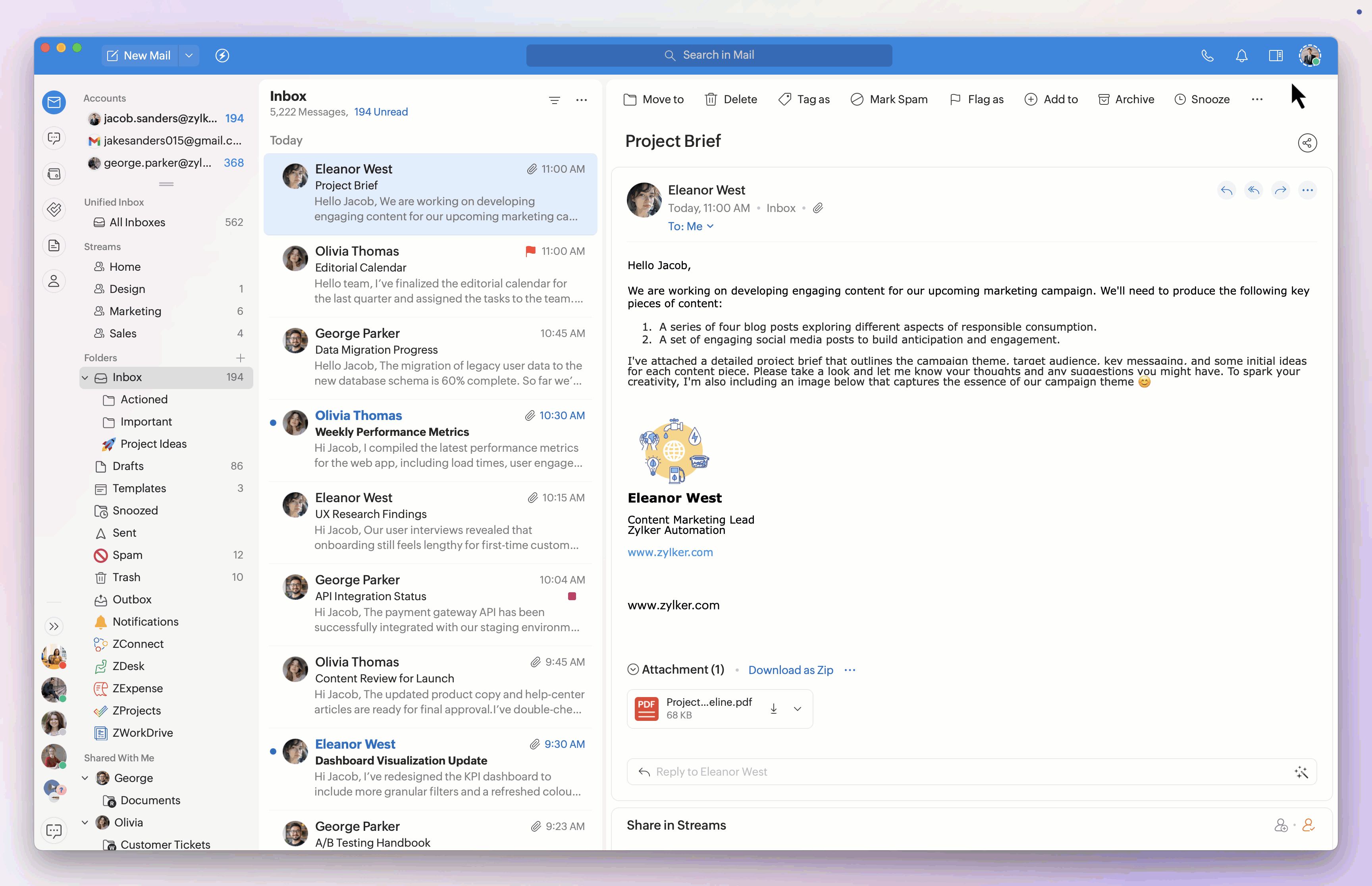 Download email attachments or upload them to Zoho WorkDrive using Smart Flow