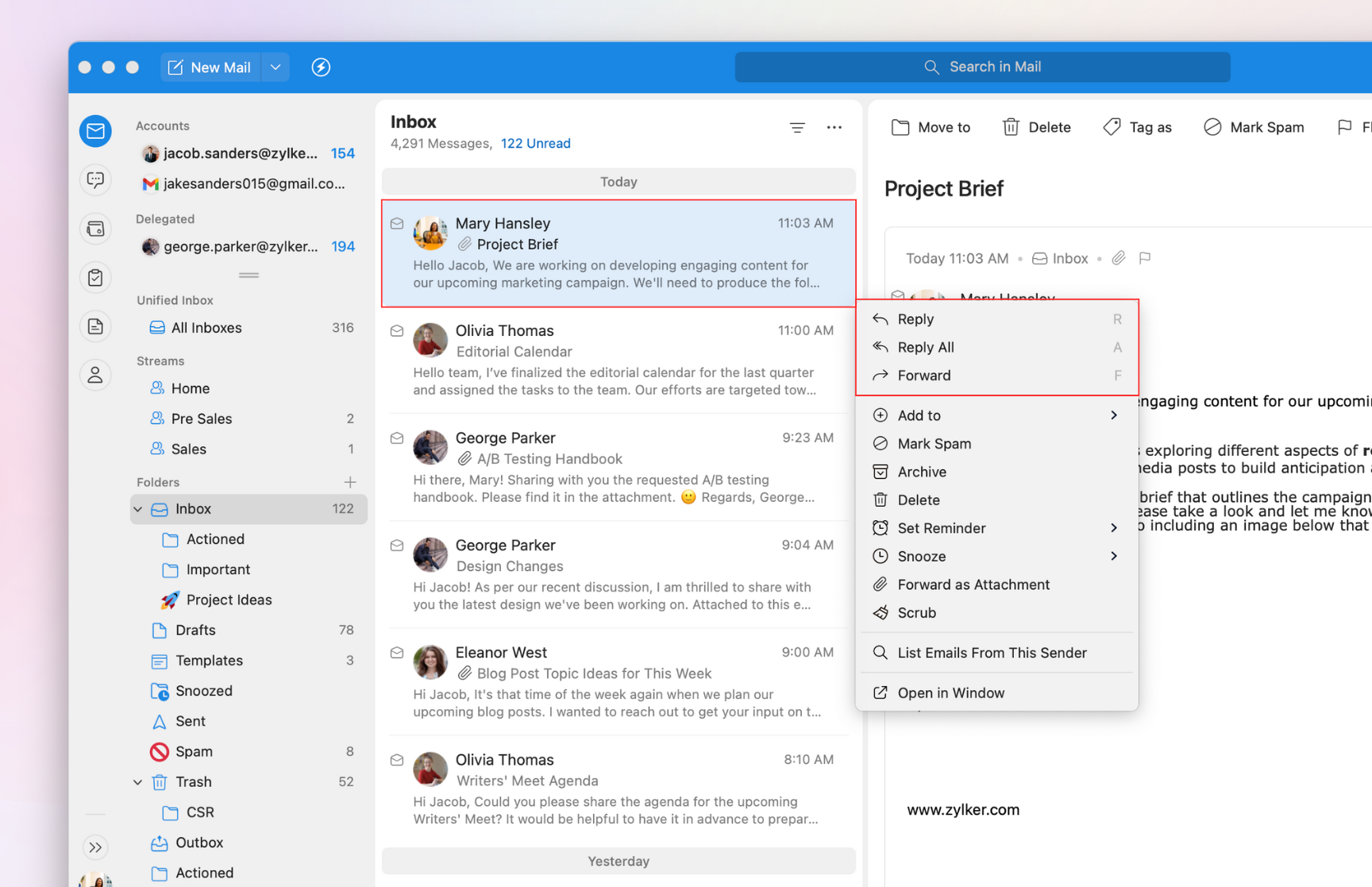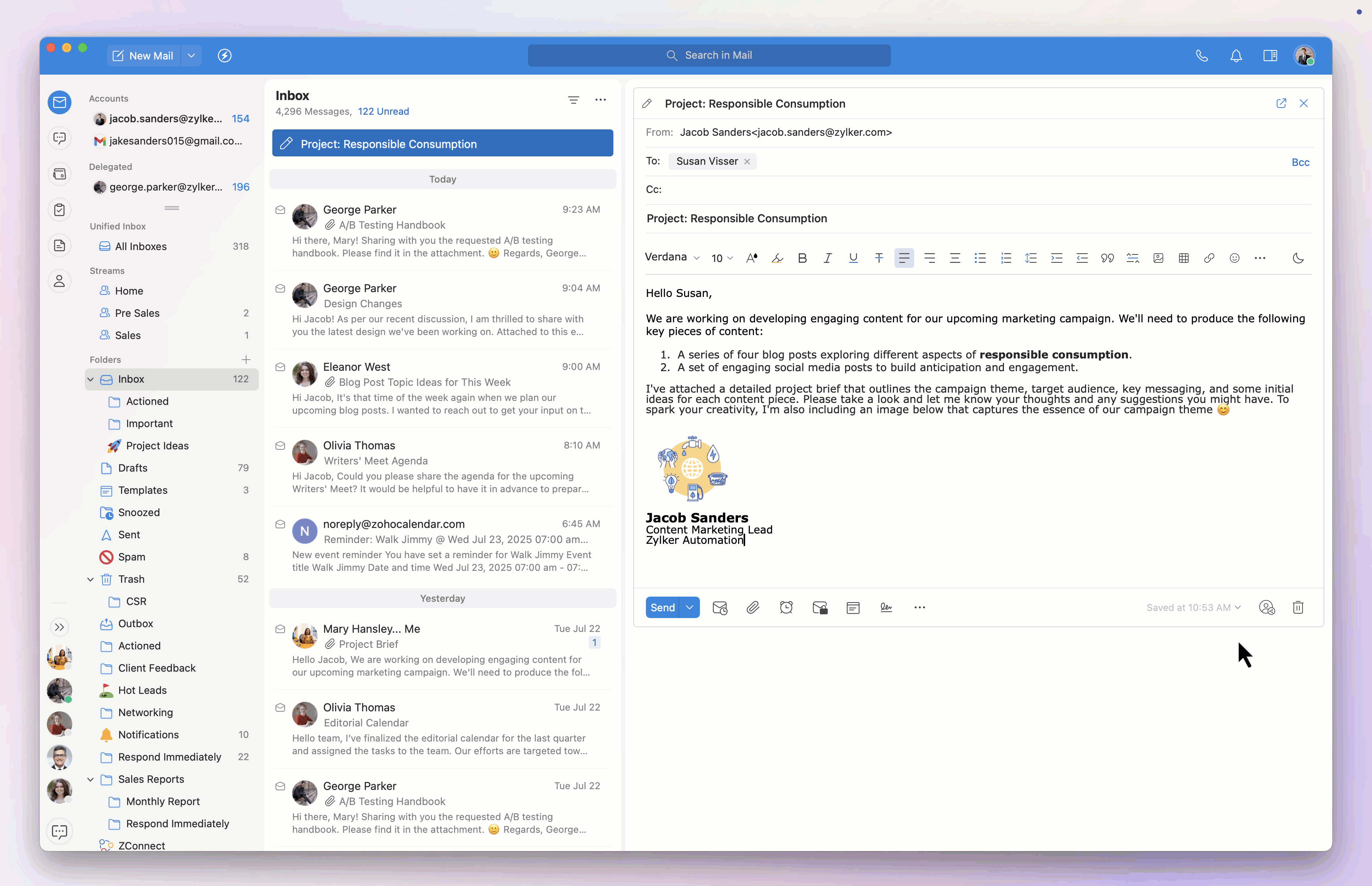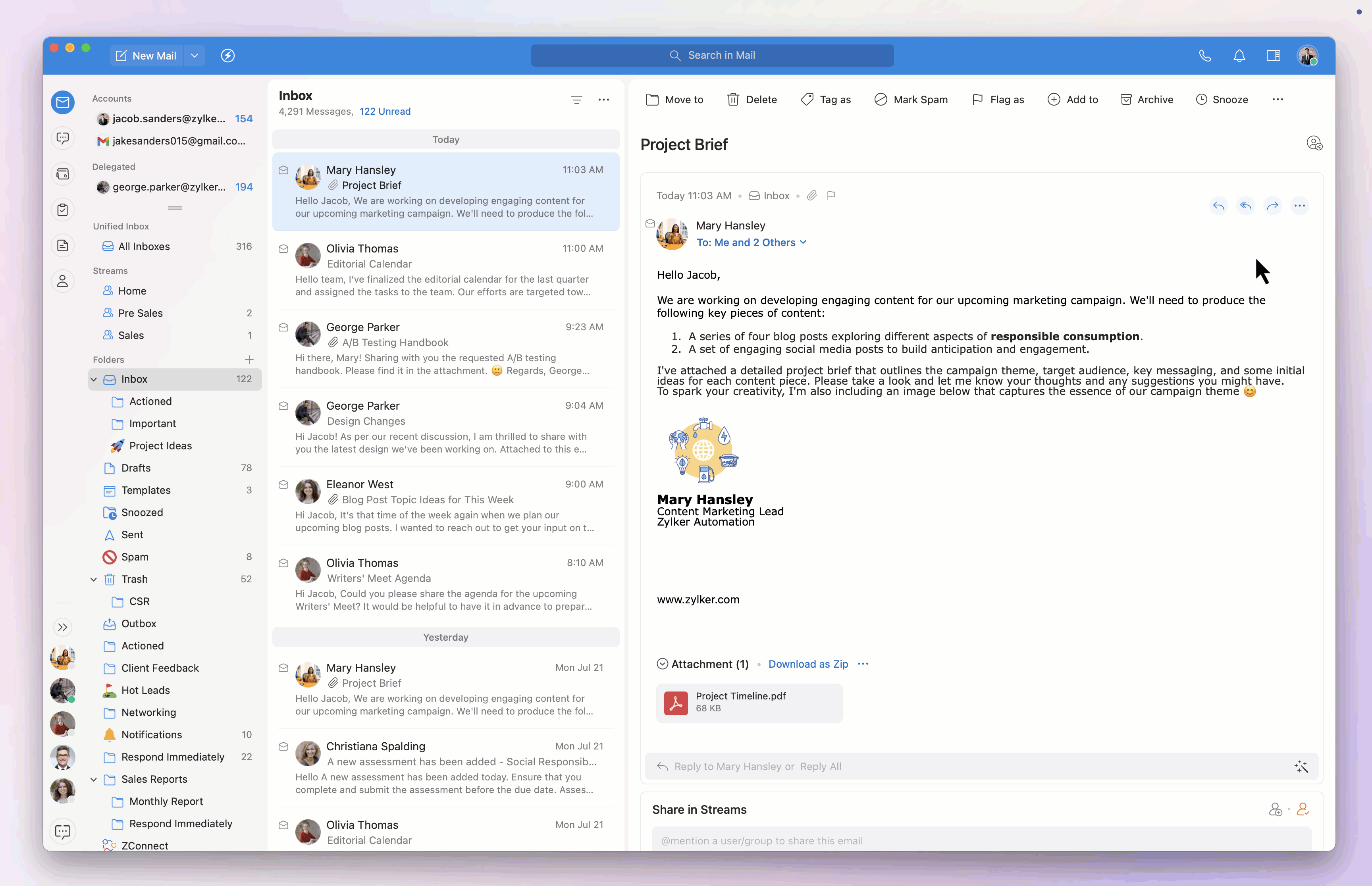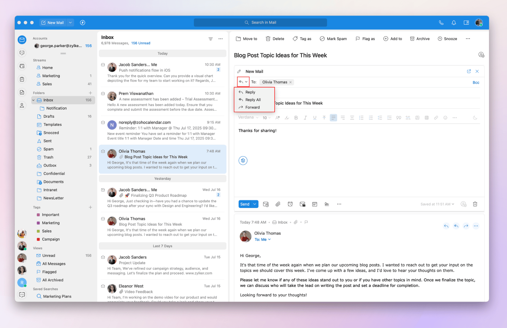 By sharing emails, you can easily handle email-related discussions and receive input from co-workers in the form of comments, avoiding multiple forwards and replies.