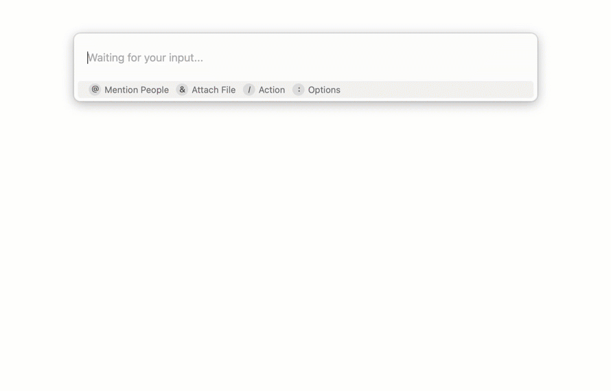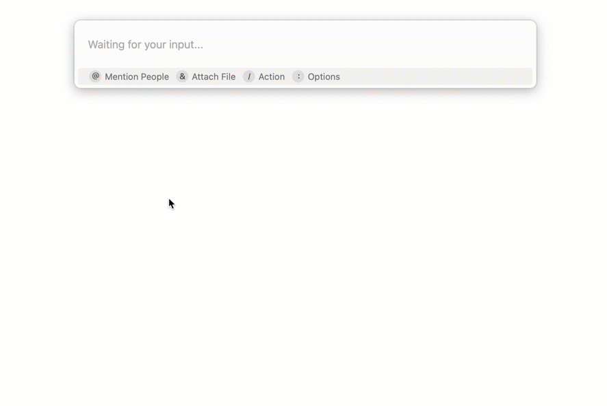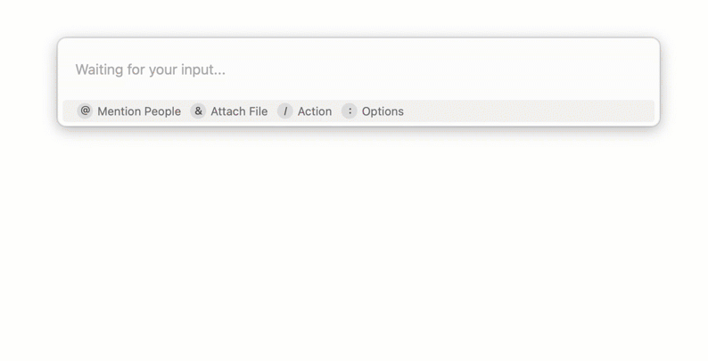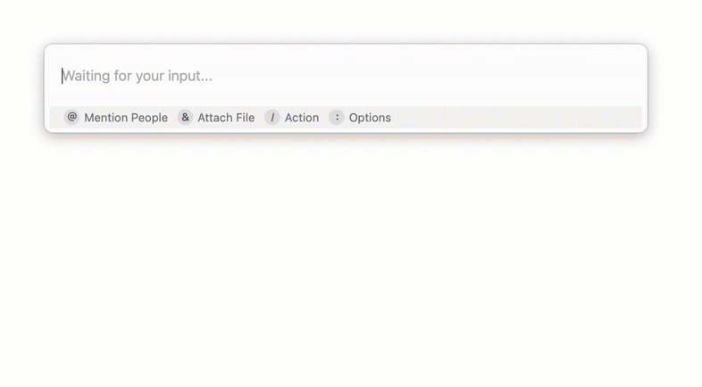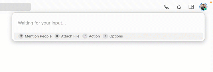 - Use slash commands first or @mention a contact first and then choose from the list of intelligent suggestions to execute your desired actions.