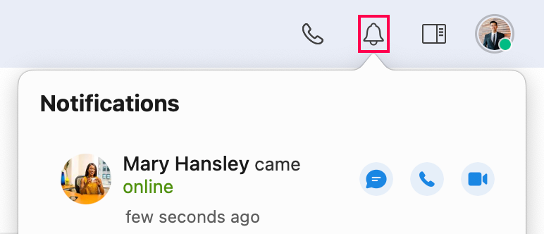When they come online, you'll be notified via Streams Notifications, from which you can connect with them instantly over a chat or call.