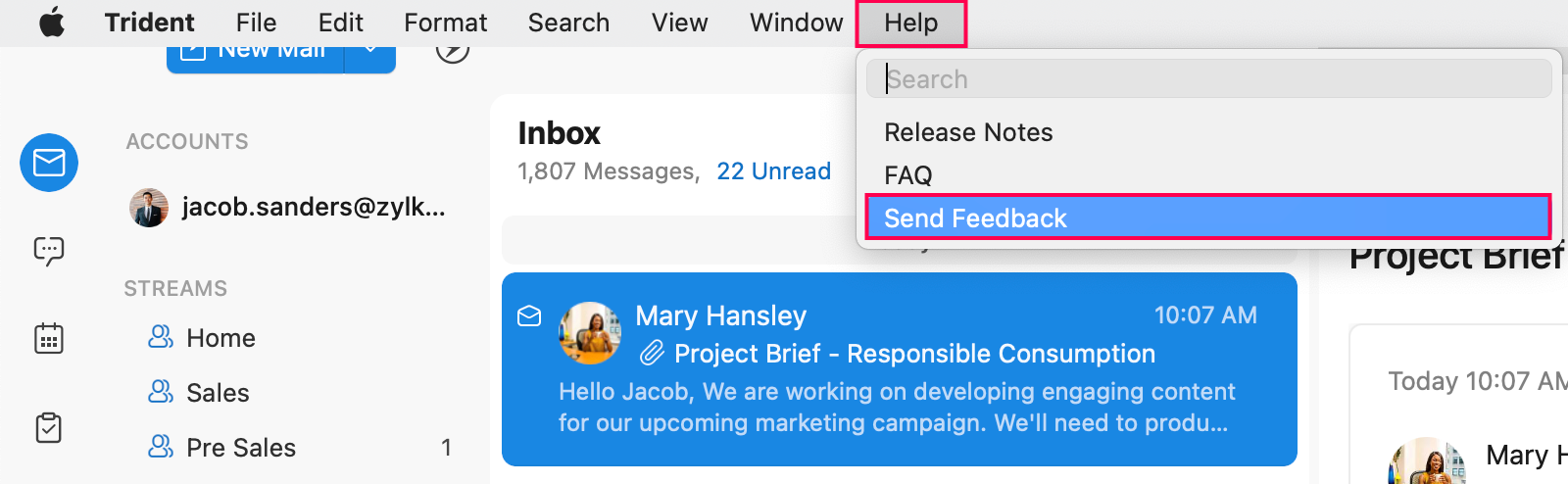 Note: You can also send your feedback about Trident from Menu Bar > Help > Send Feedback.
