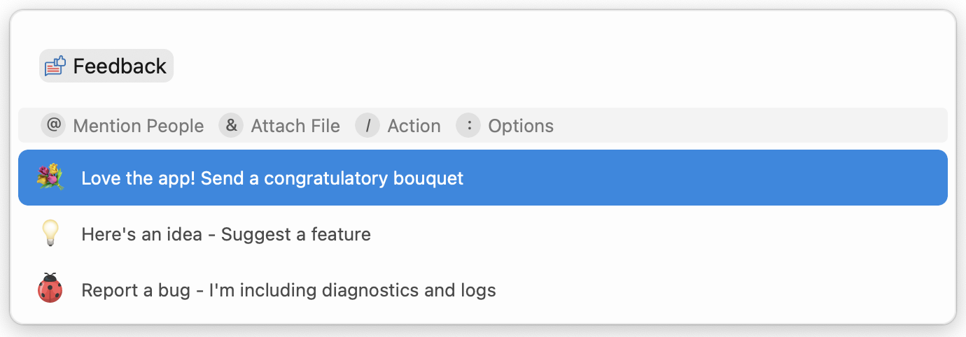 - Type /Feedback and select it from the list of suggestions by hitting return.