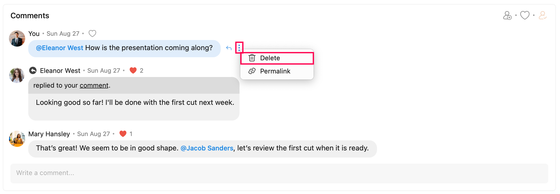 - If a user has commented on a Streams post you've created, you'll be able to delete that comment.