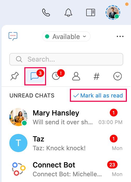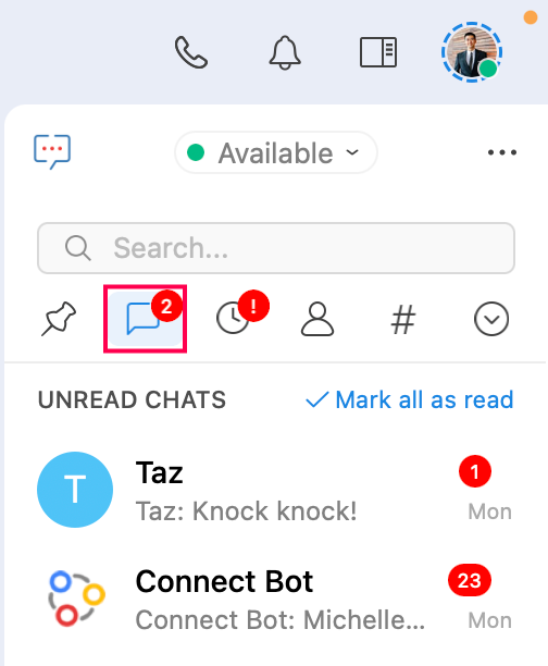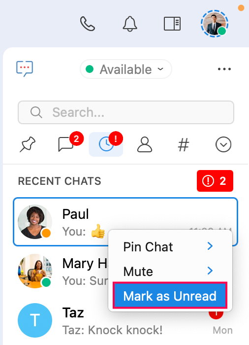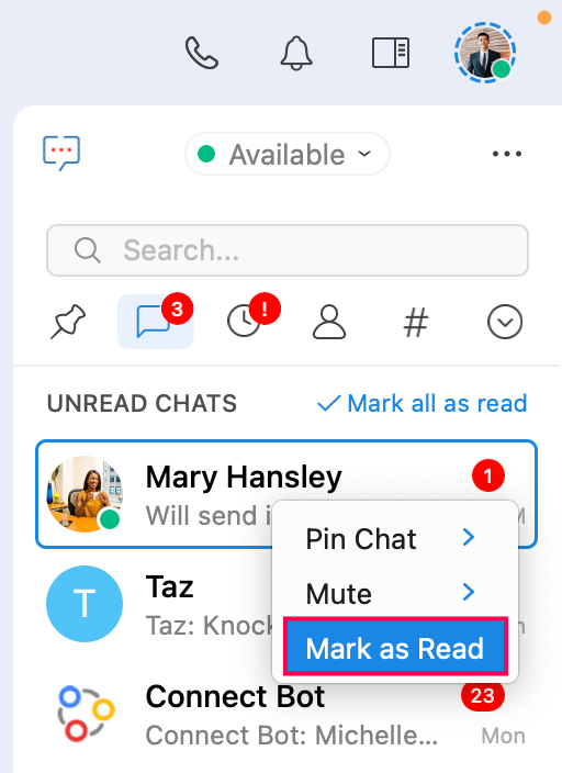 - Go to the Unread Chats tab and right-click the chat you want to mark as read.